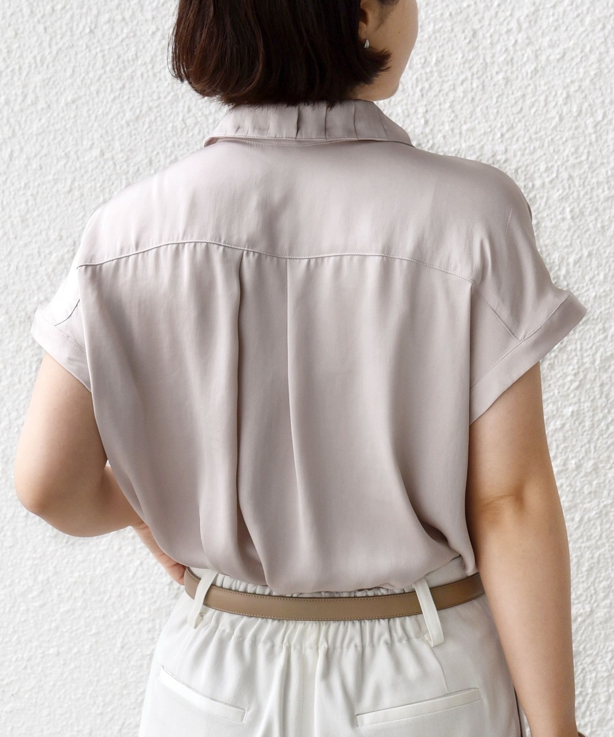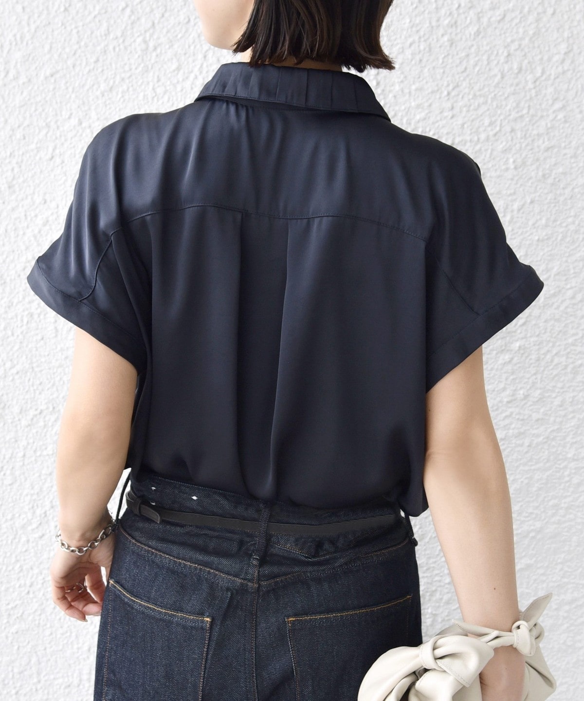 《予約》【WEB限定】〈手洗い可能〉ヴィンテージ サテン 襟 タック デザイン ブラウス