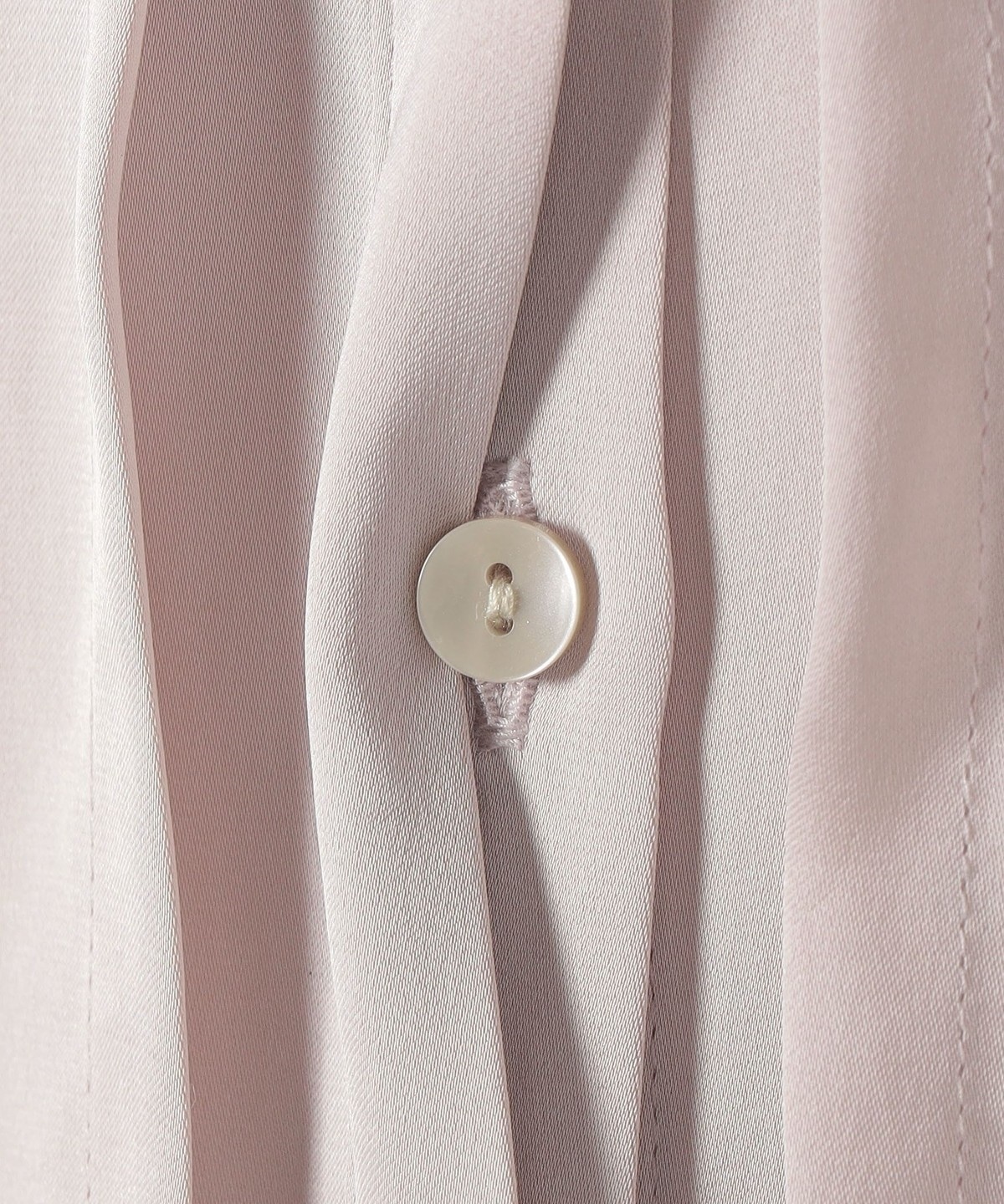 襟のタックプリーツと上品なパール調ボタンが目をひき、一枚では勿論、ジャケットのインナーとしてオンスタイルにもおすすめです。