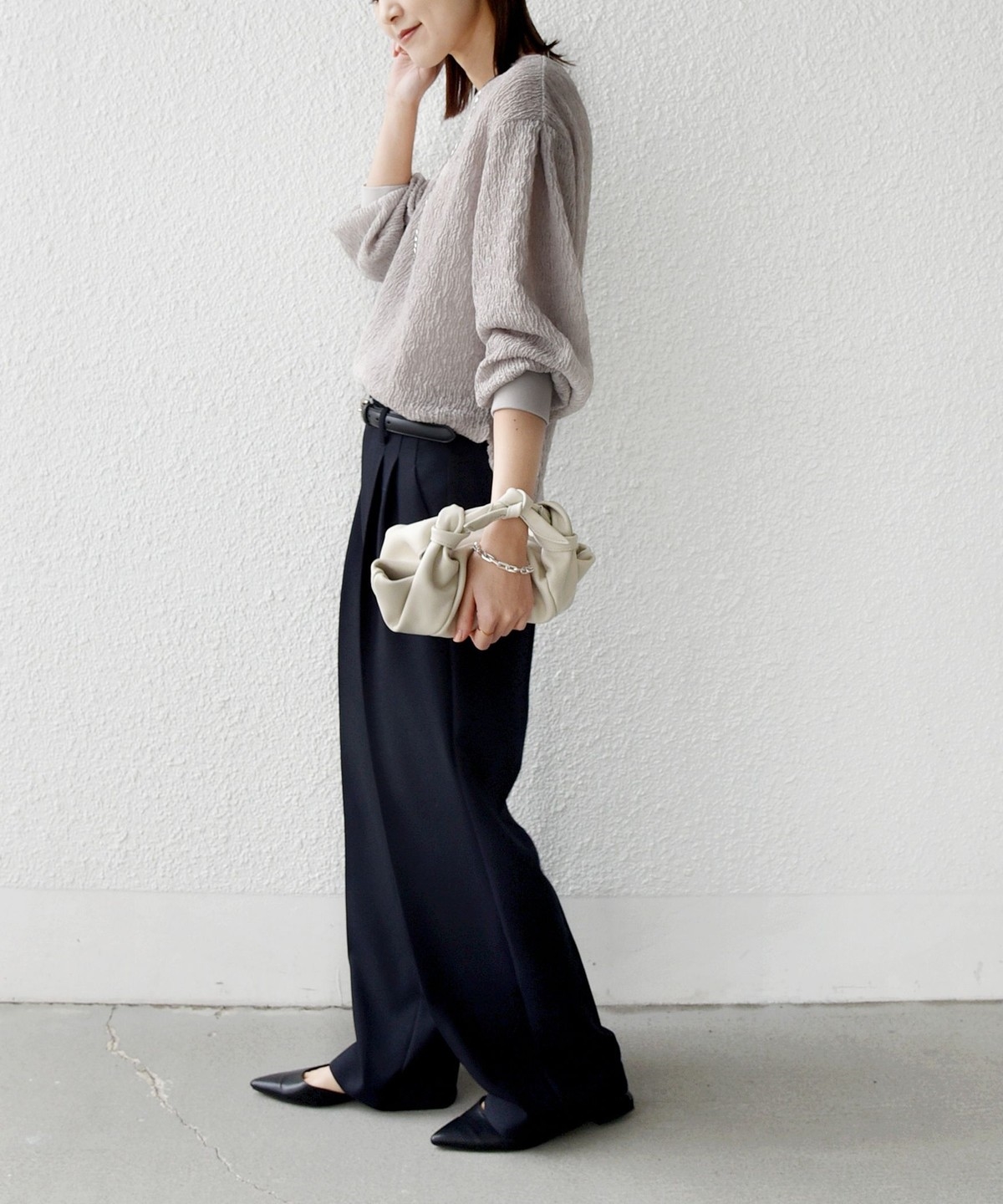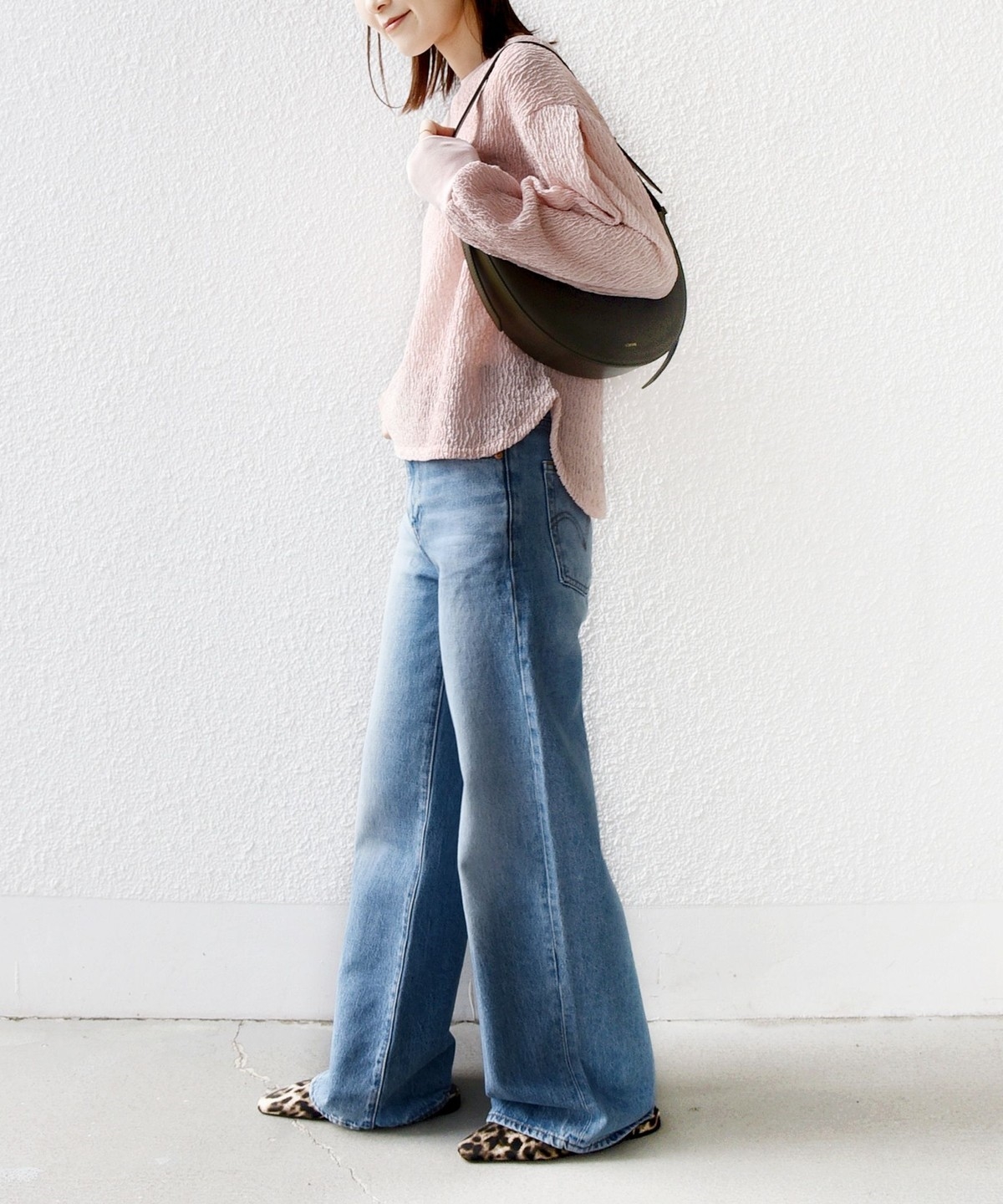 タックパンツできれいめに着たり、デニムでカジュアルに合わせても◎