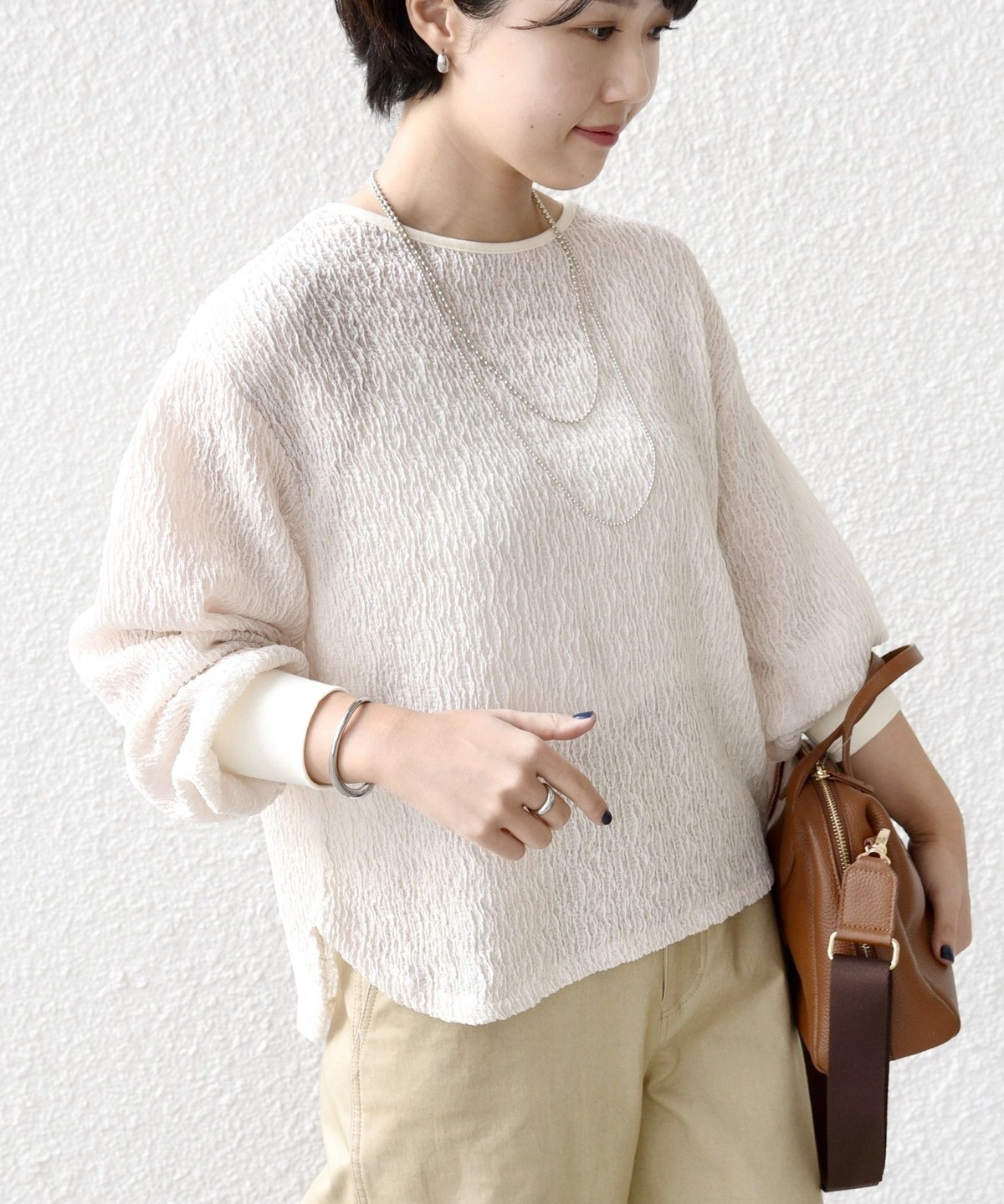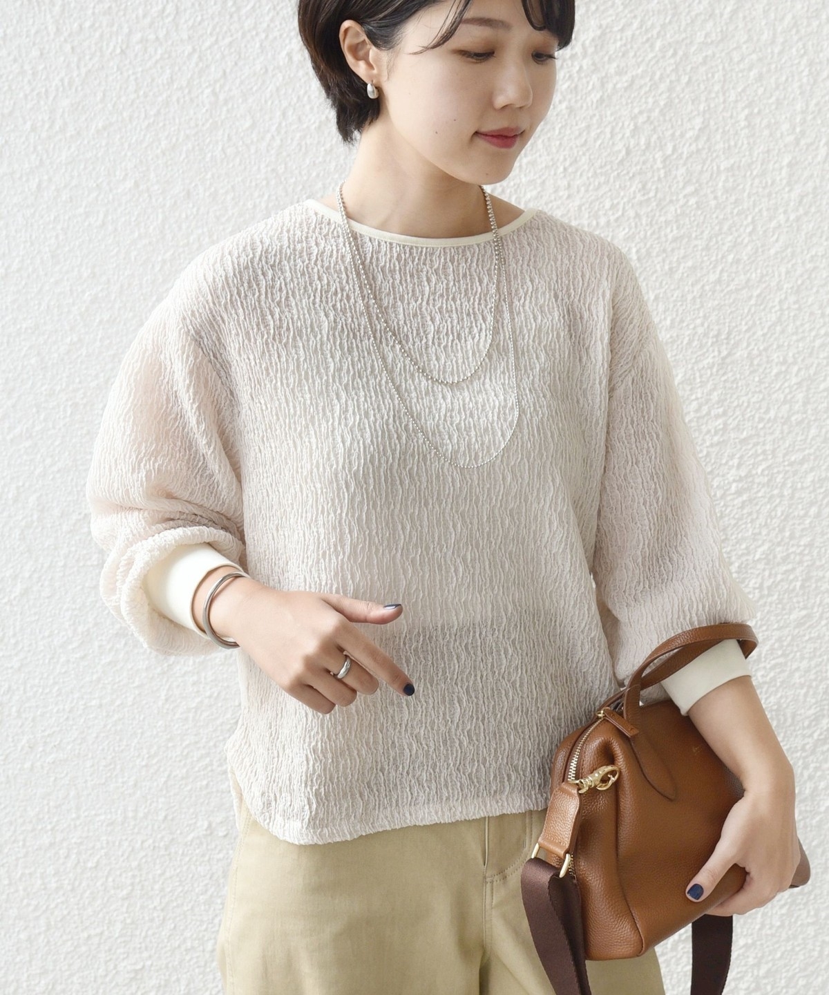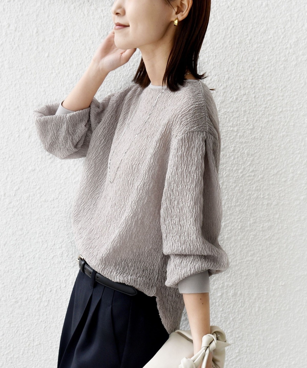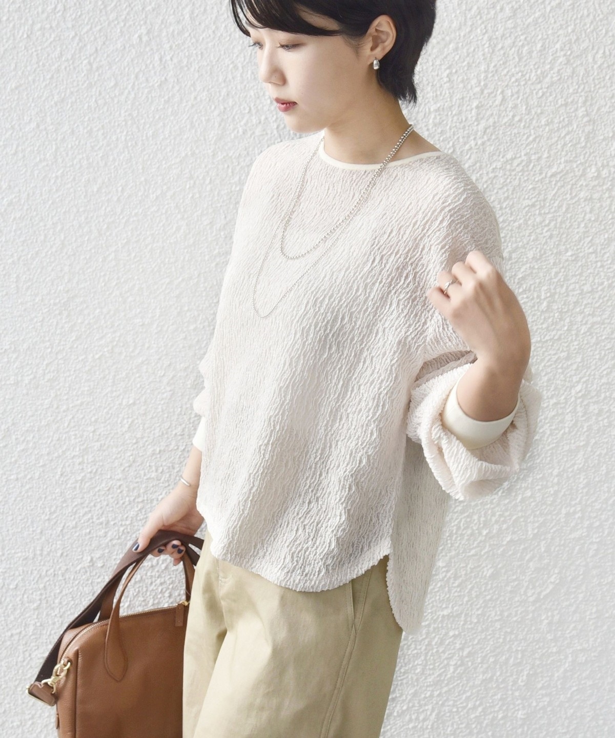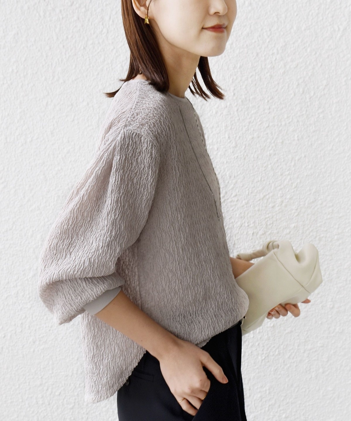 ポコポコとした表面感が魅力のブラウスライクカットソー