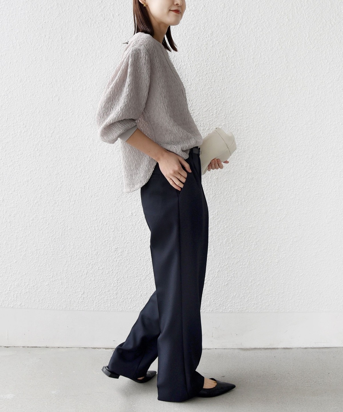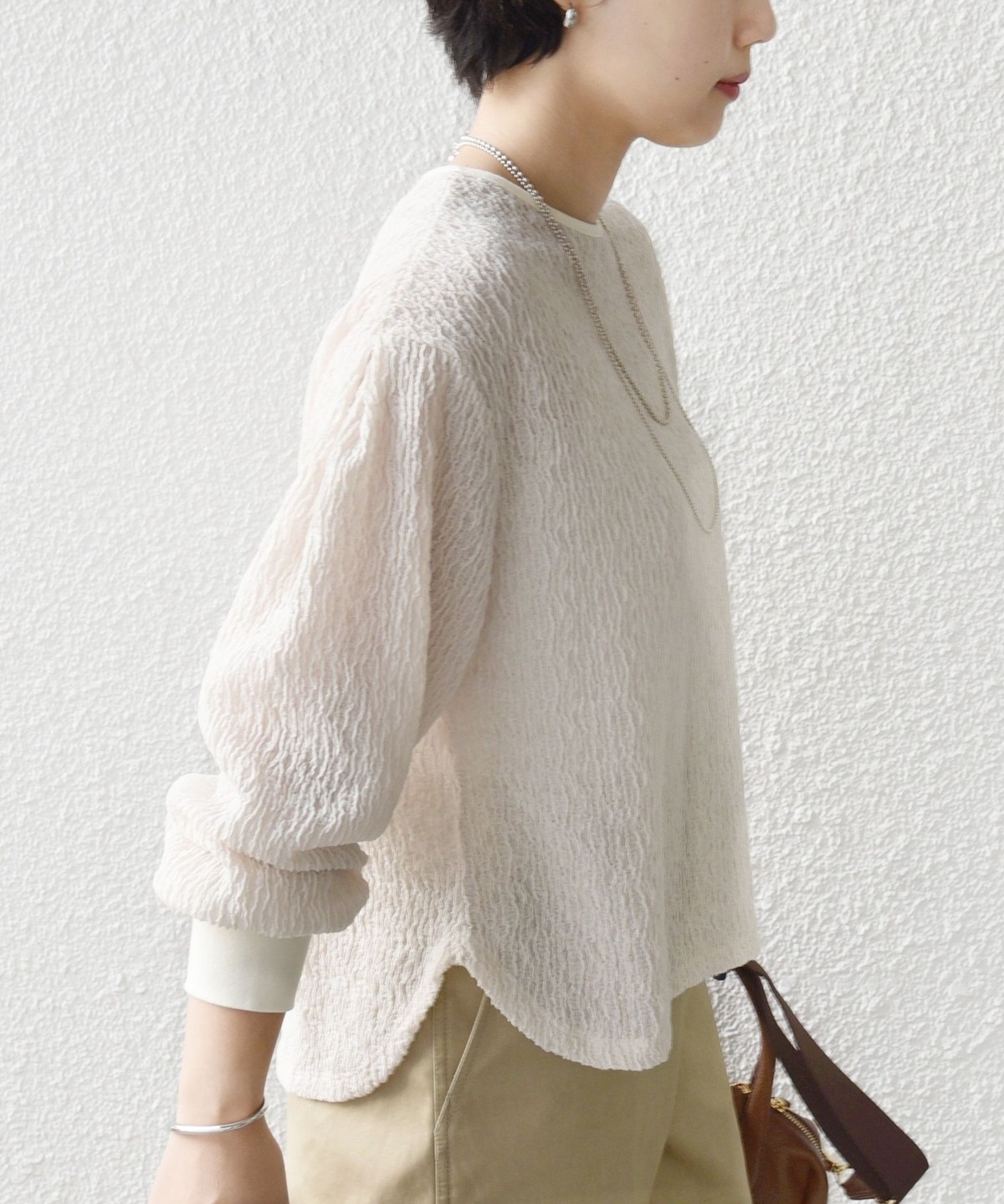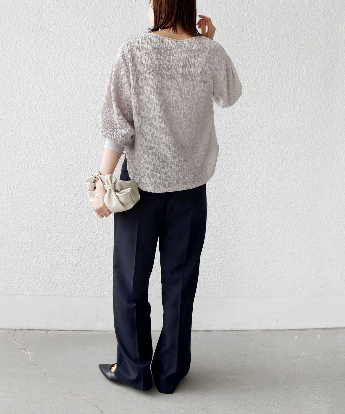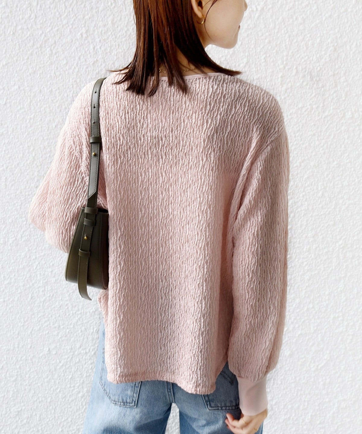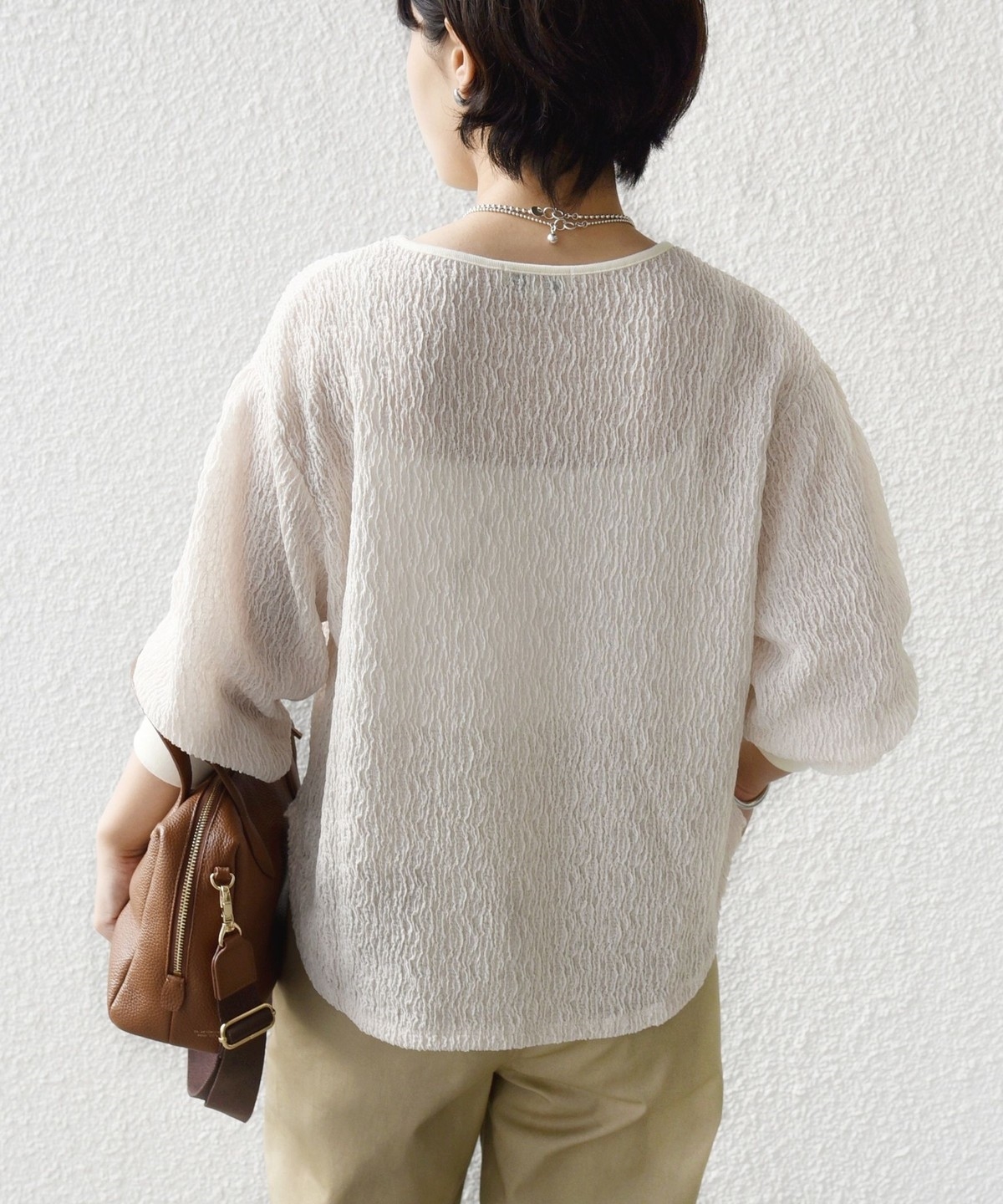 ポコポコとした表面感が魅力のブラウスライクカットソー
