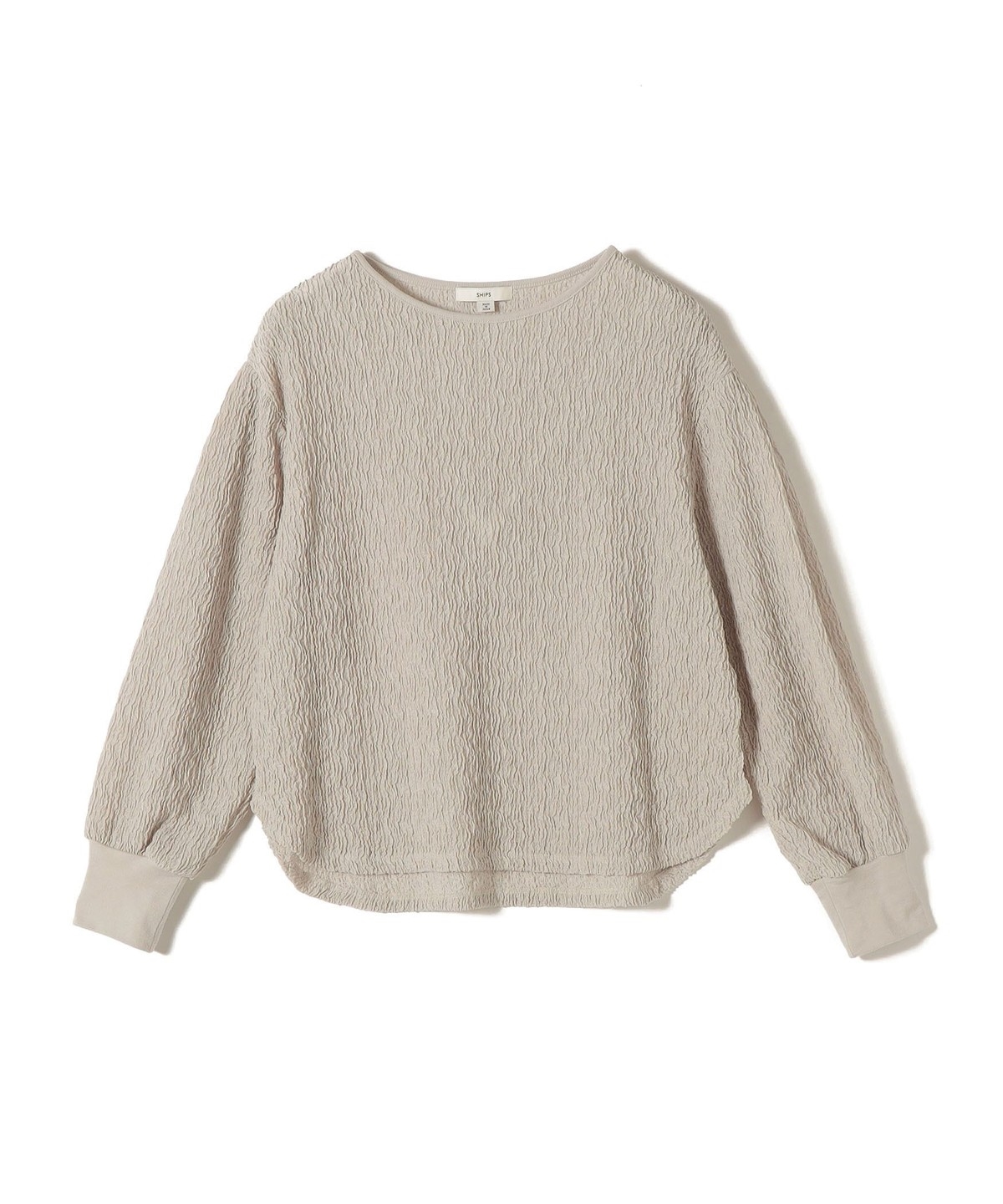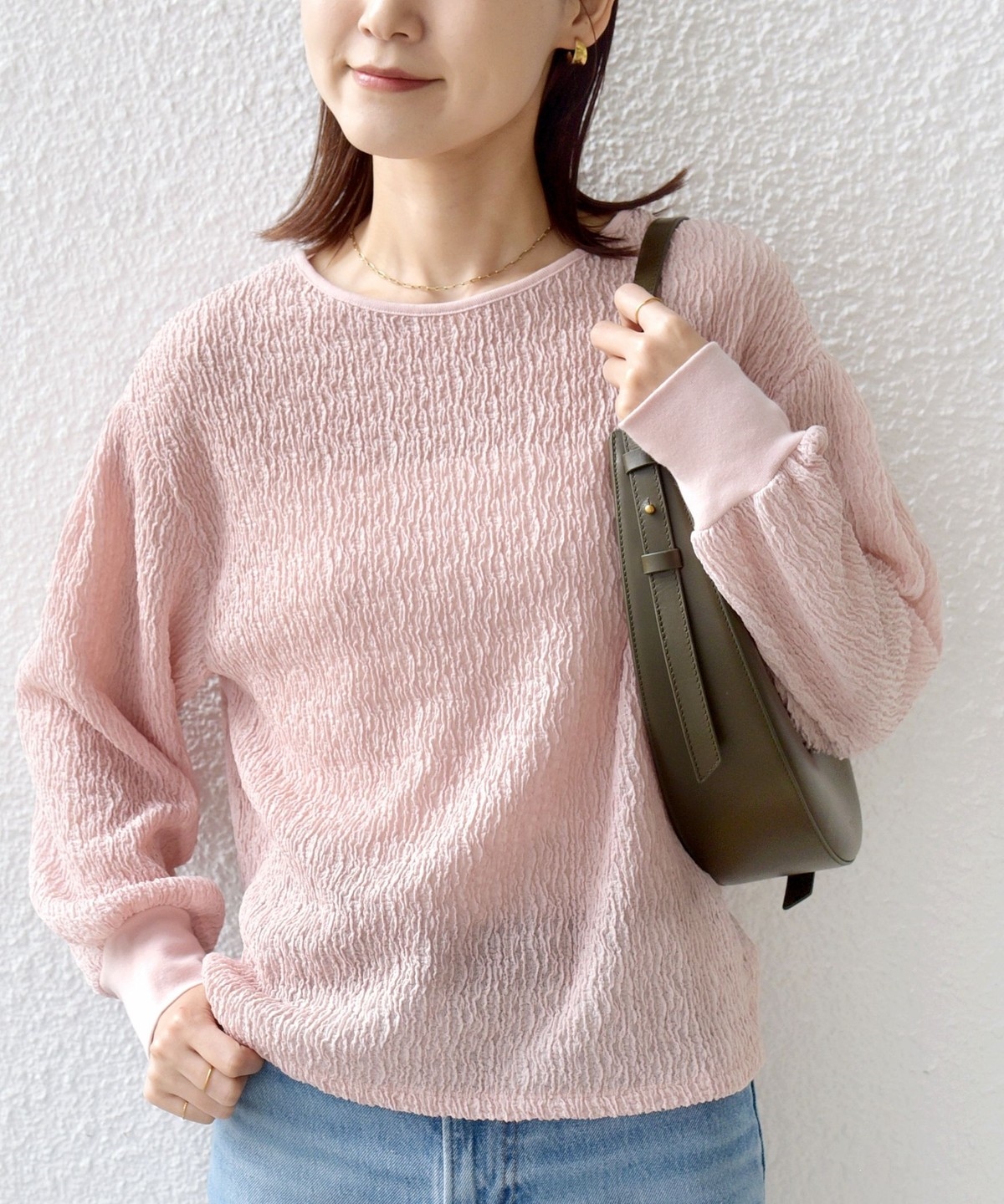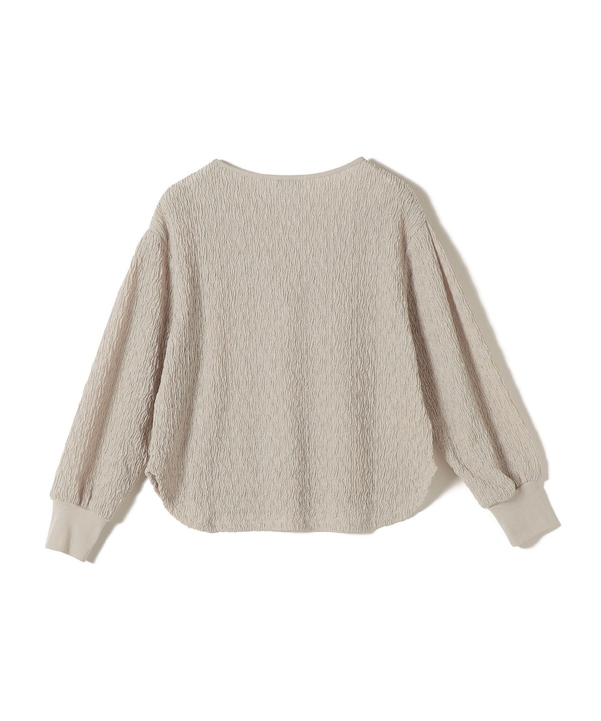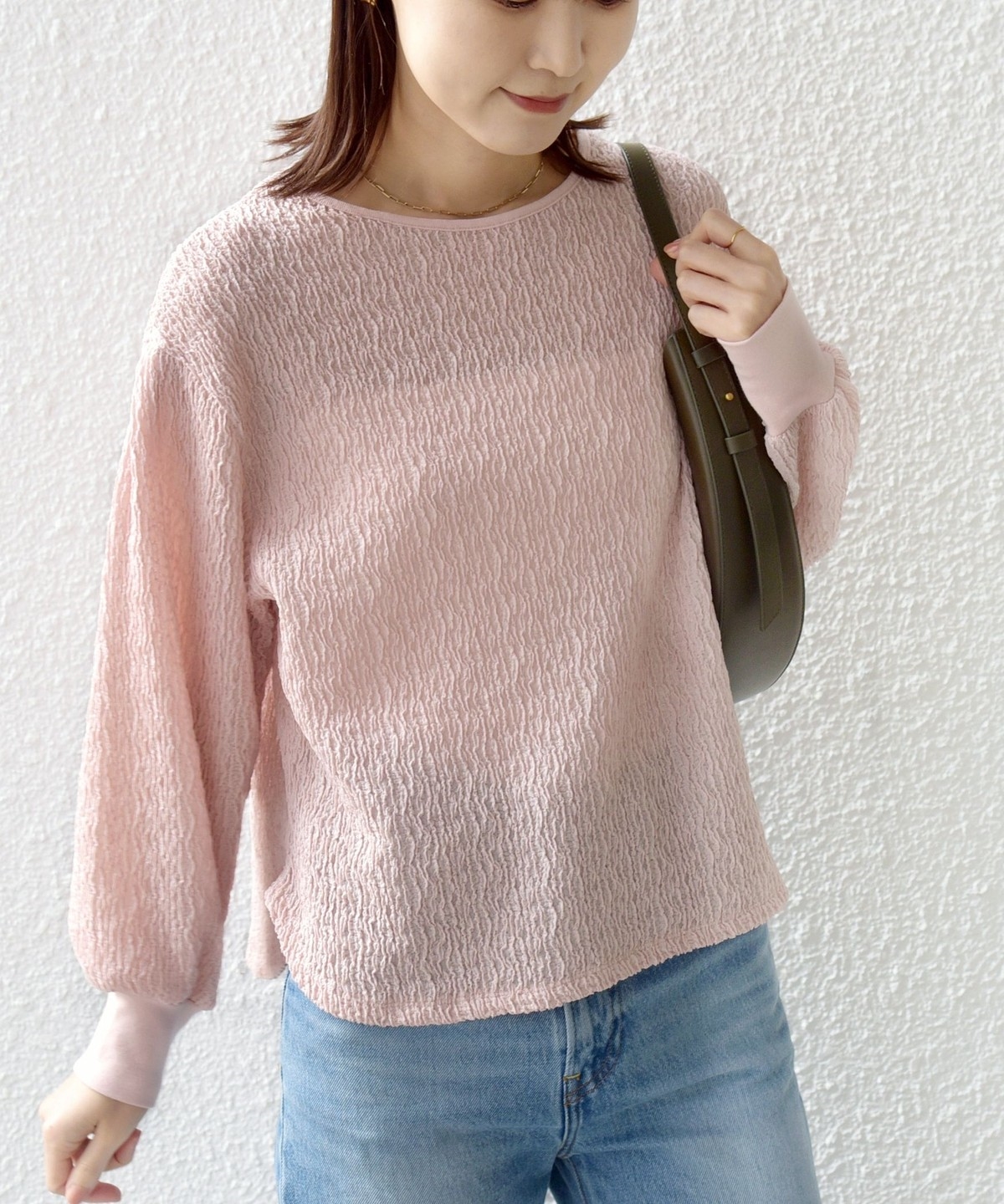 ポコポコとした表面感がかわいく、1枚で着映えするトップスです。