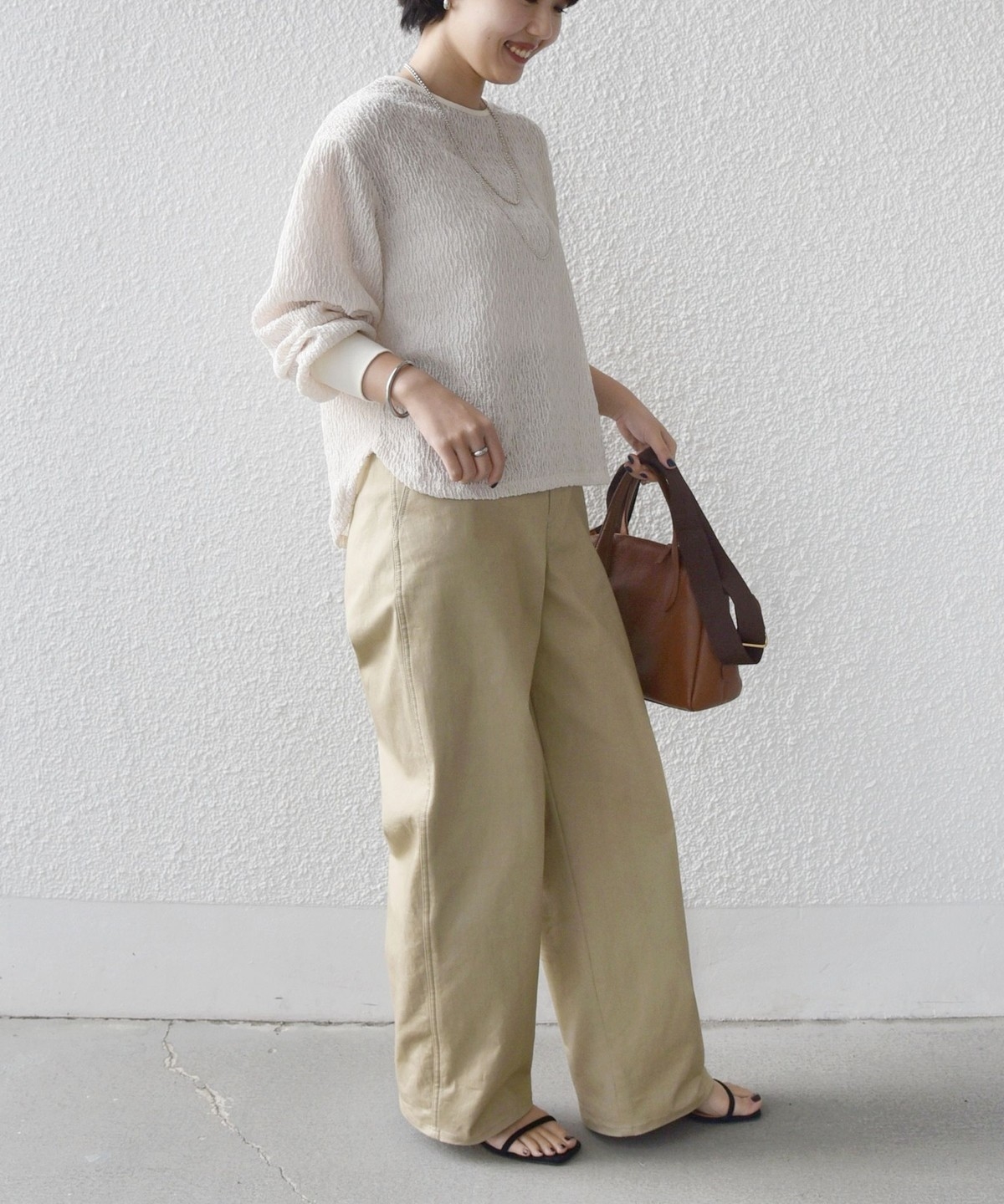 1. 《予約》〈手洗い可能〉ランダム ブルーゼ 袖 タック プルオーバー ベージュ