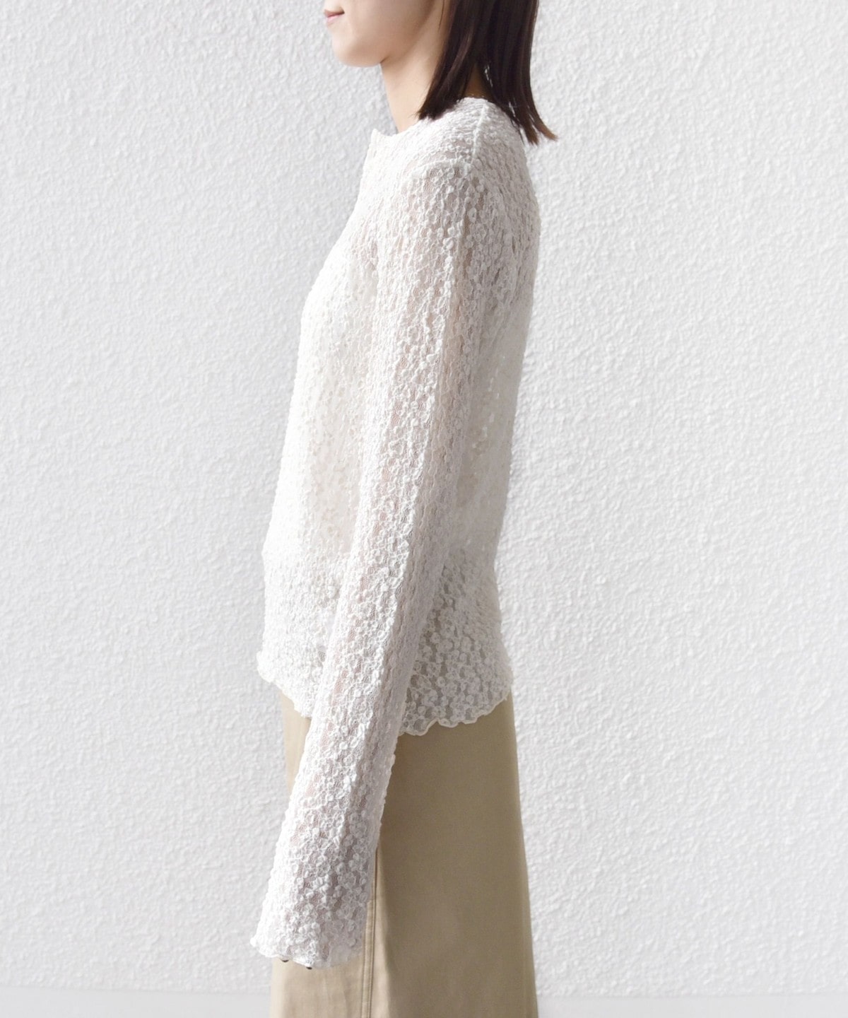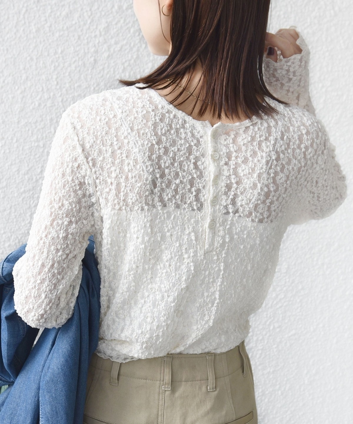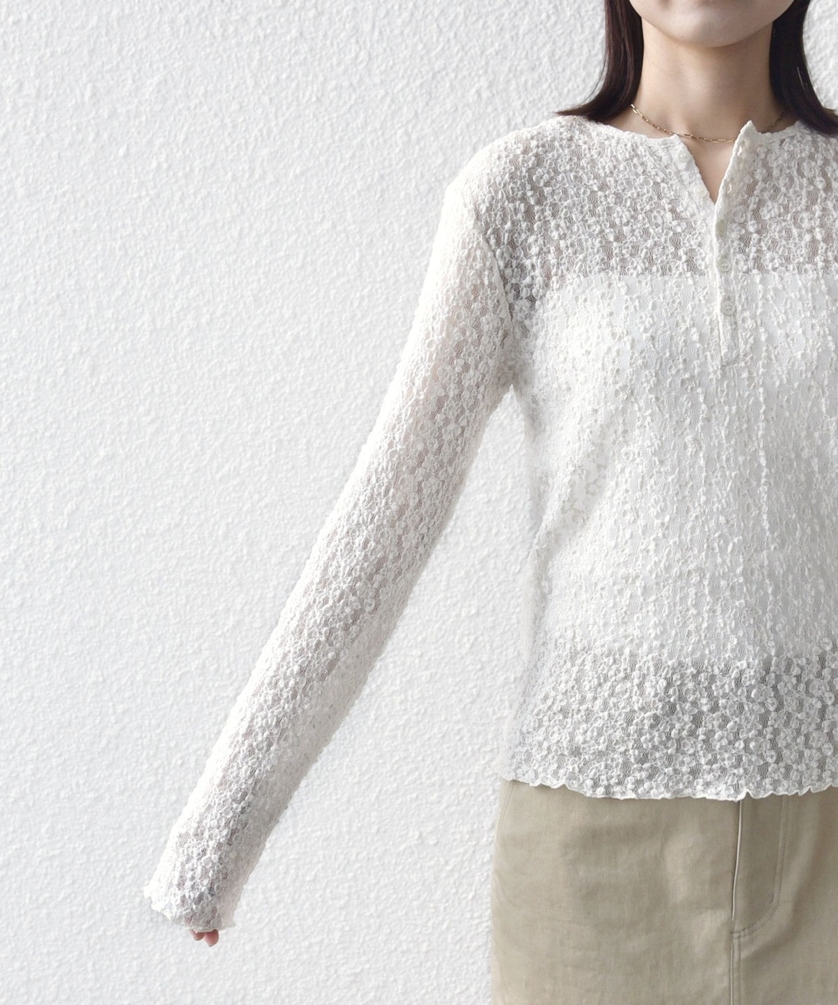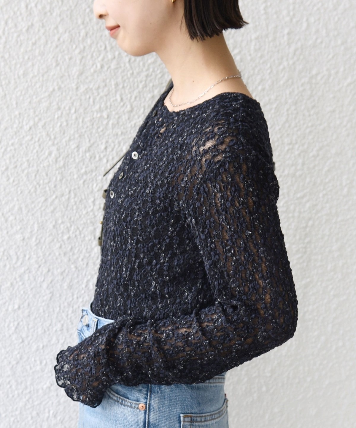 7. 《予約》〈手洗い可能〉ラメ ラッセル レース ヘンリー ネック 2WAY プルオーバー