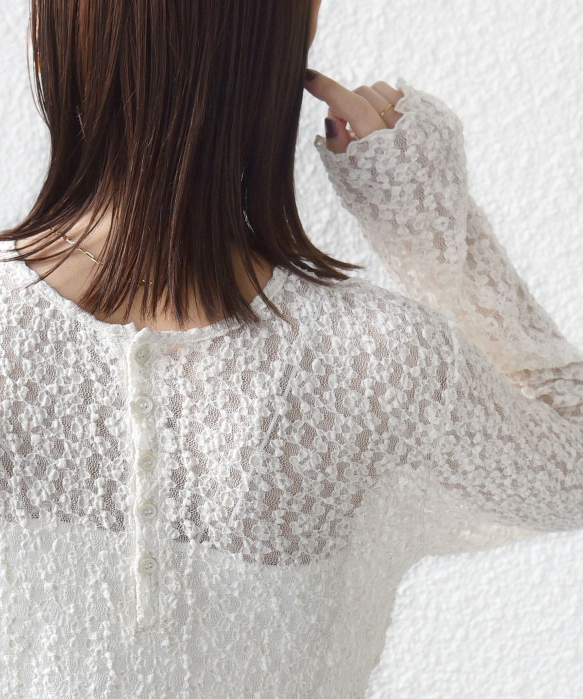 10. 《予約》〈手洗い可能〉ラメ ラッセル レース ヘンリー ネック 2WAY プルオーバー
