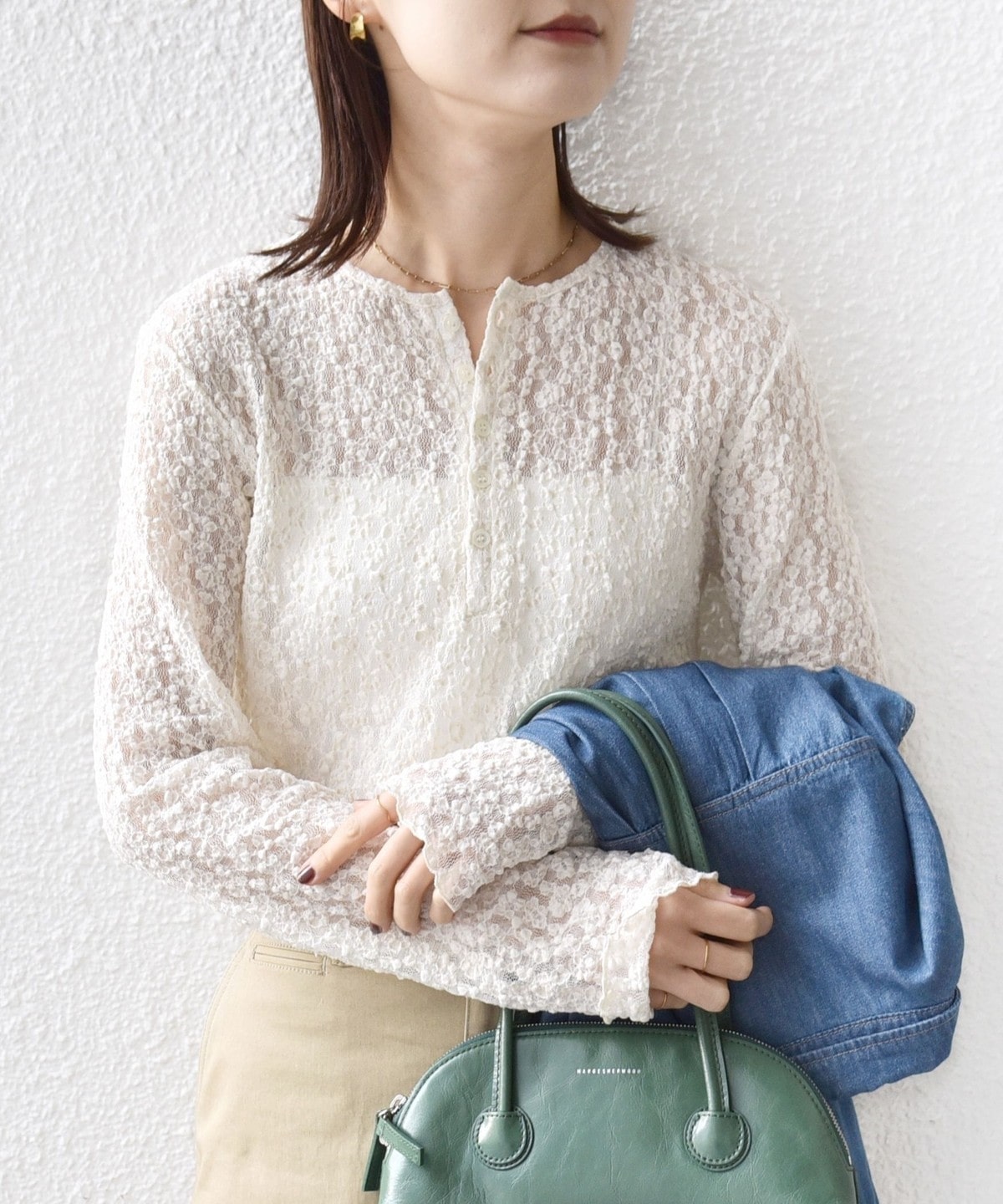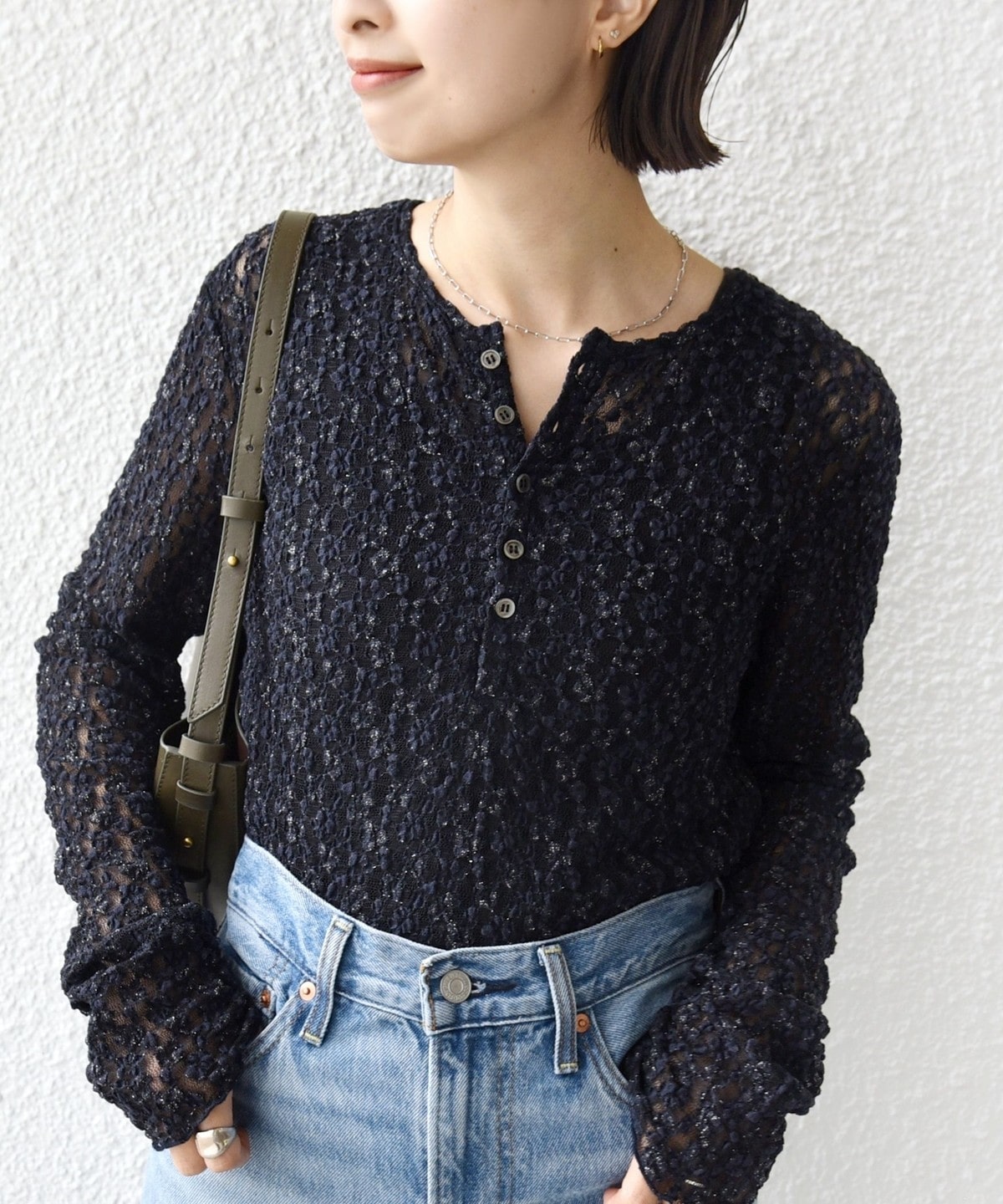 5. 《予約》〈手洗い可能〉ラメ ラッセル レース ヘンリー ネック 2WAY プルオーバー