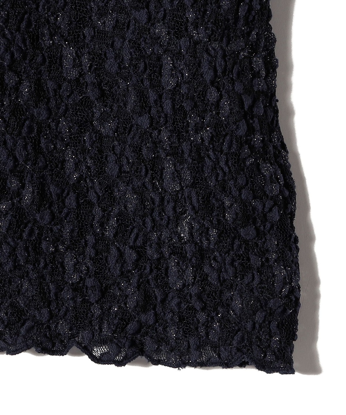 2. 《予約》〈手洗い可能〉ラメ ラッセル レース ヘンリー ネック 2WAY プルオーバー ネイビー