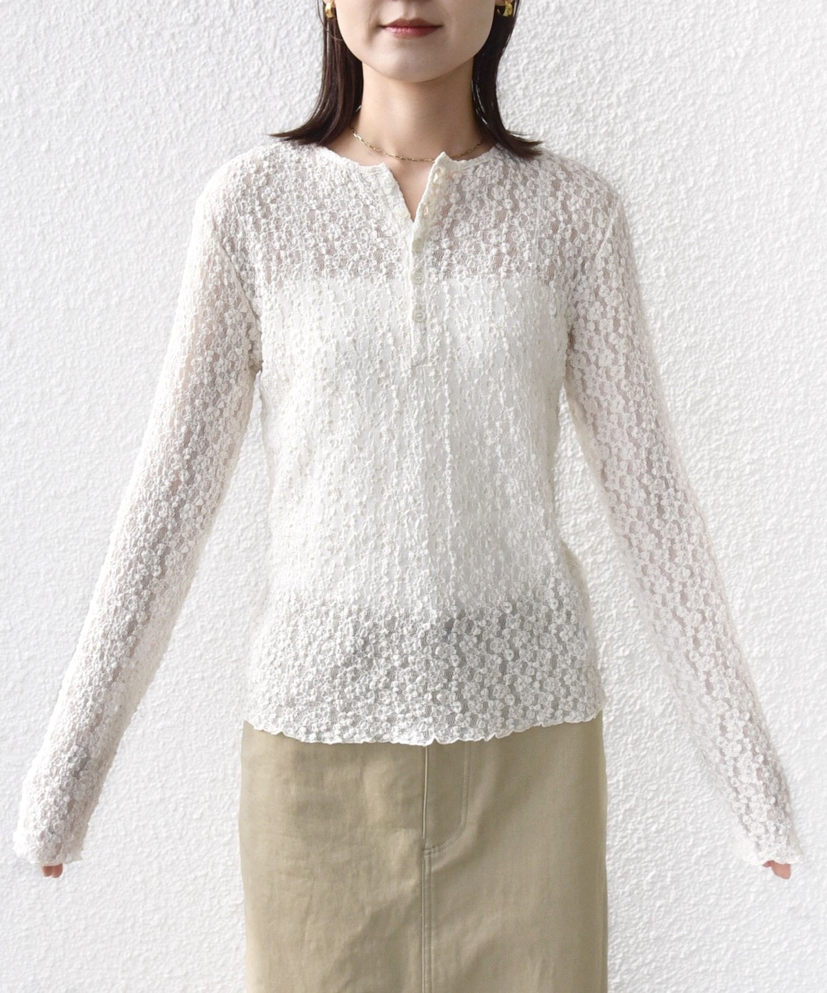 > > >  > SHIPS for women:《予約》〈手洗い可能〉ラメ ラッセル レース ヘンリー ネック 2WAY プルオーバー