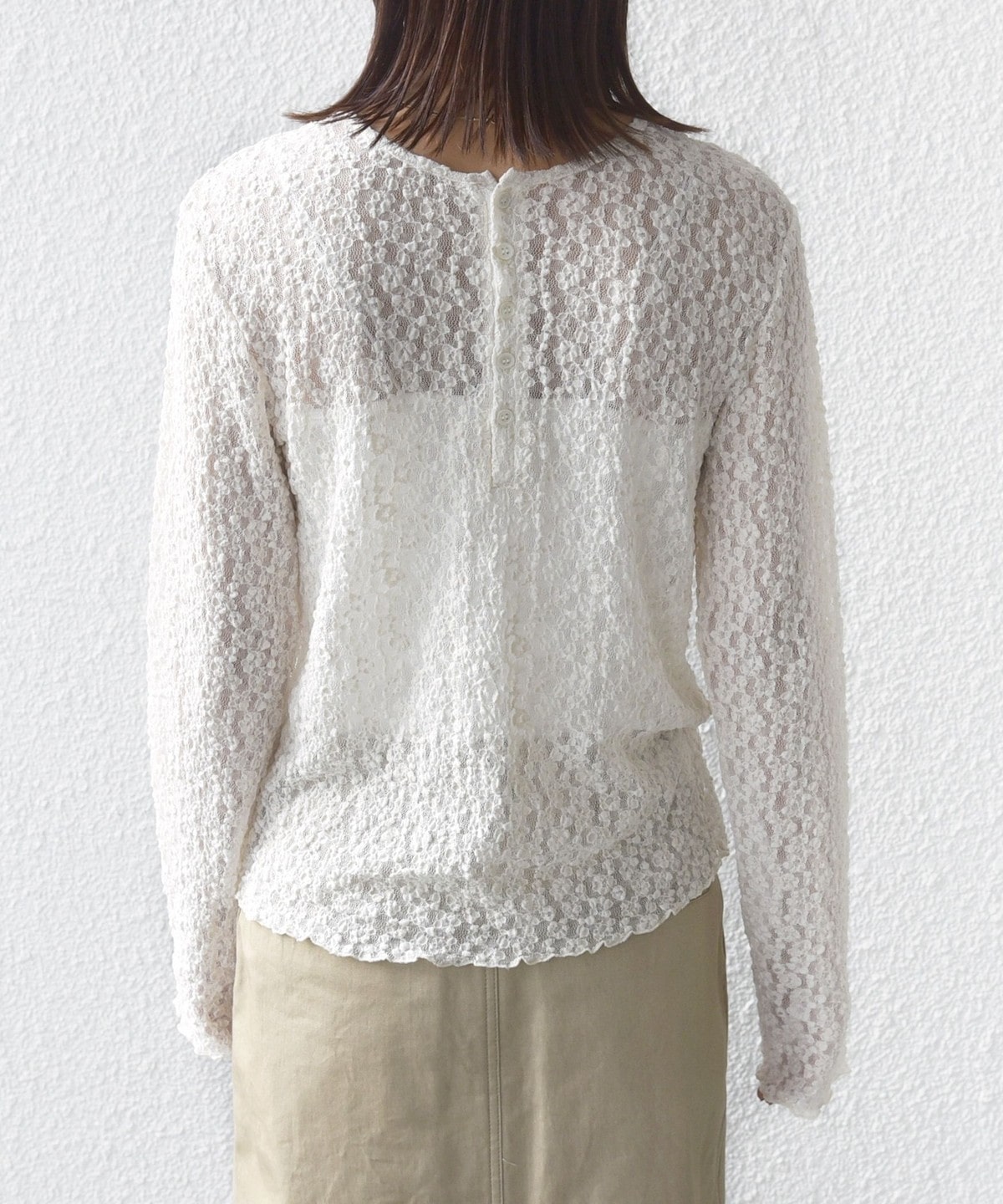 14. 《予約》〈手洗い可能〉ラメ ラッセル レース ヘンリー ネック 2WAY プルオーバー