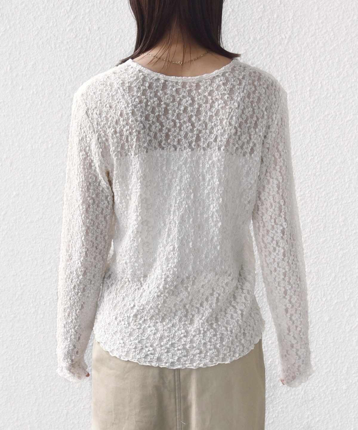 19. 《予約》〈手洗い可能〉ラメ ラッセル レース ヘンリー ネック 2WAY プルオーバー