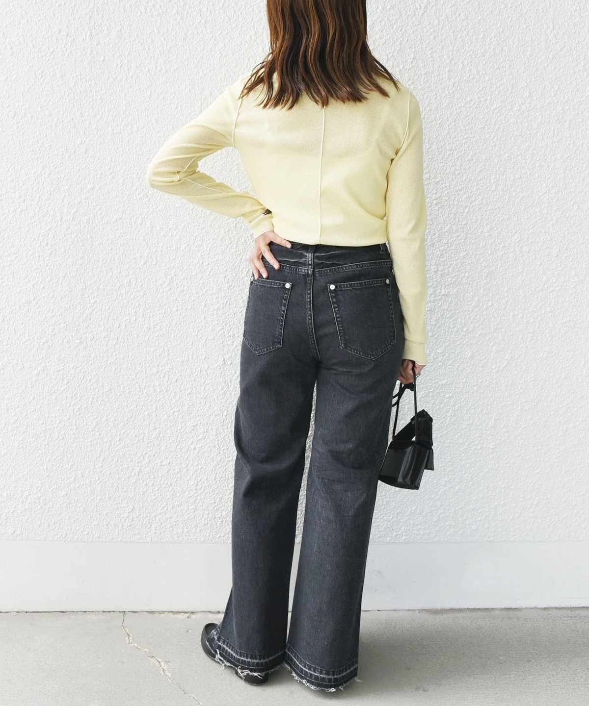 サイズ感:ボディラインを拾いすぎない程良いフィット感。着丈はヒップにかかるくらい。