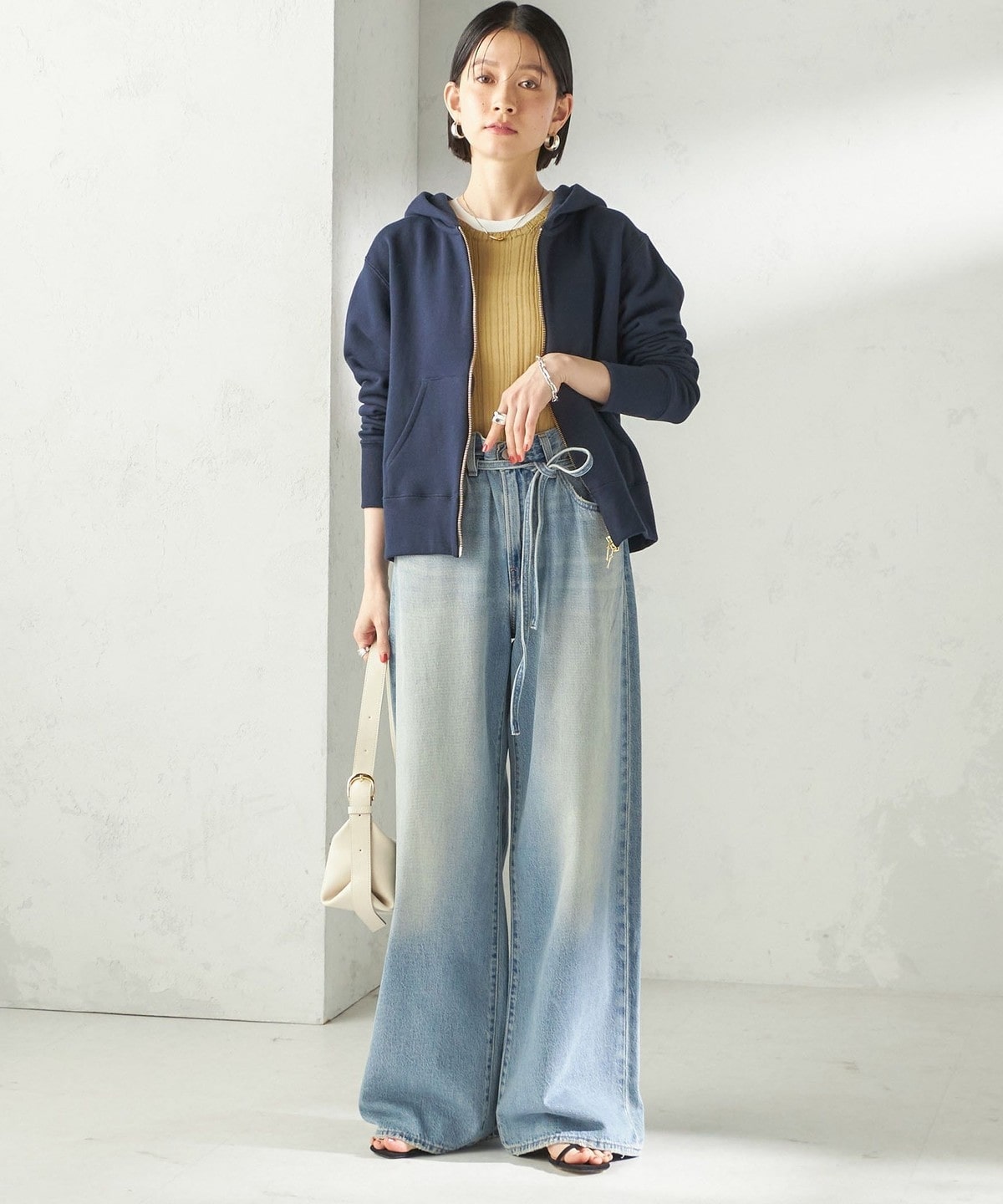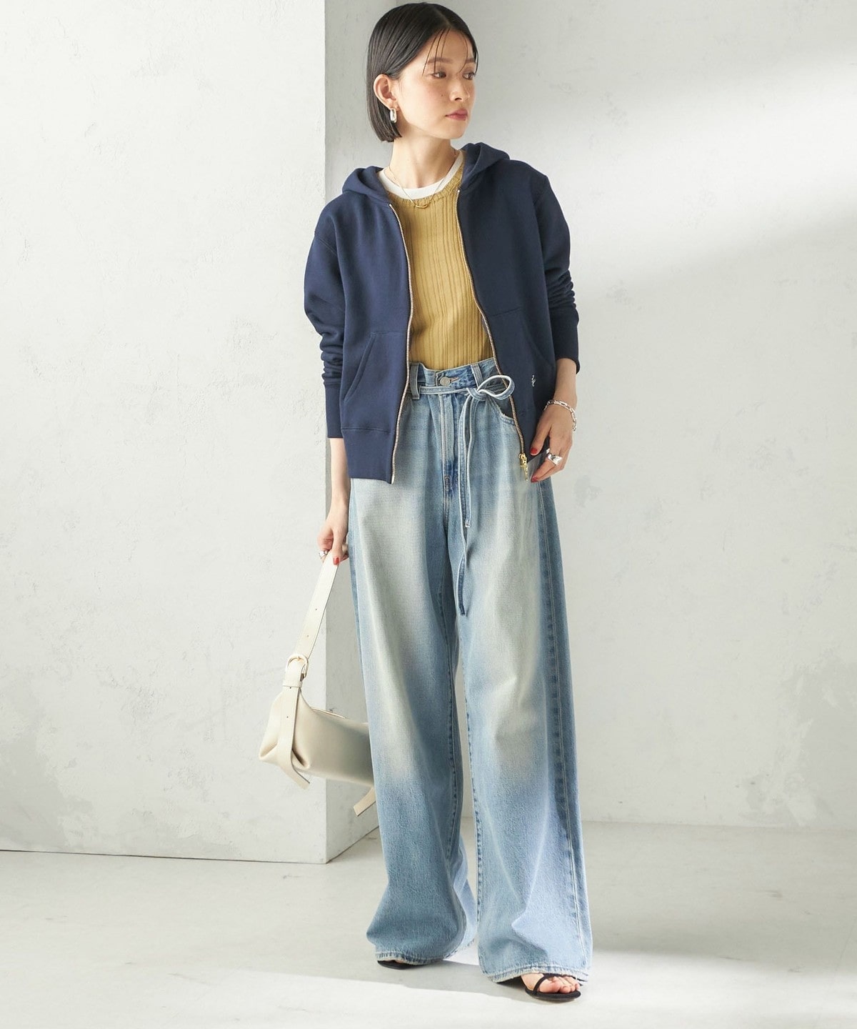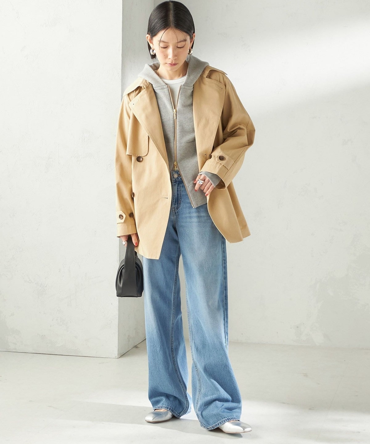ダブルジップなので裾を開けてボトムとの合わせはバランスが取りやすく、パンツやスカート、ワンピースなどオールアイテムとスタイリングが楽しめます。