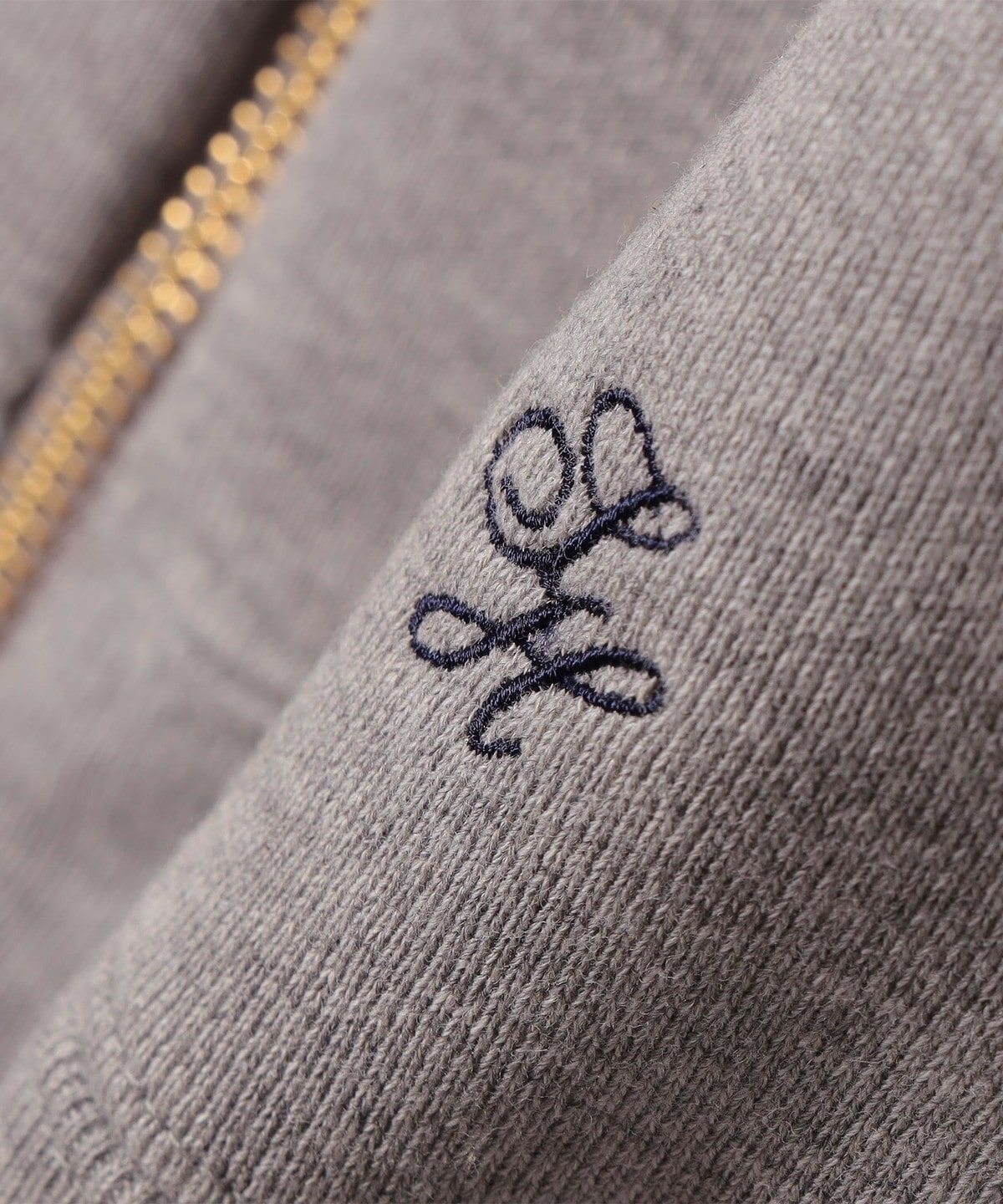 2. 《予約》〈洗濯機可能〉AZUMA 裏毛 刺繍 ジップ アップ パーカ グレー