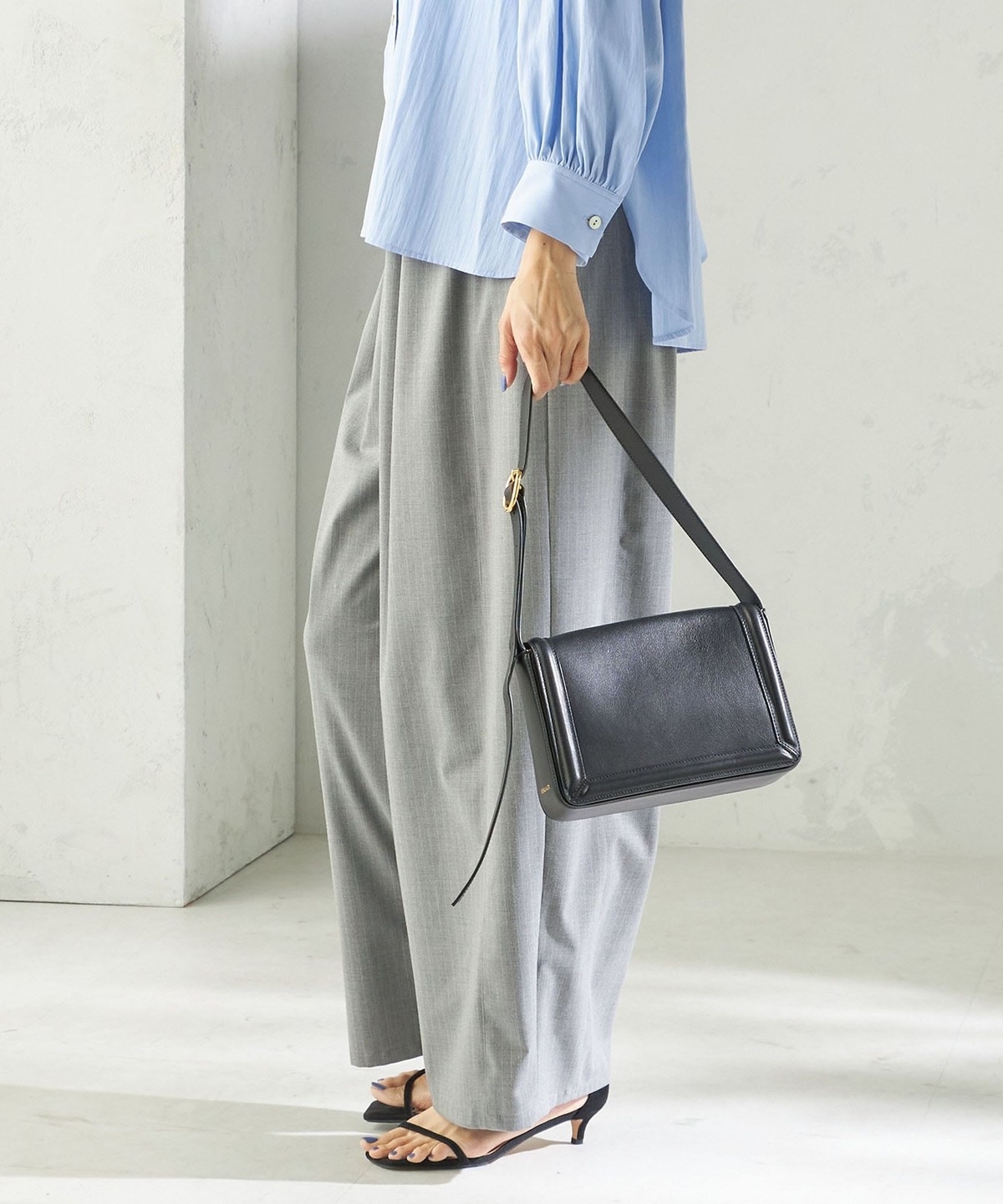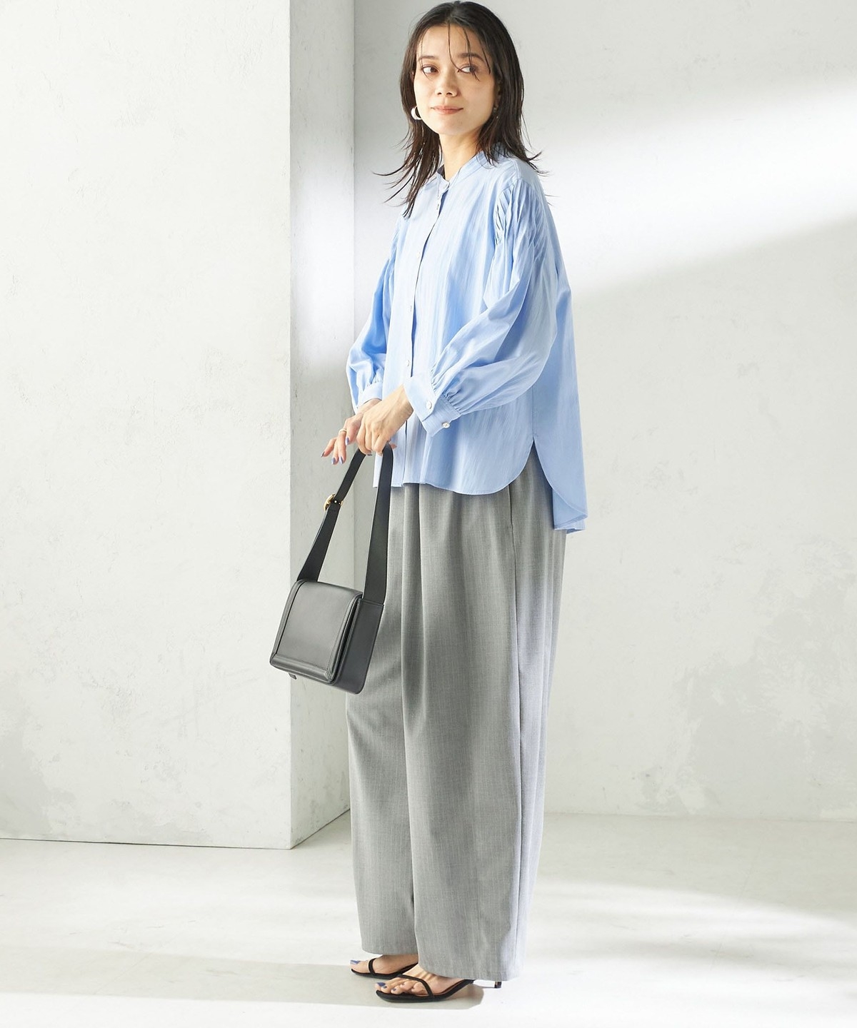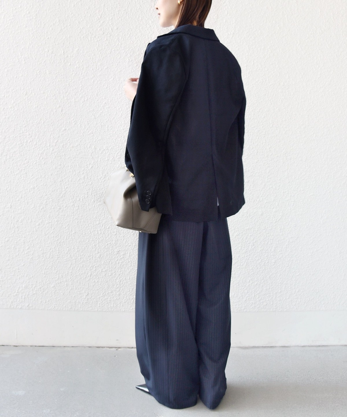 太すぎないカーブシルエットと、落ち感のある素材によってストンときれいに下に落ち、すっきりとした印象に。