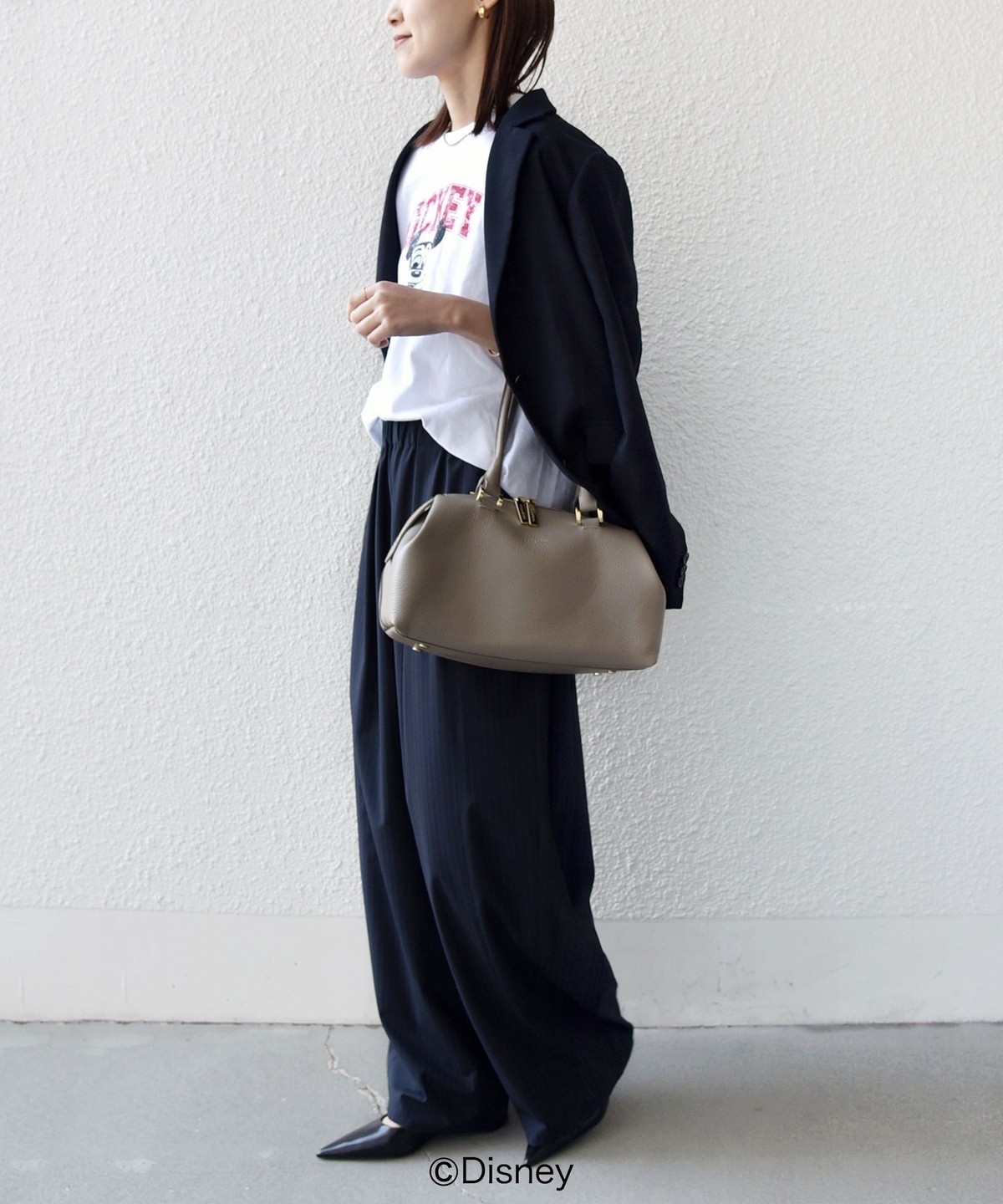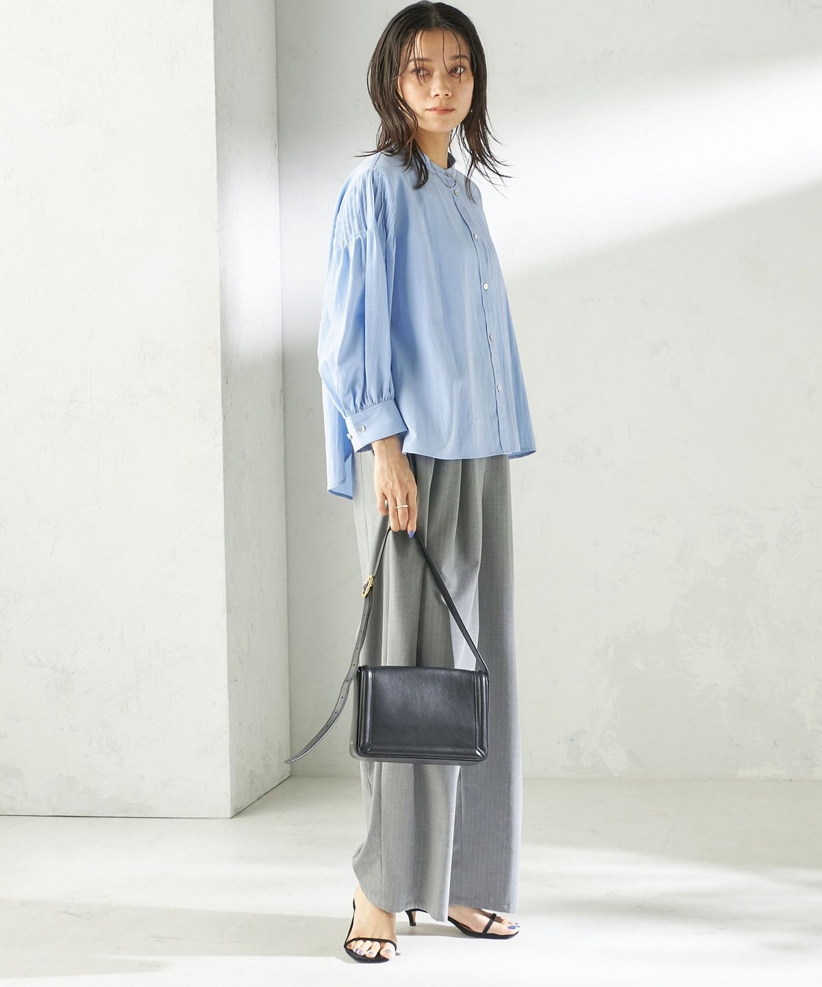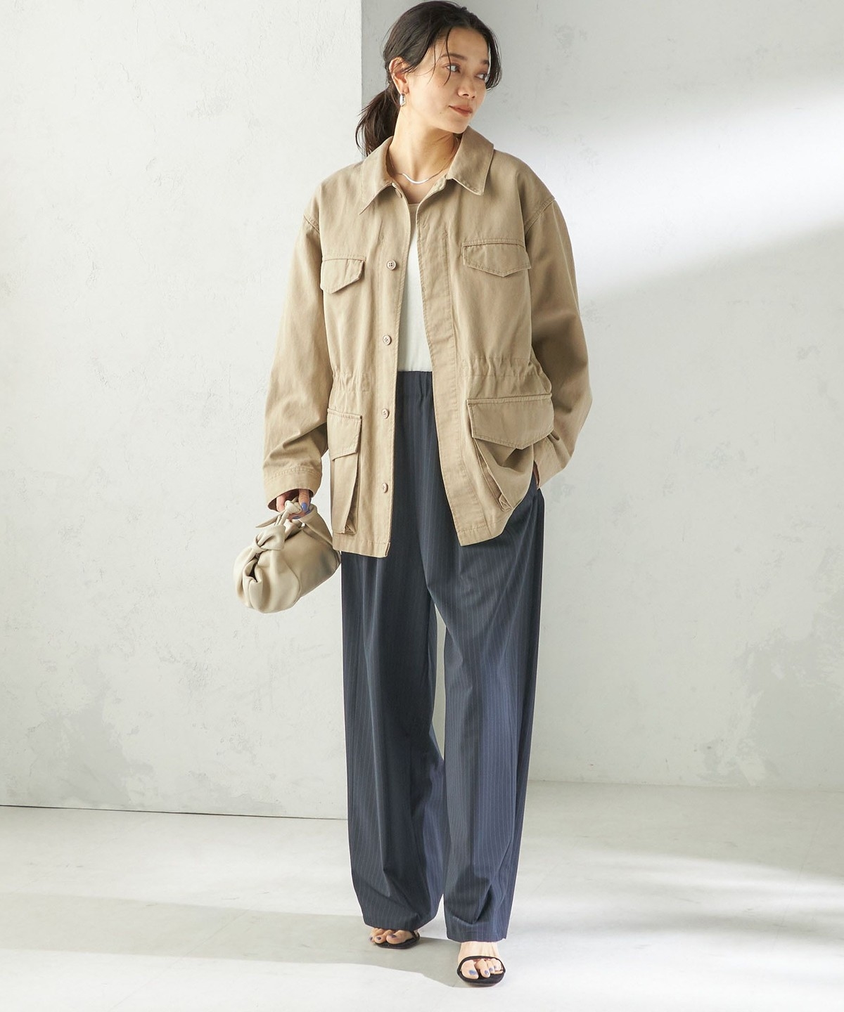 太すぎないカーブシルエットと、落ち感のある素材によってストンときれいに下に落ち、すっきりとした印象に。