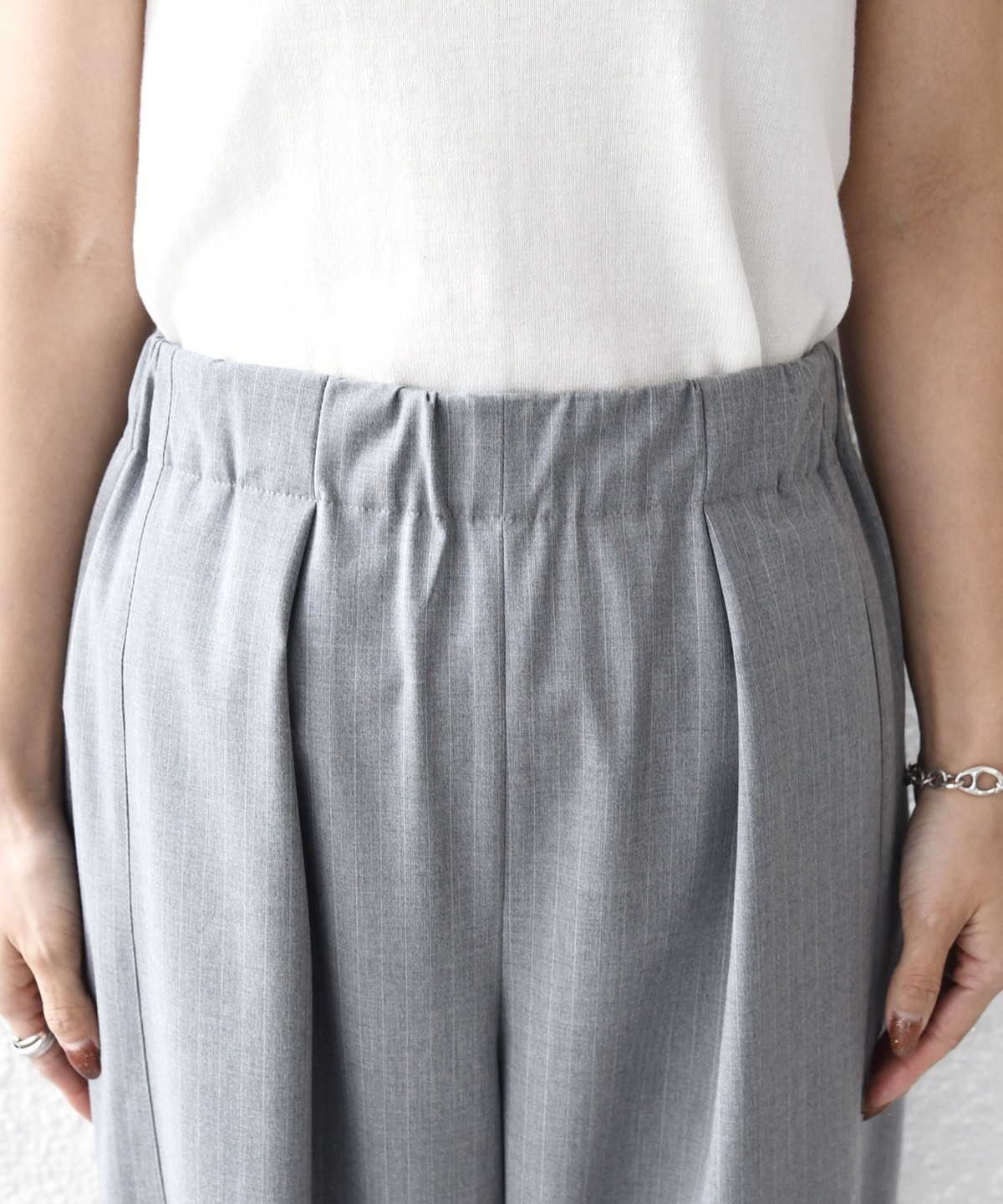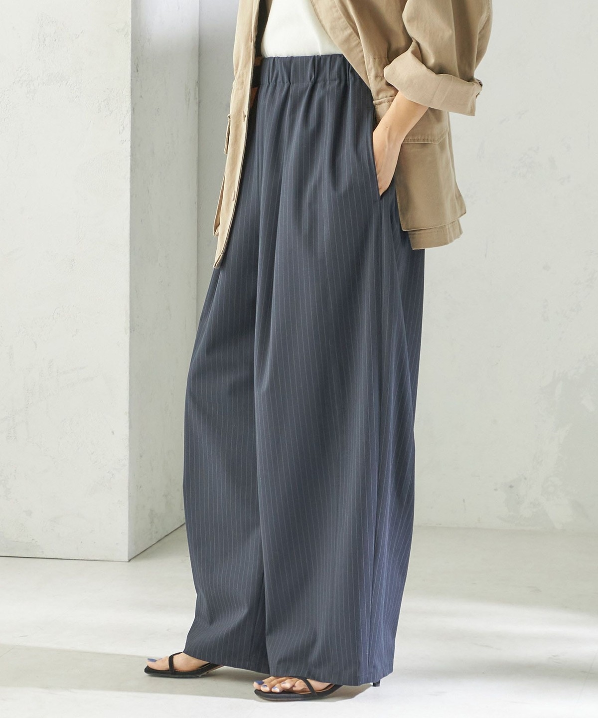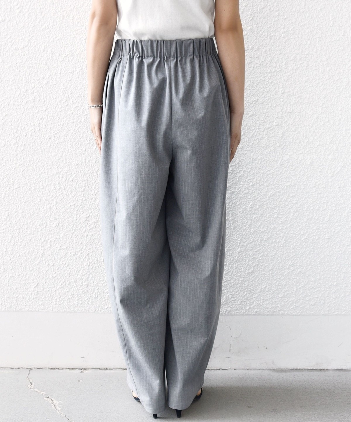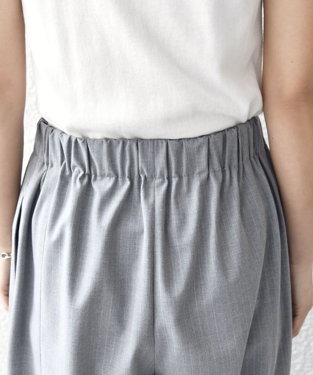 《予約》〈手洗い可能〉トロ ピン ストライプ ウエスト ギャザー パンツ