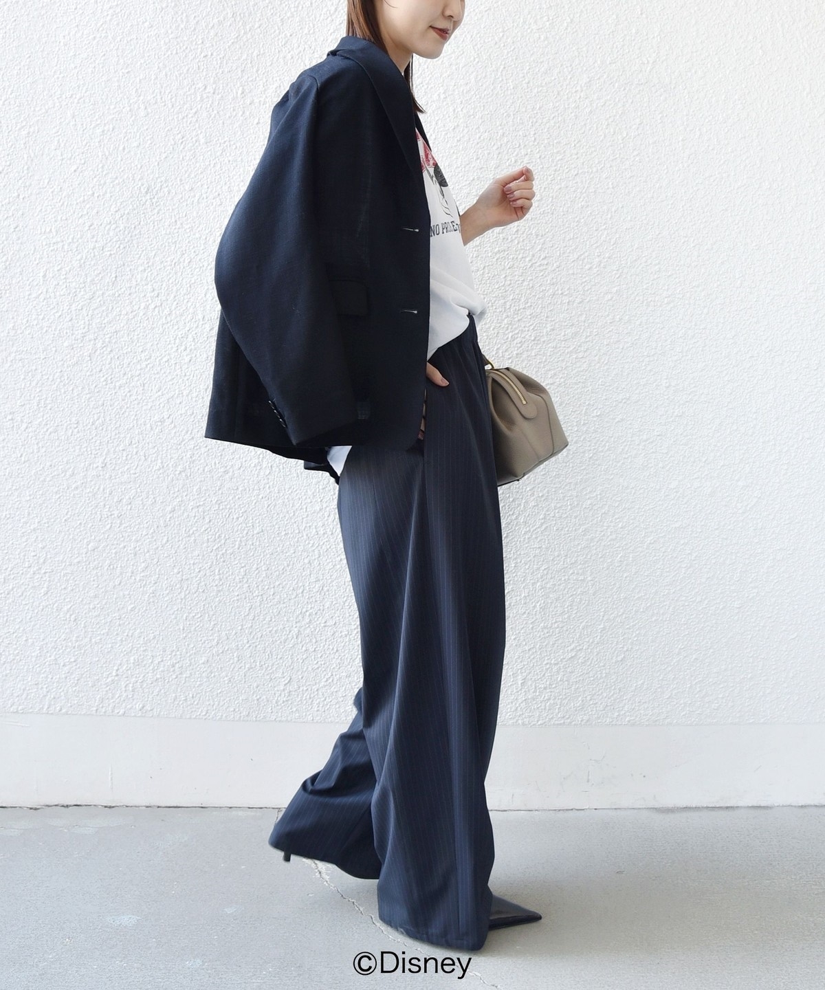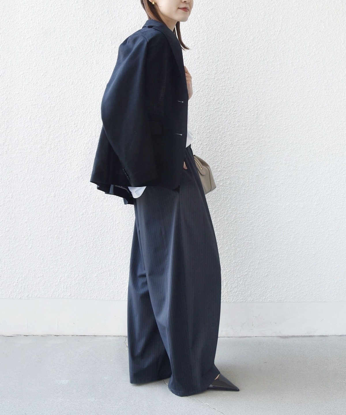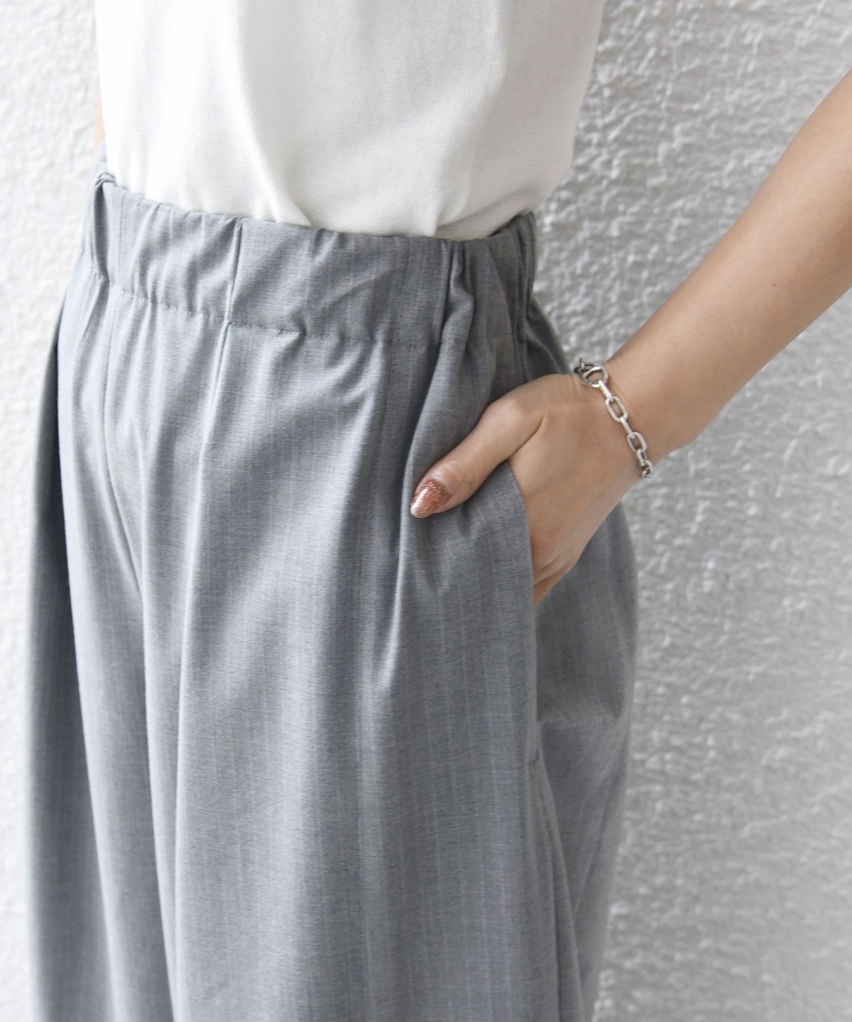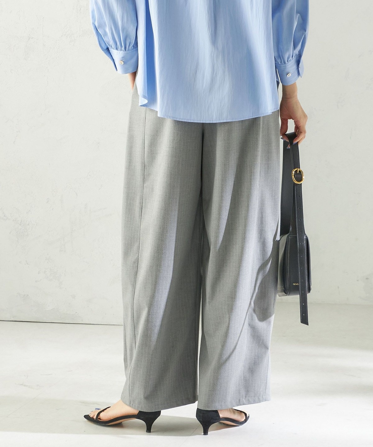 《予約》〈手洗い可能〉トロ ピン ストライプ ウエスト ギャザー パンツ
