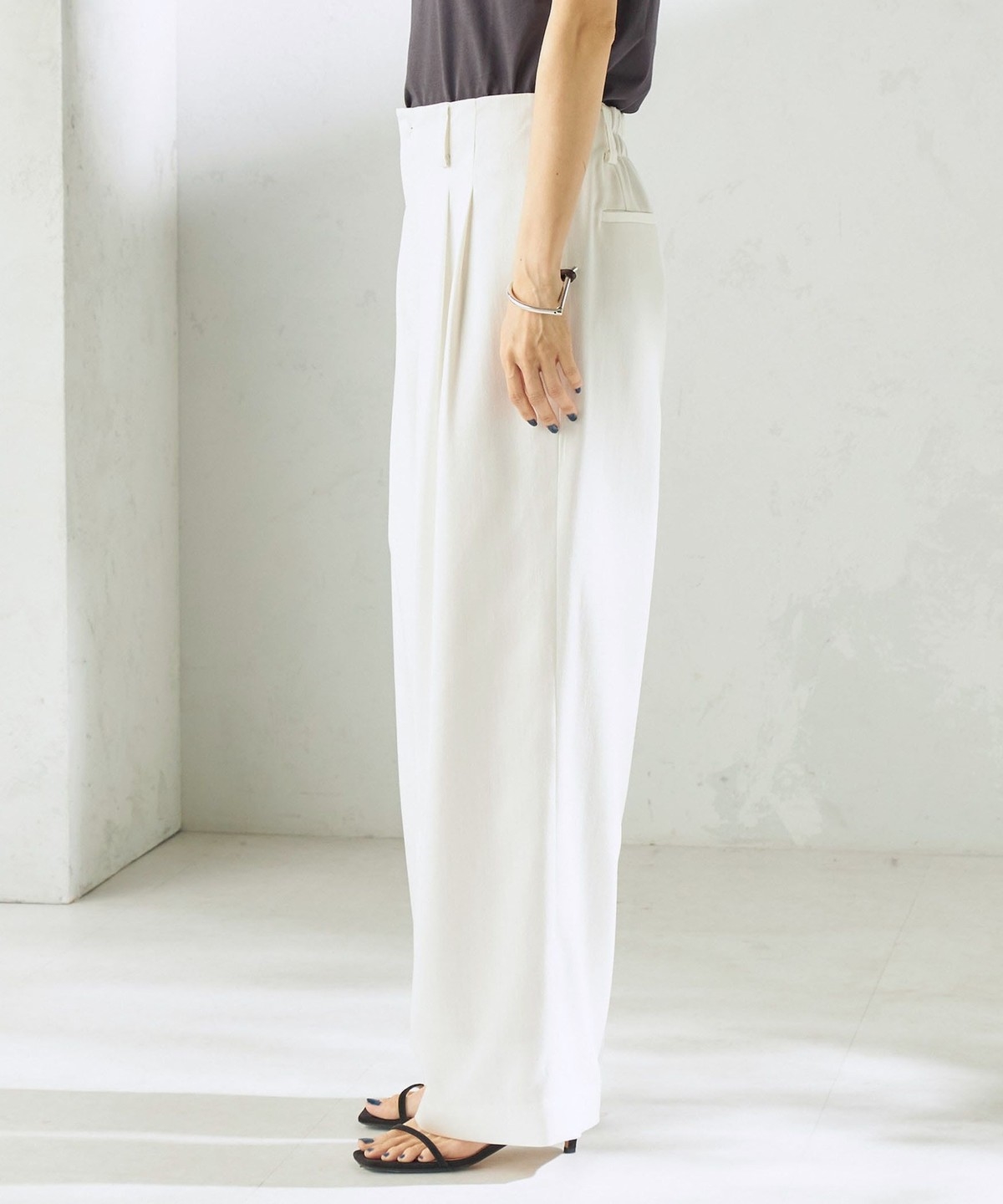 ラフに穿けて、品よく決まるタックパンツ