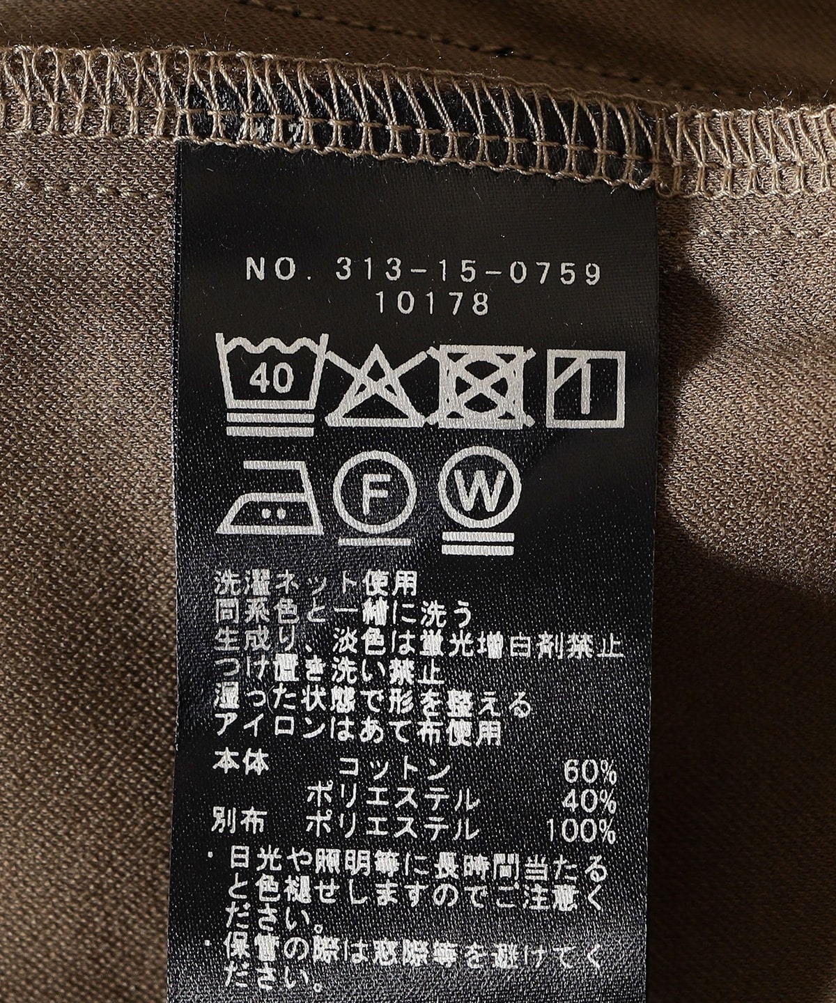 素材:本体(コットン60%、ポリエステル40%)別布(ポリエステル100%)