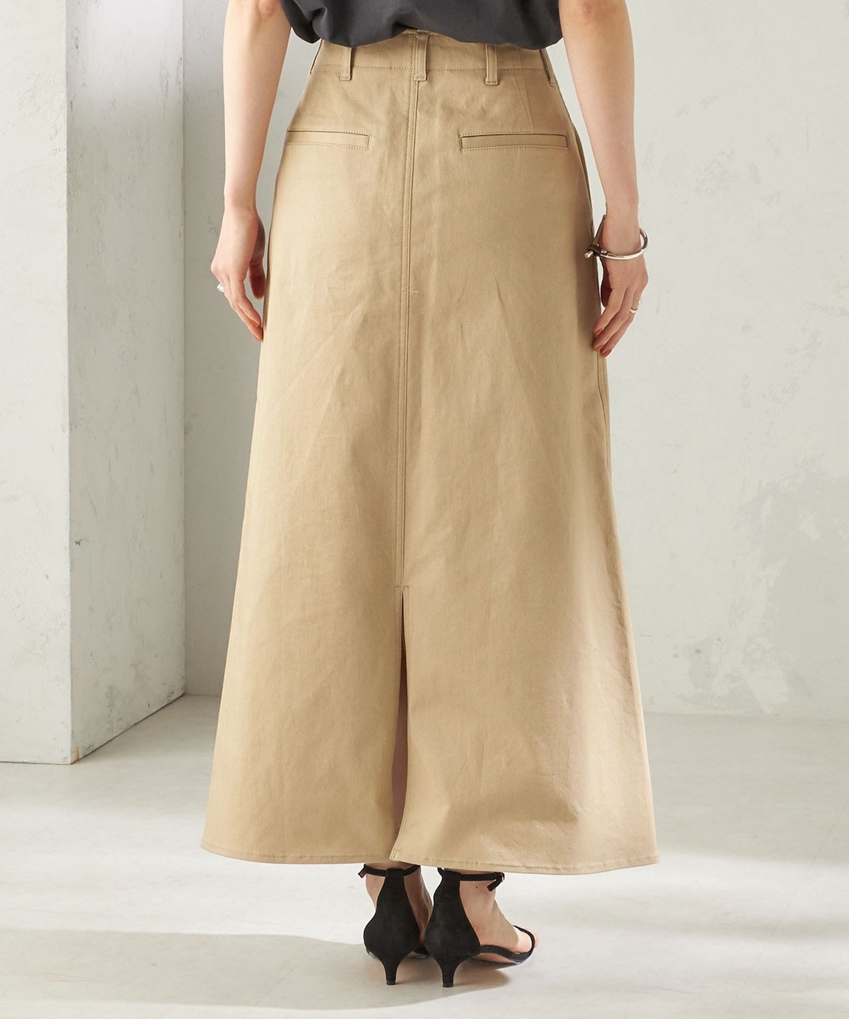 トラディショナルなディテールを活かしたストレッチチノスカート。