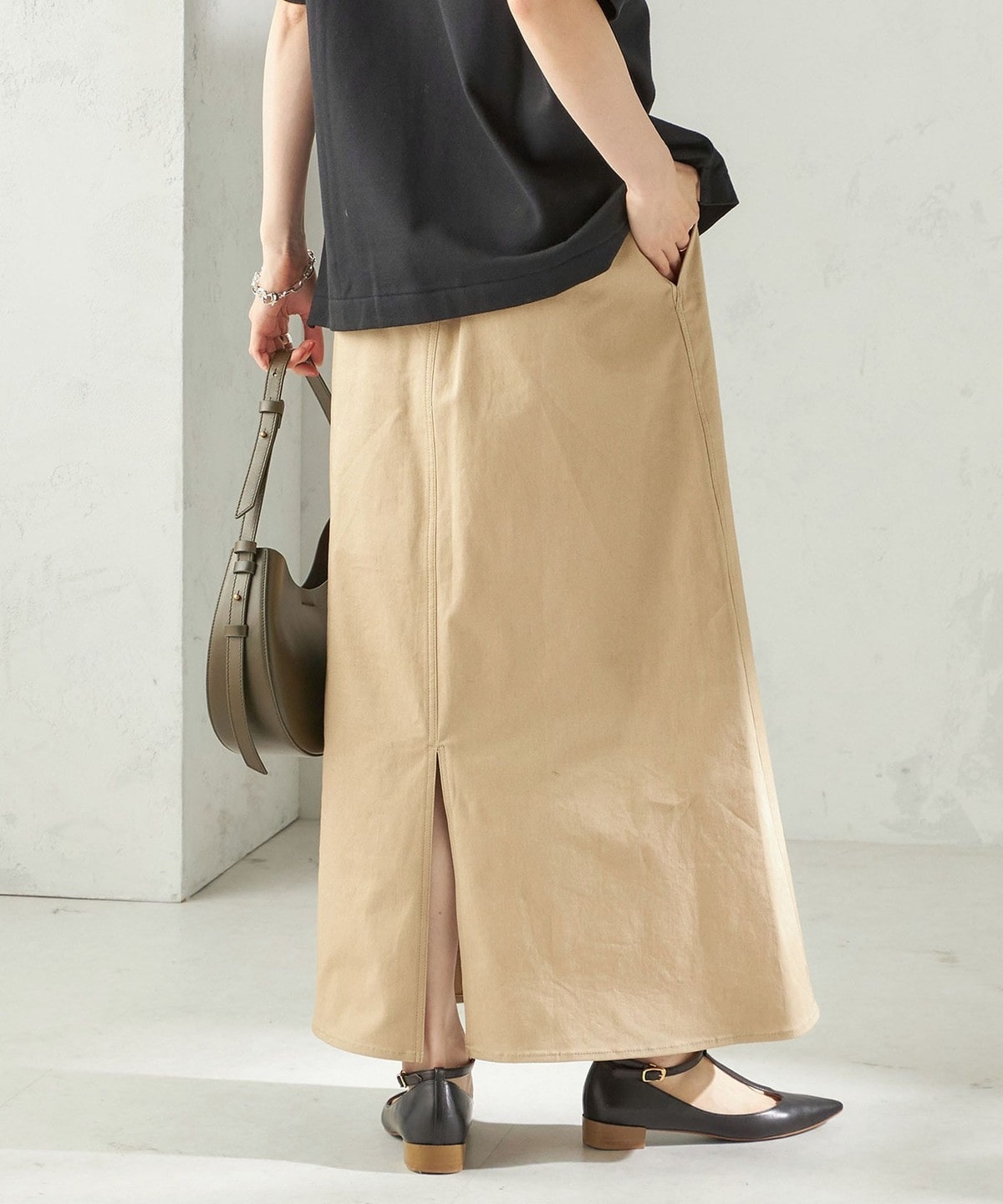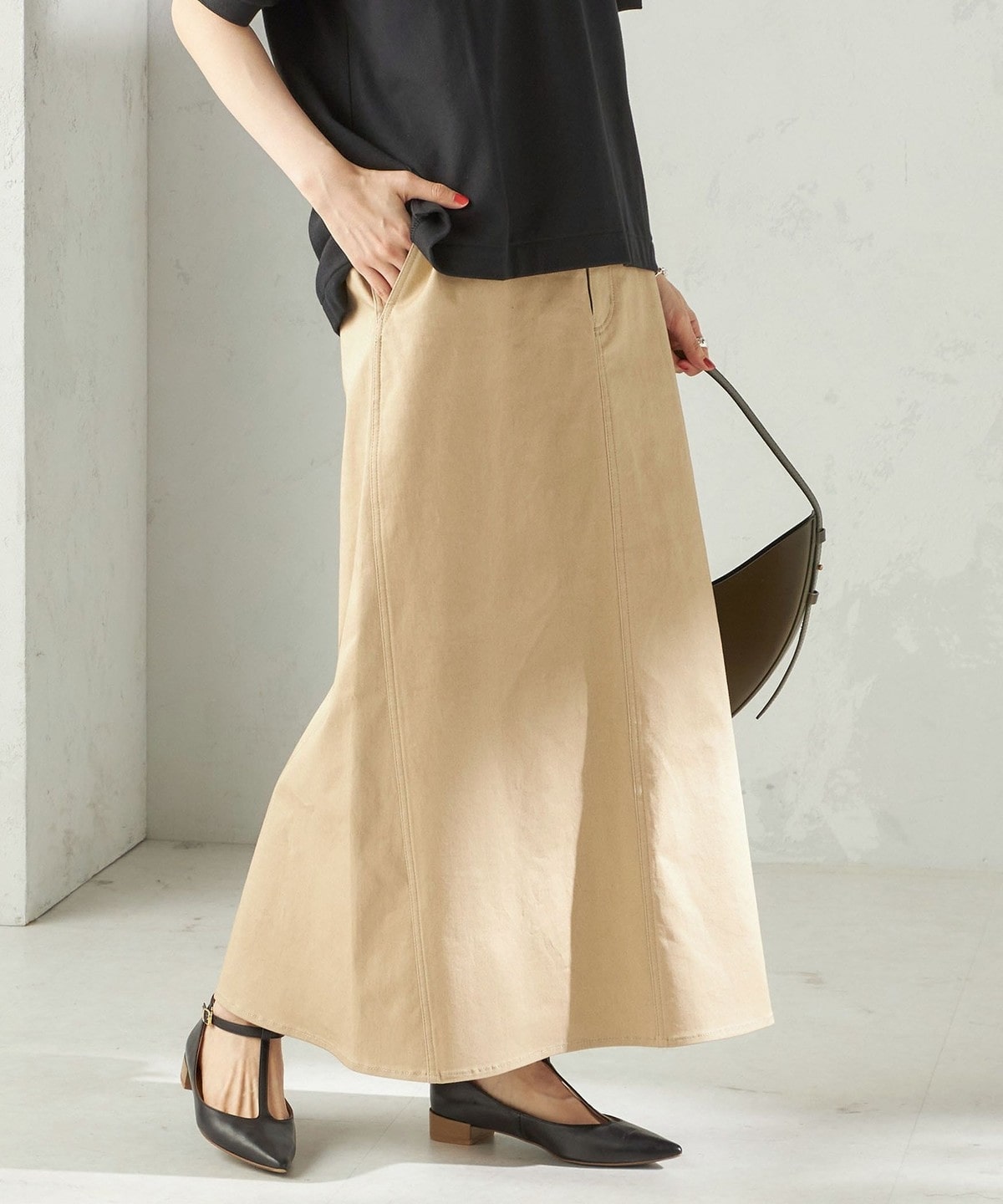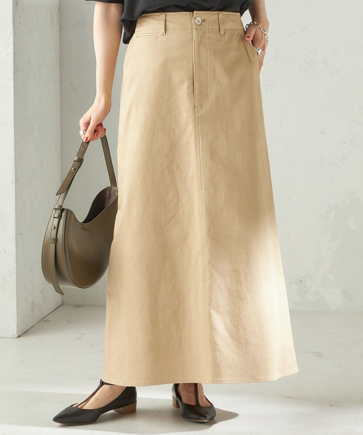 1. 《予約》〈洗濯機可能〉ストレッチ チノ 硫化染め ステッチ スカート ベージュ
