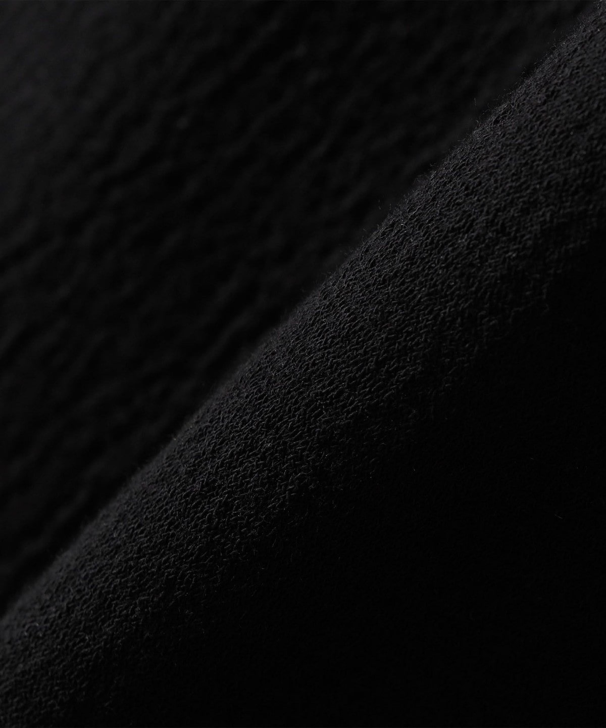 ジャージー素材ながらカジュアルに見えすぎず、きれいめなスタイリングにも対応。
