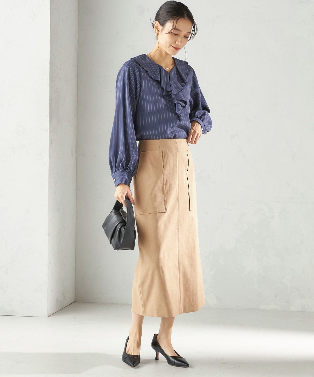 オフィスシーンはもちろん、タウン用のアイテムとしても着用して頂けるデザインスカートです。
