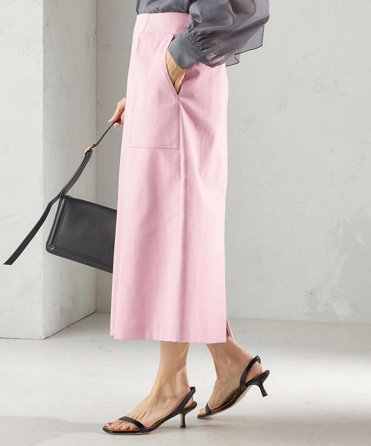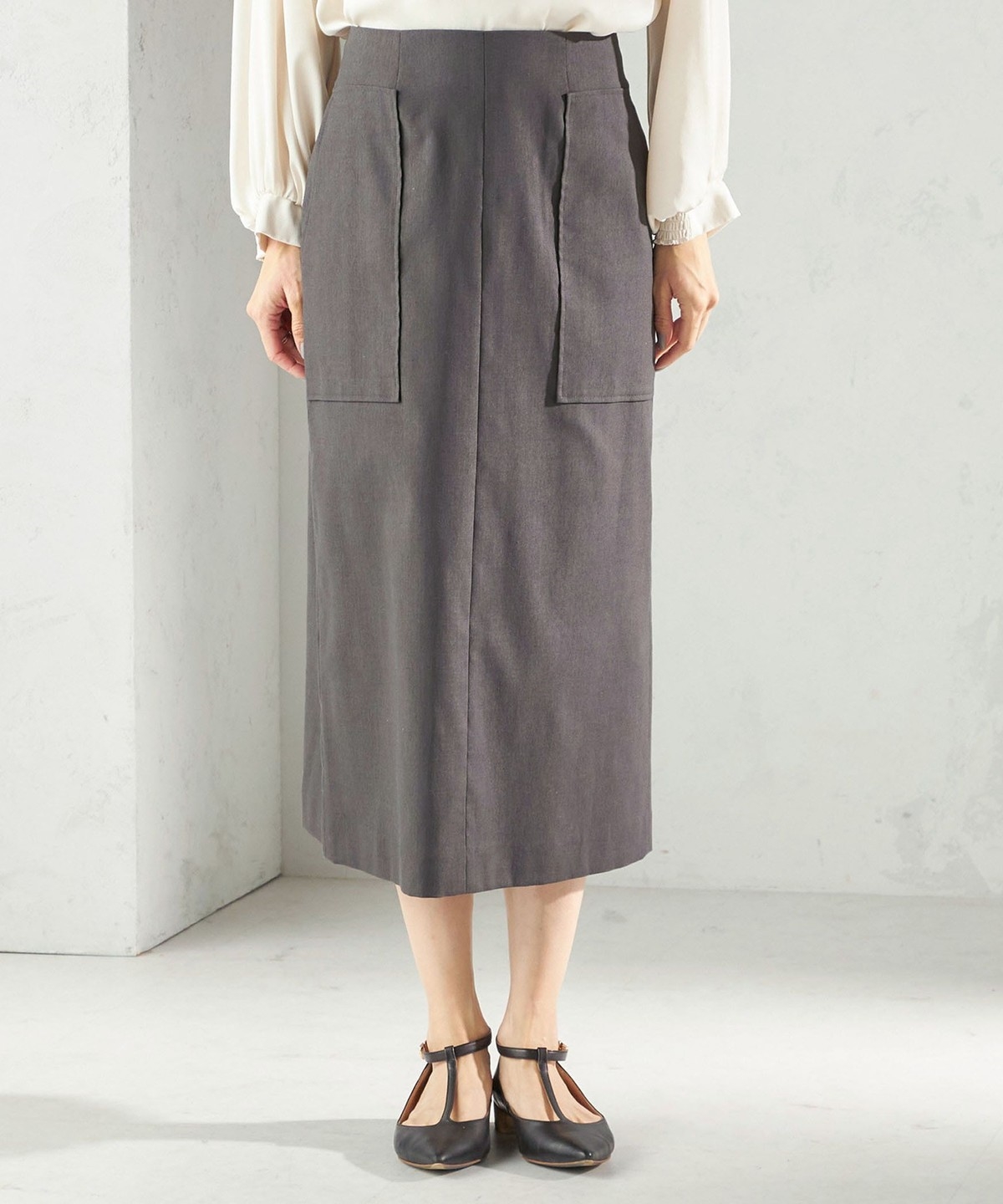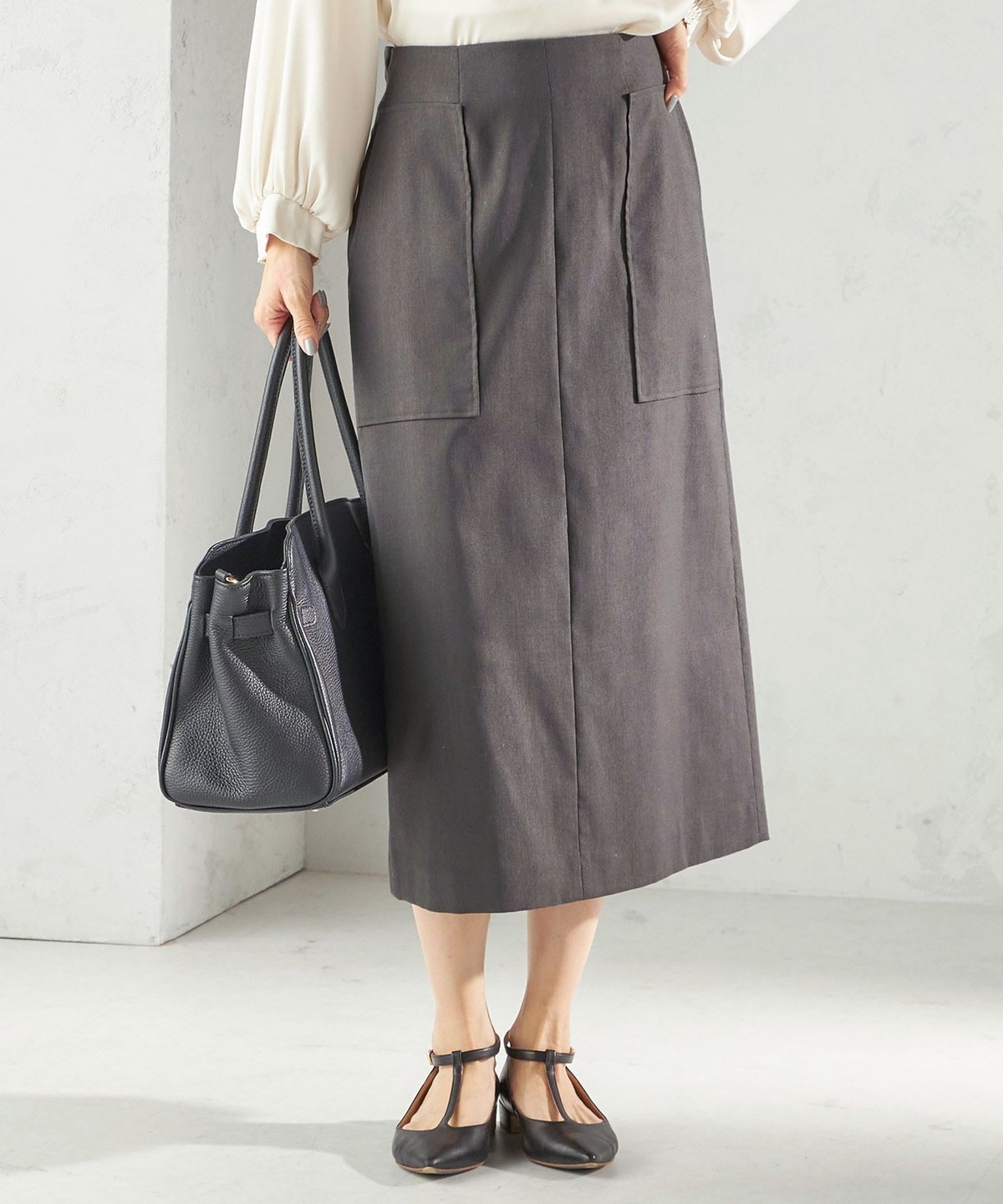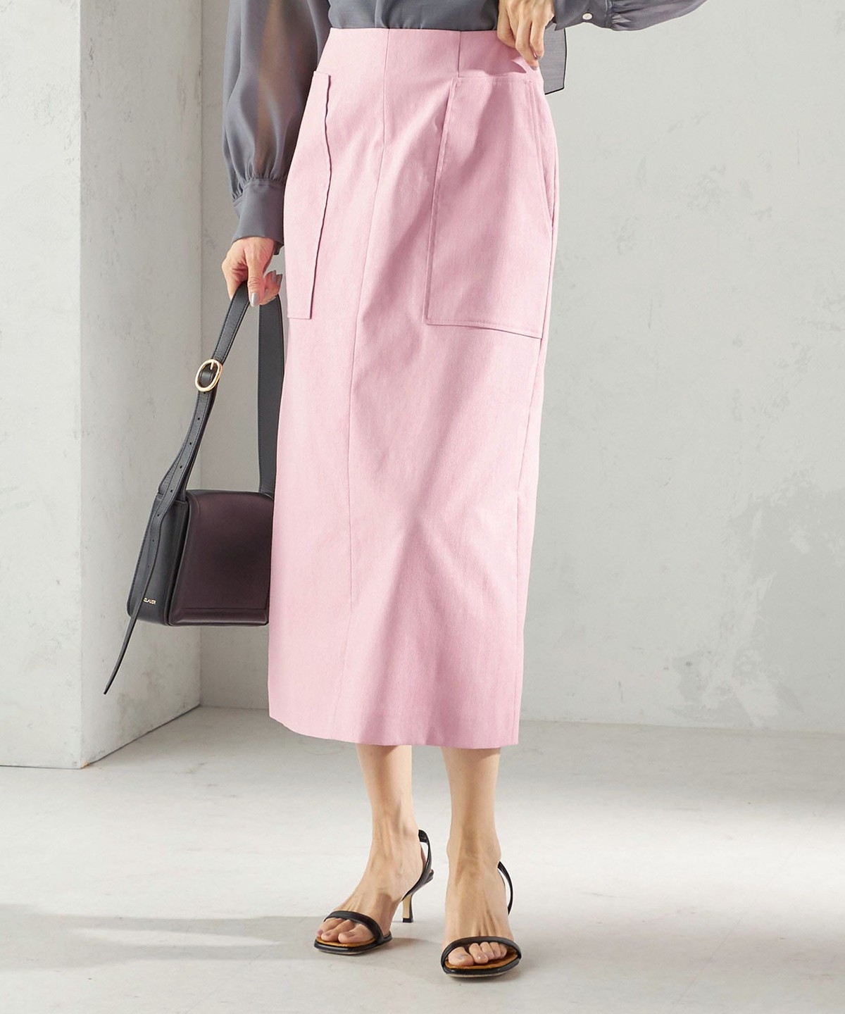 《予約》〈UVカット・吸水速乾・手洗い可能〉綿麻混 オックス ポケット タイト スカート