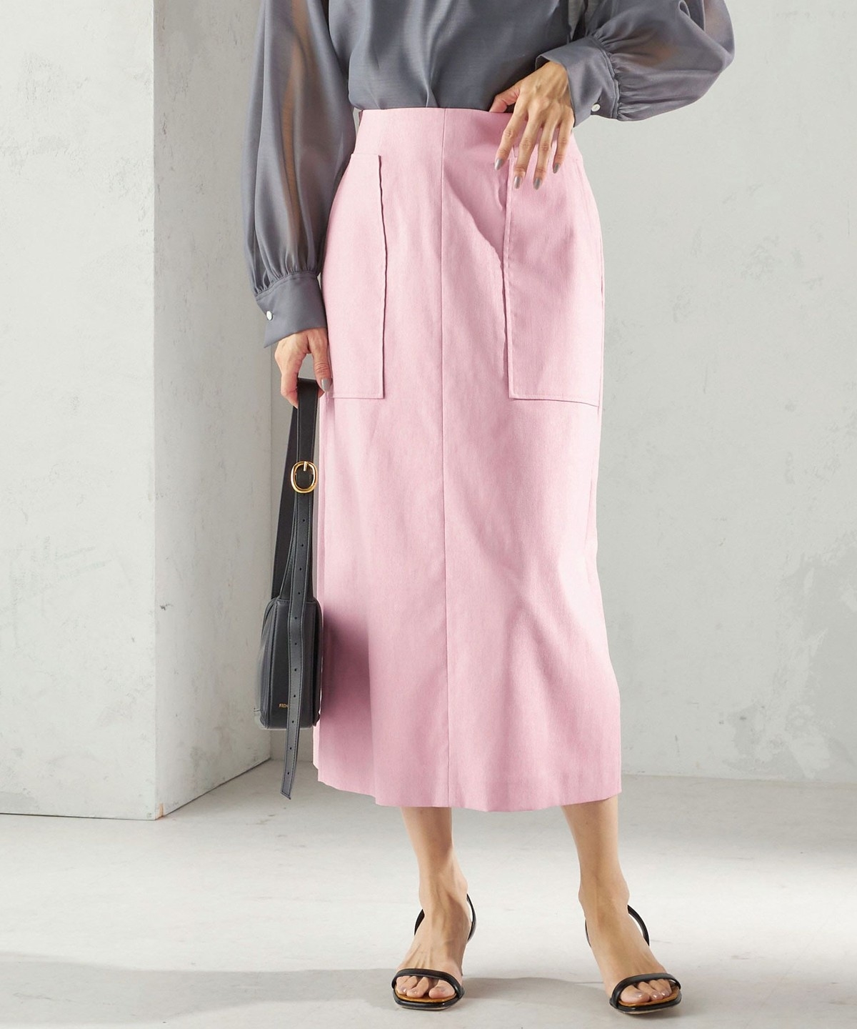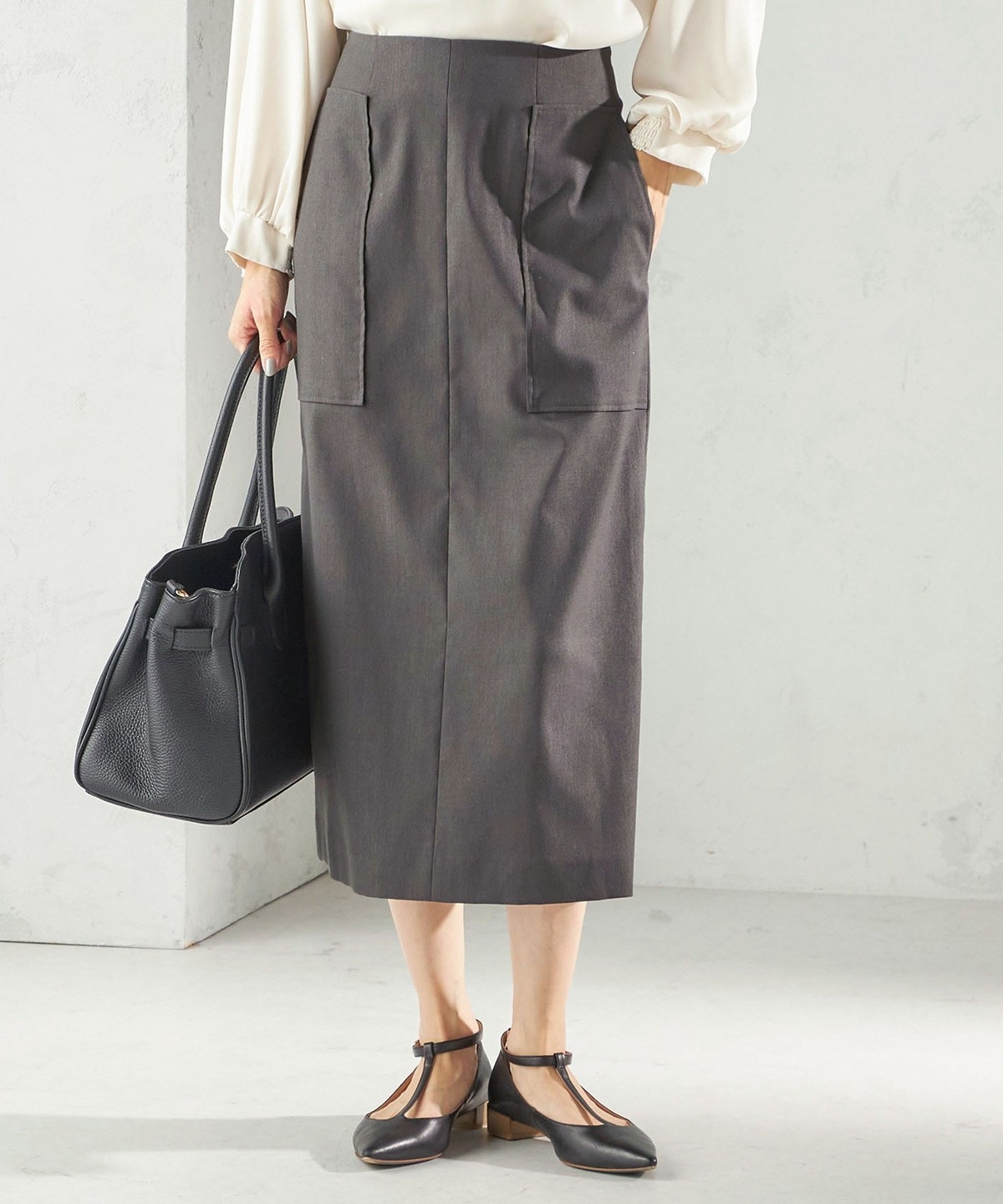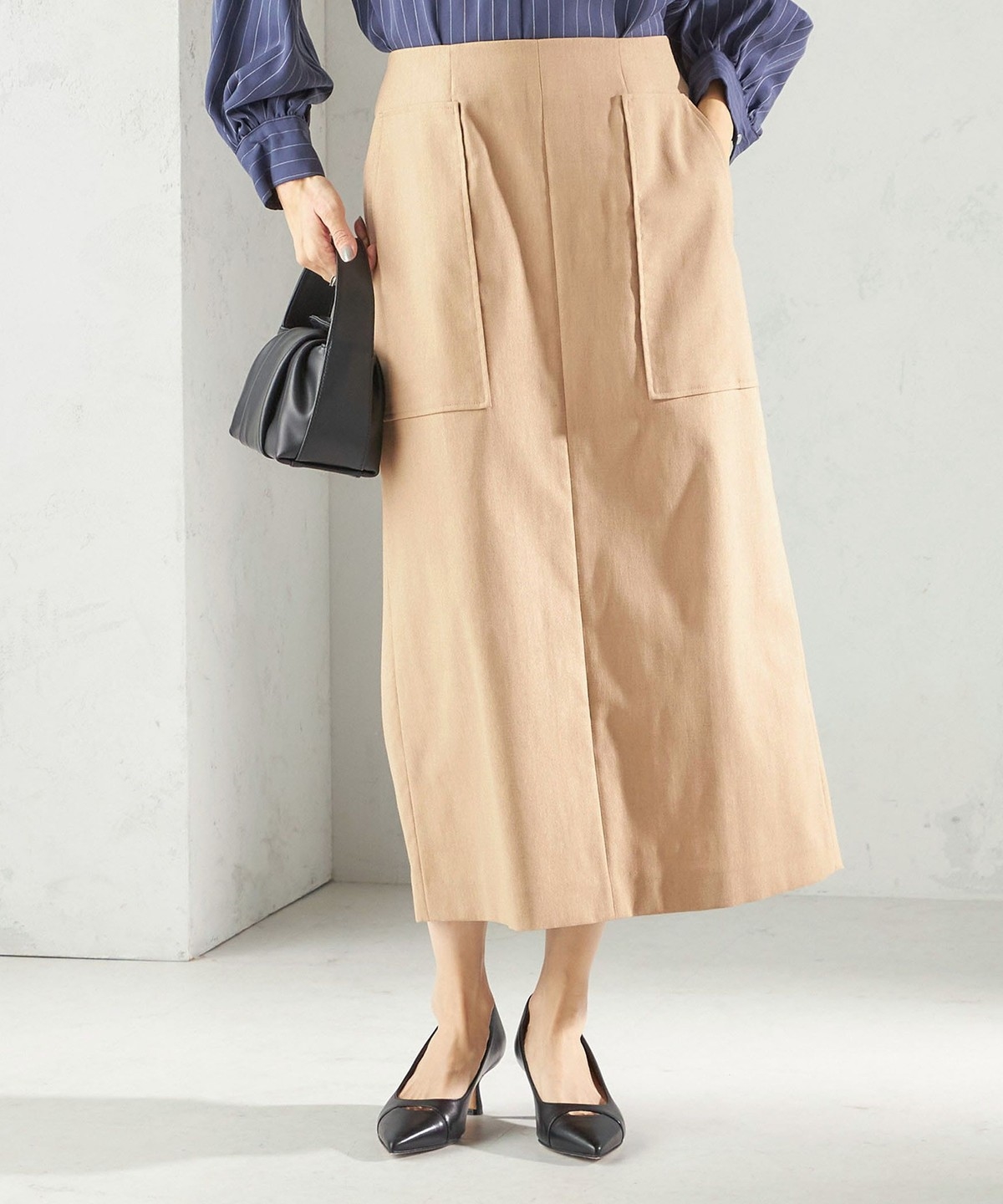 《予約》〈UVカット・吸水速乾・手洗い可能〉綿麻混 オックス ポケット タイト スカート