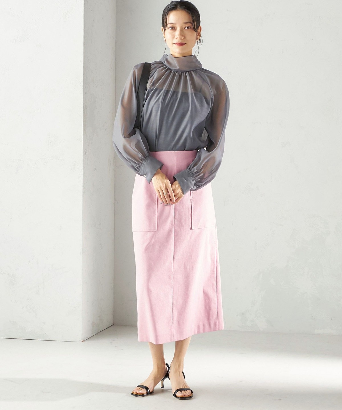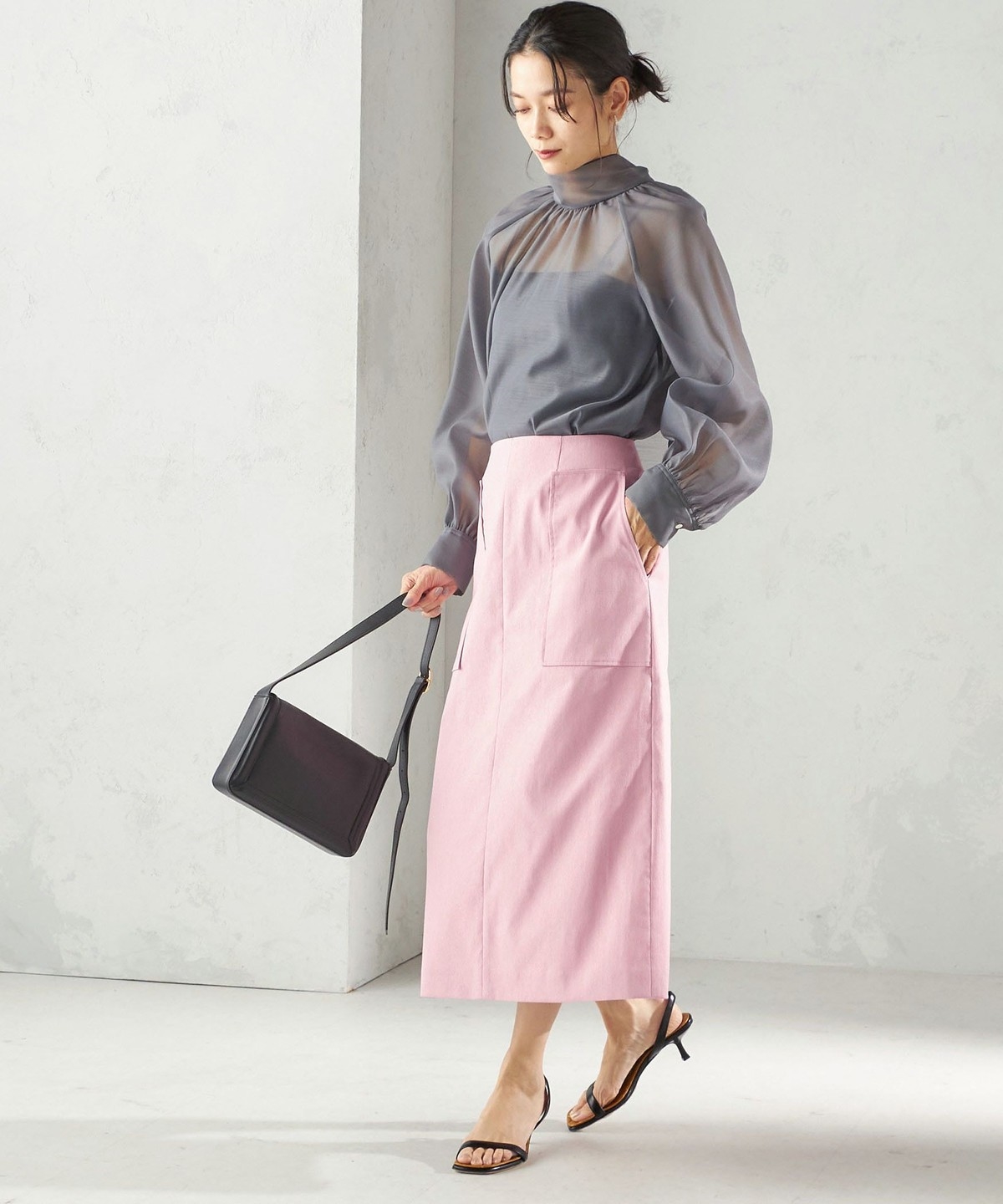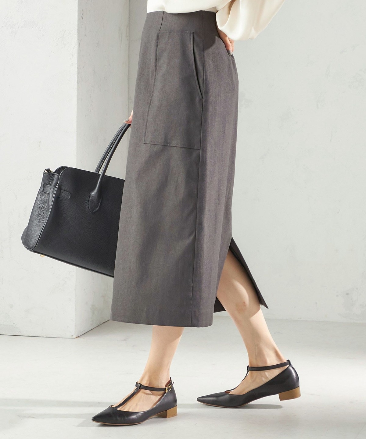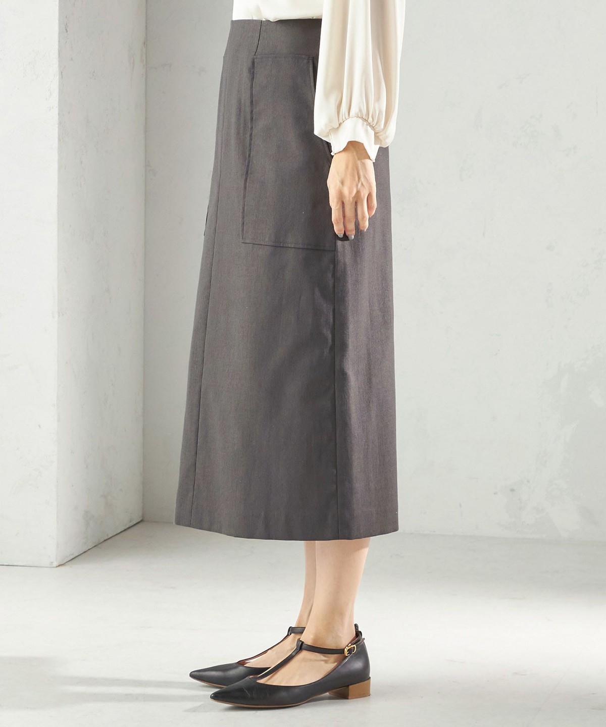 《予約》〈UVカット・吸水速乾・手洗い可能〉綿麻混 オックス ポケット タイト スカート