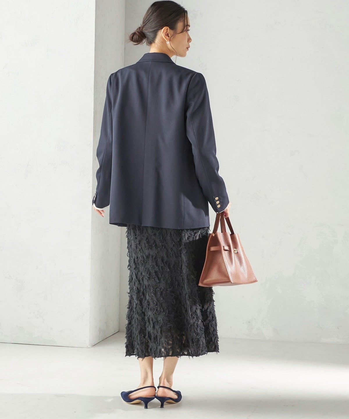 裏地との差寸を長めにとり、着丈もあえて短めに設定することで軽やかさを出し、どんなトップスにもバランス良く合わせやすいデザインに仕上げています。