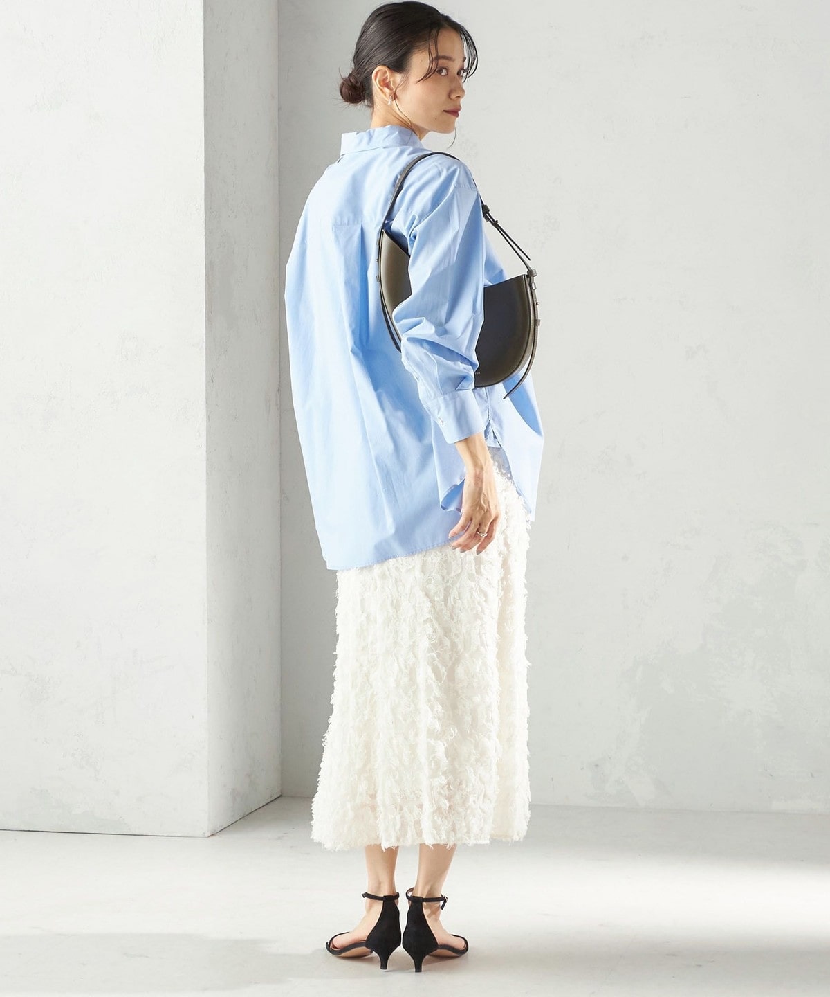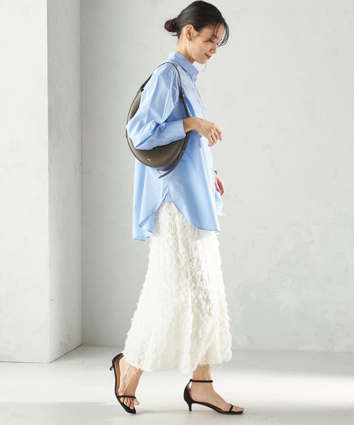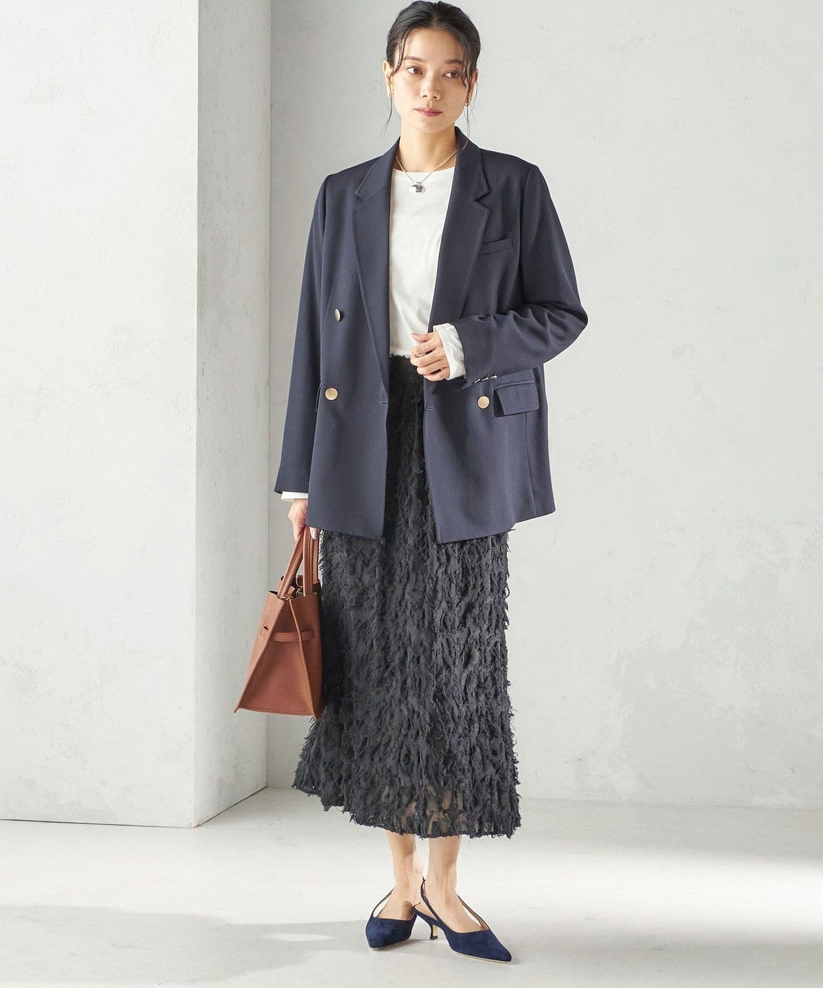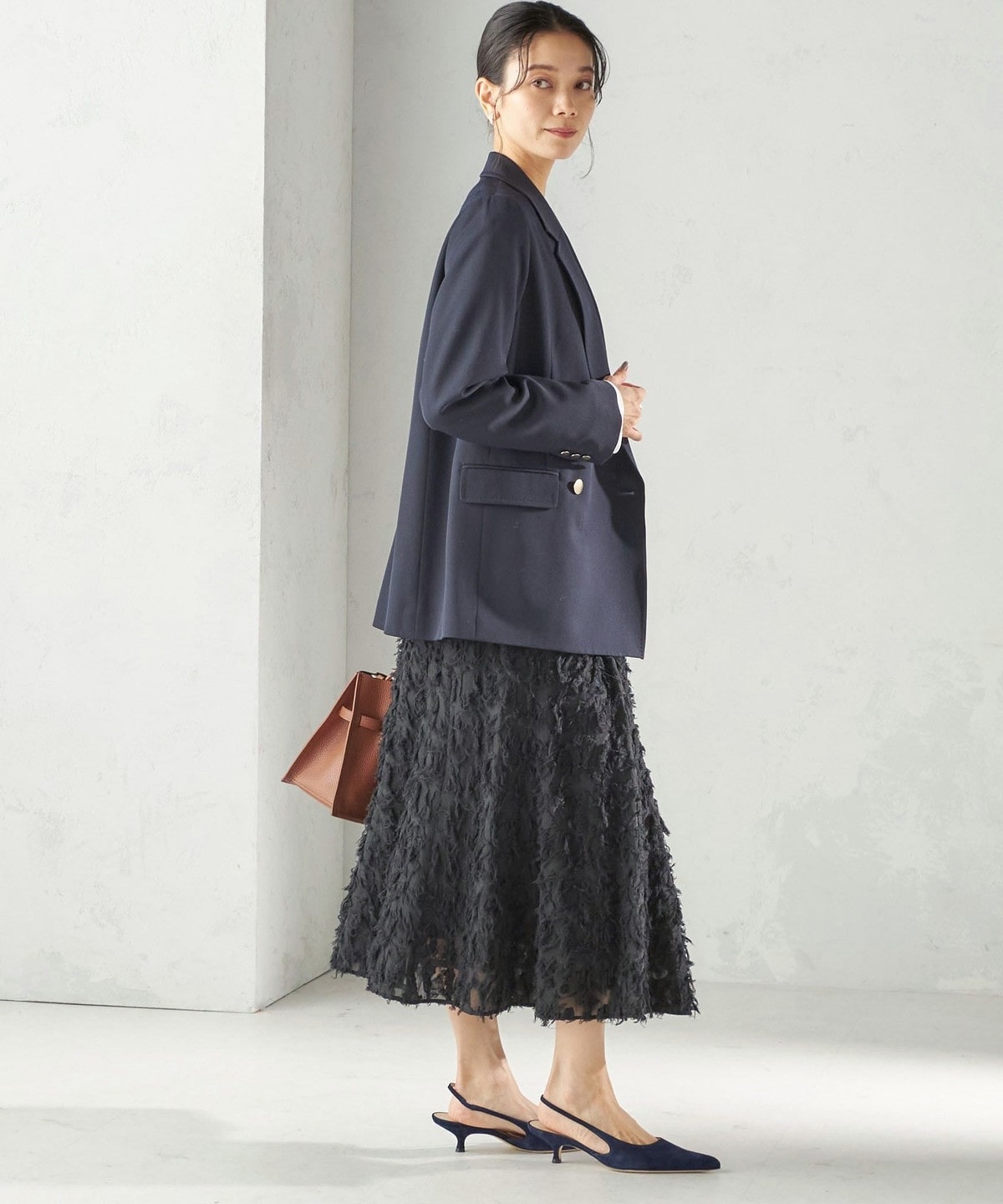ジャケットやツイードアイテムと合わせれば、華やかなセレモニーシーンに対応できるコーディネートが完成します。