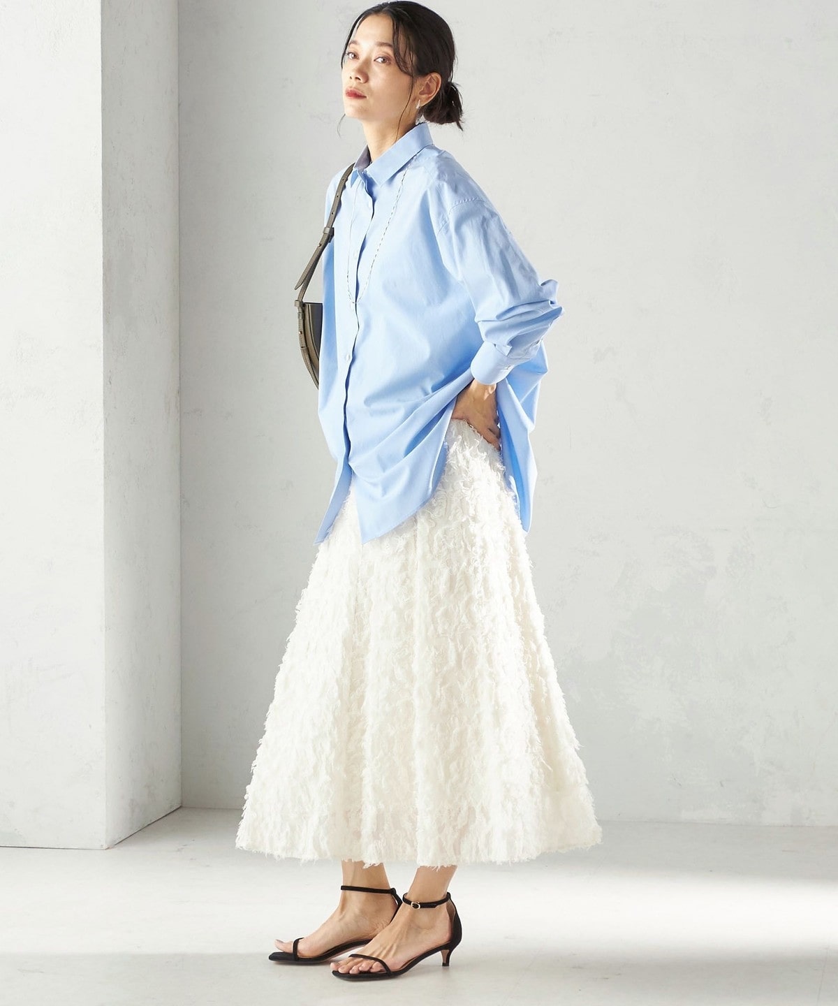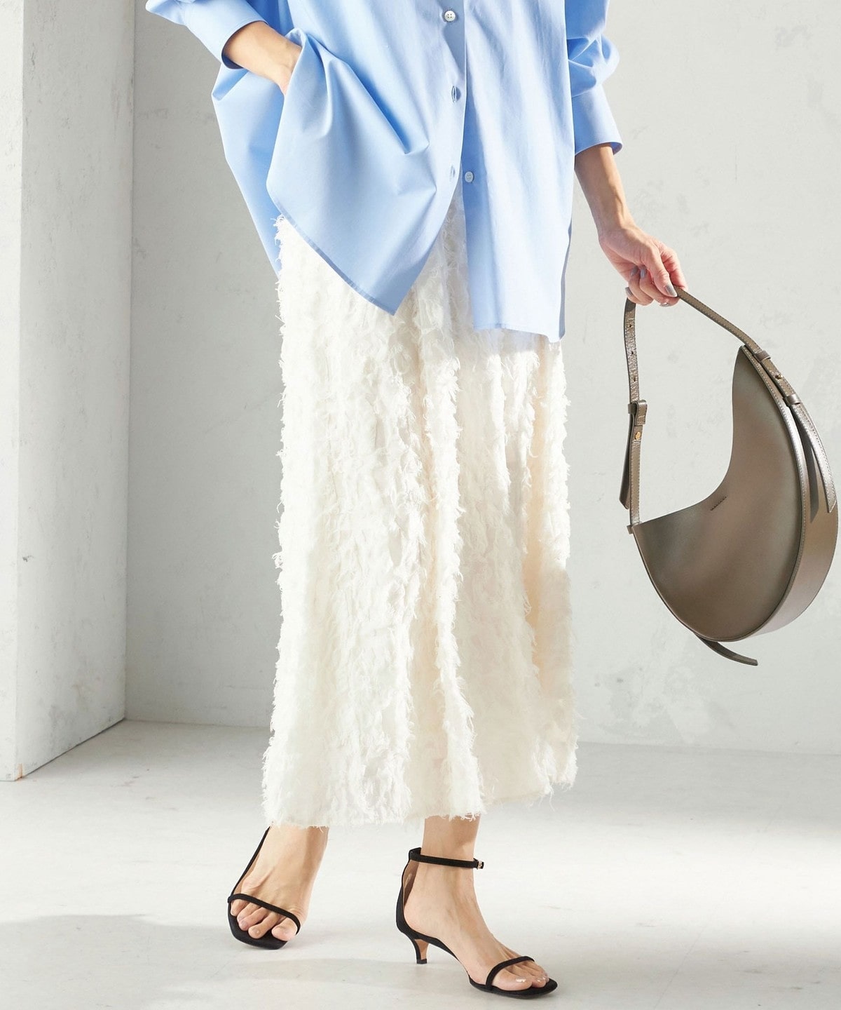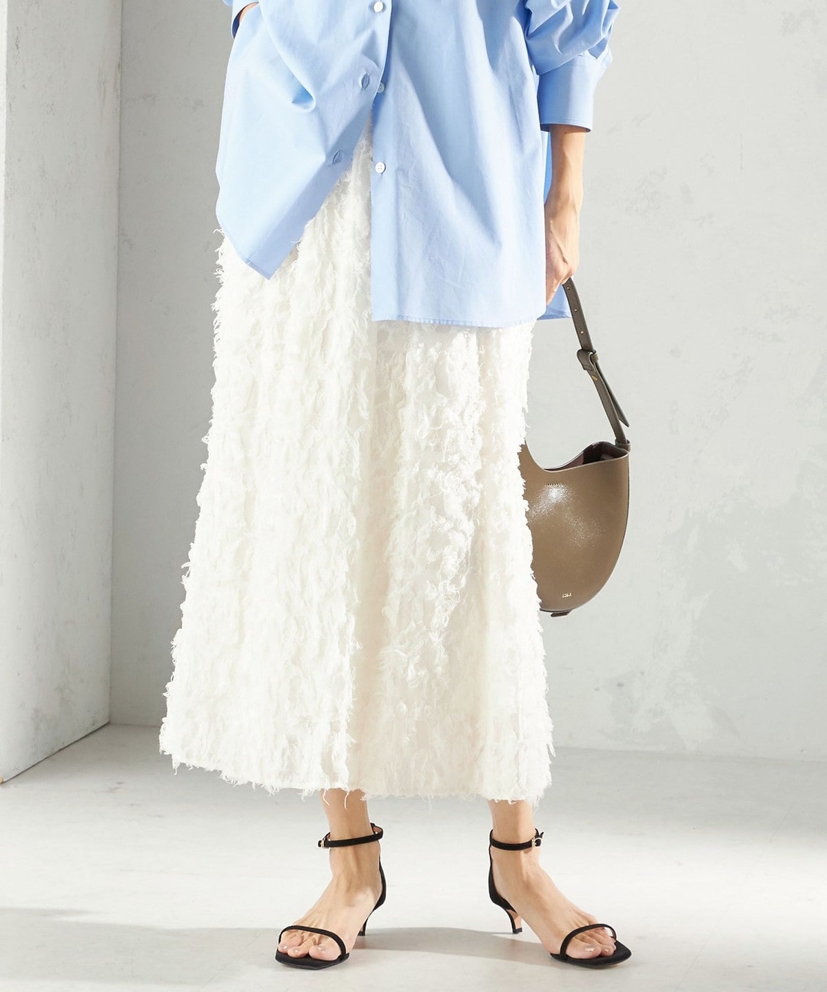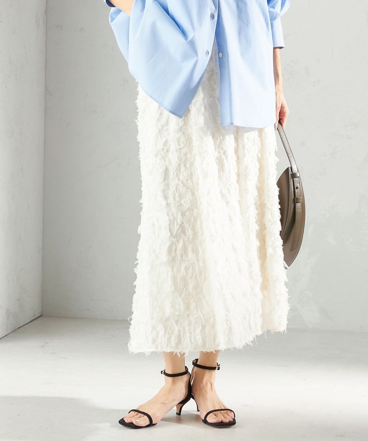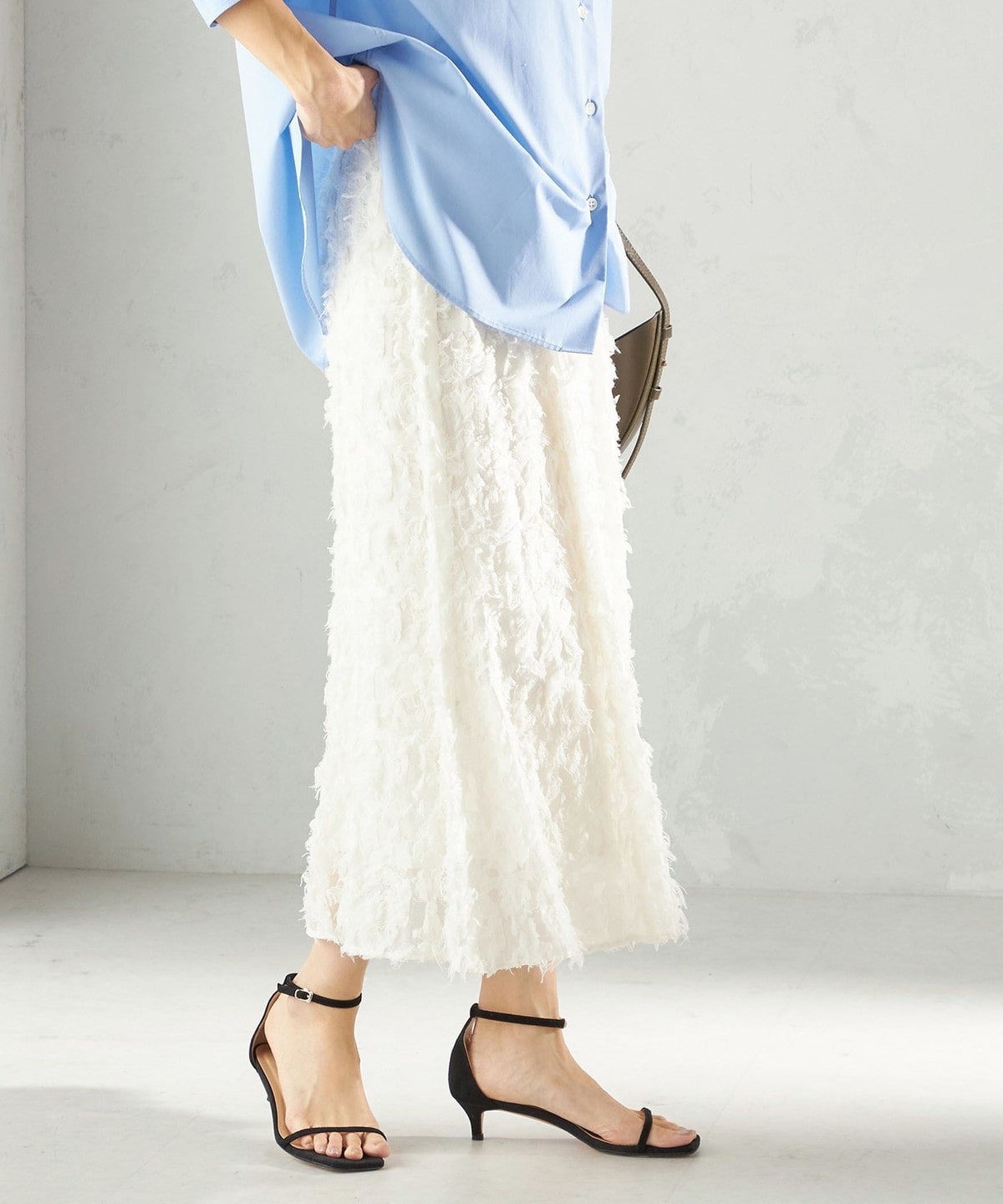 毛足の長いカットジャカードを採用した、華やかなフレアスカート。