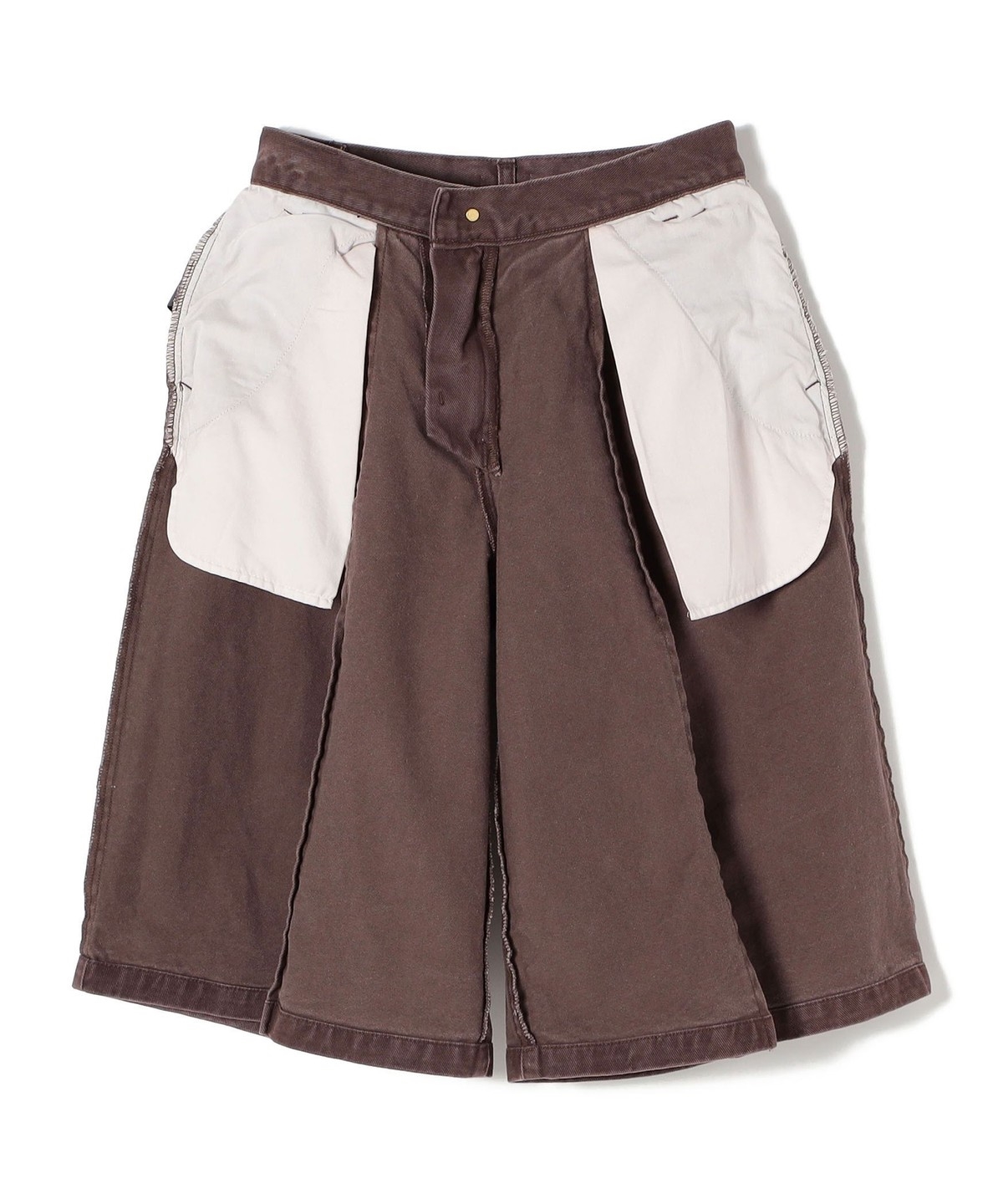 1. woadblue157:〈洗濯機可能〉ハーフ タック ショーツ ブラウン