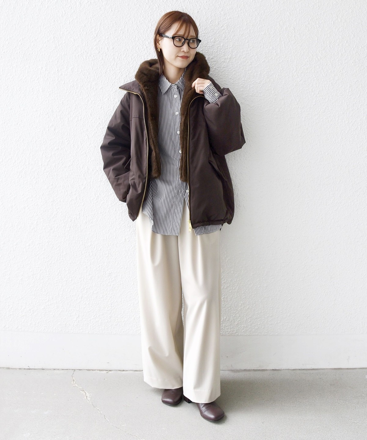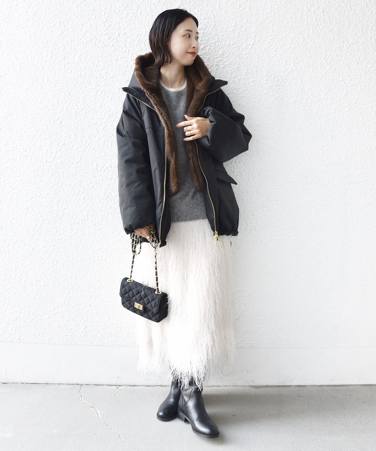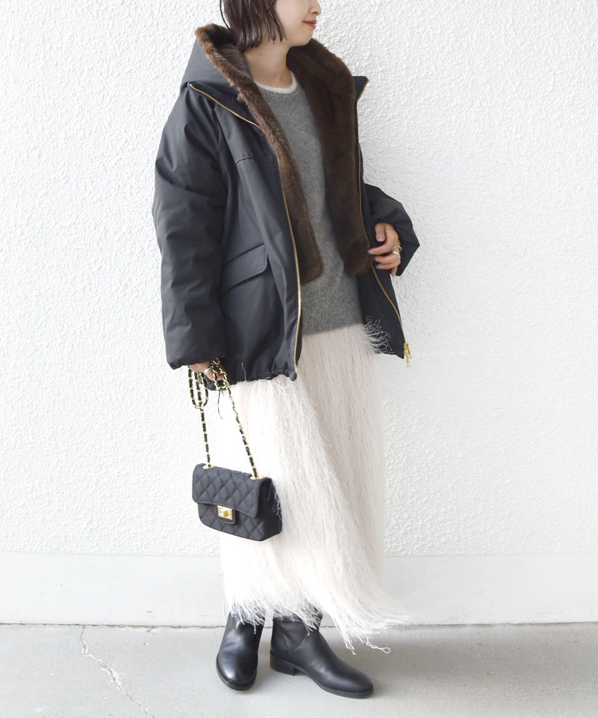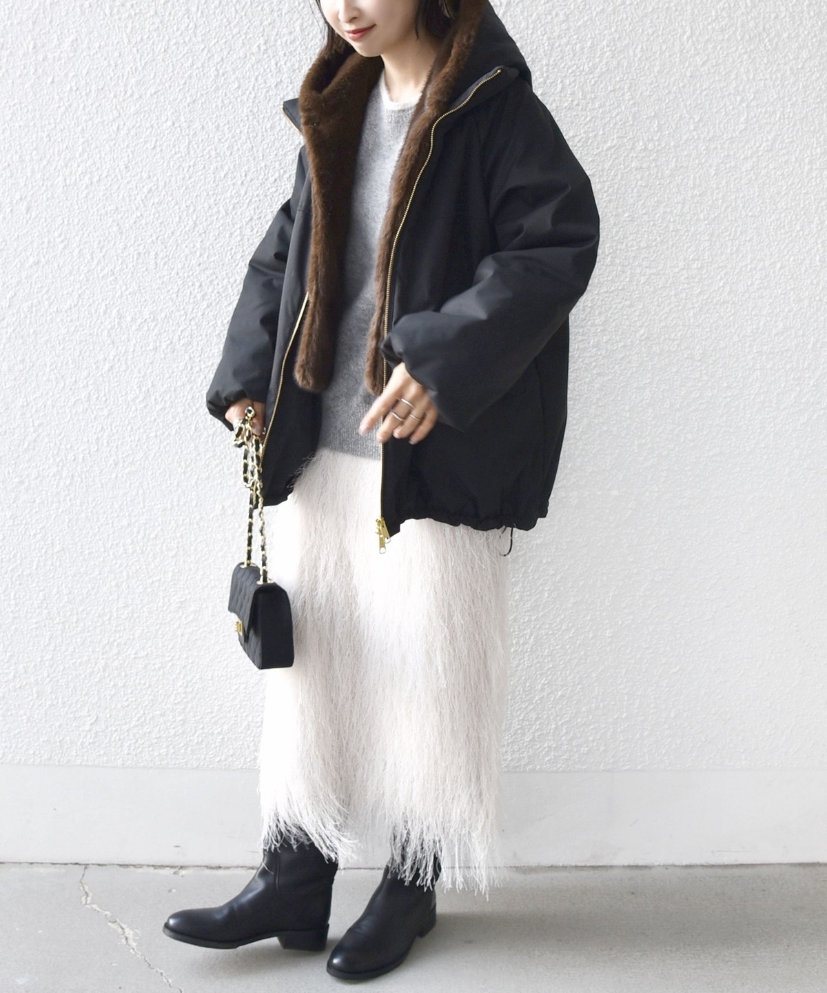 ファーはファスナーで取り外しが可能なので、2WAYの着こなしが可能。