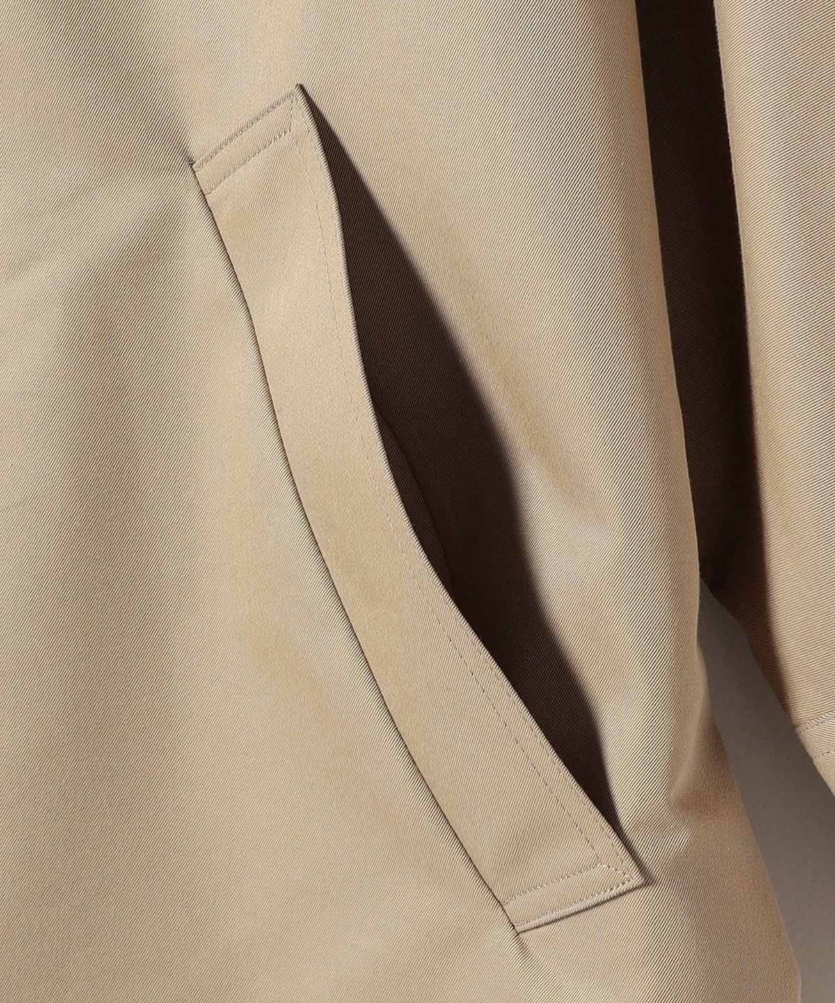 伝統的なトレンチコートに使われていた、どこか懐かしいしっかり綾目の立った高密度のギャバジンを再現しながら進化させたものを使用しています。