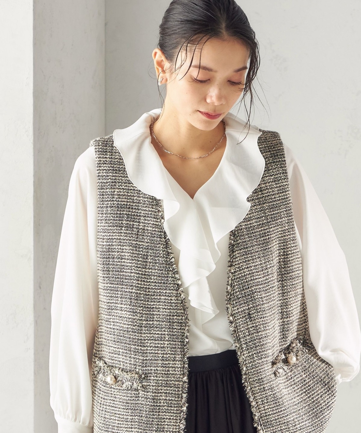 トライスピン 杢 ツイード カラーレス ジレ(セレモニー対応可)