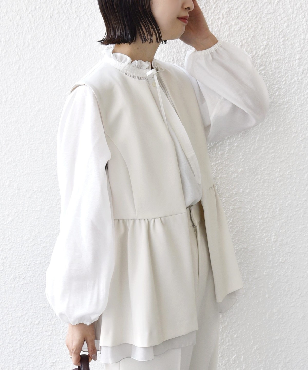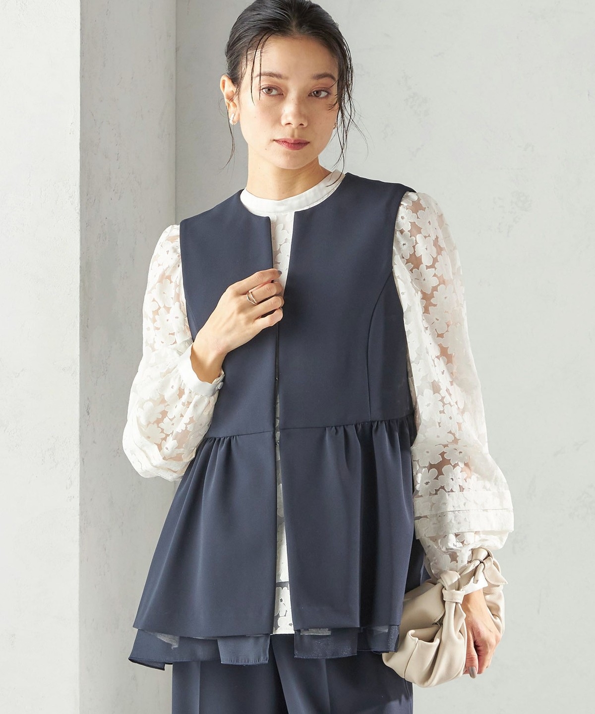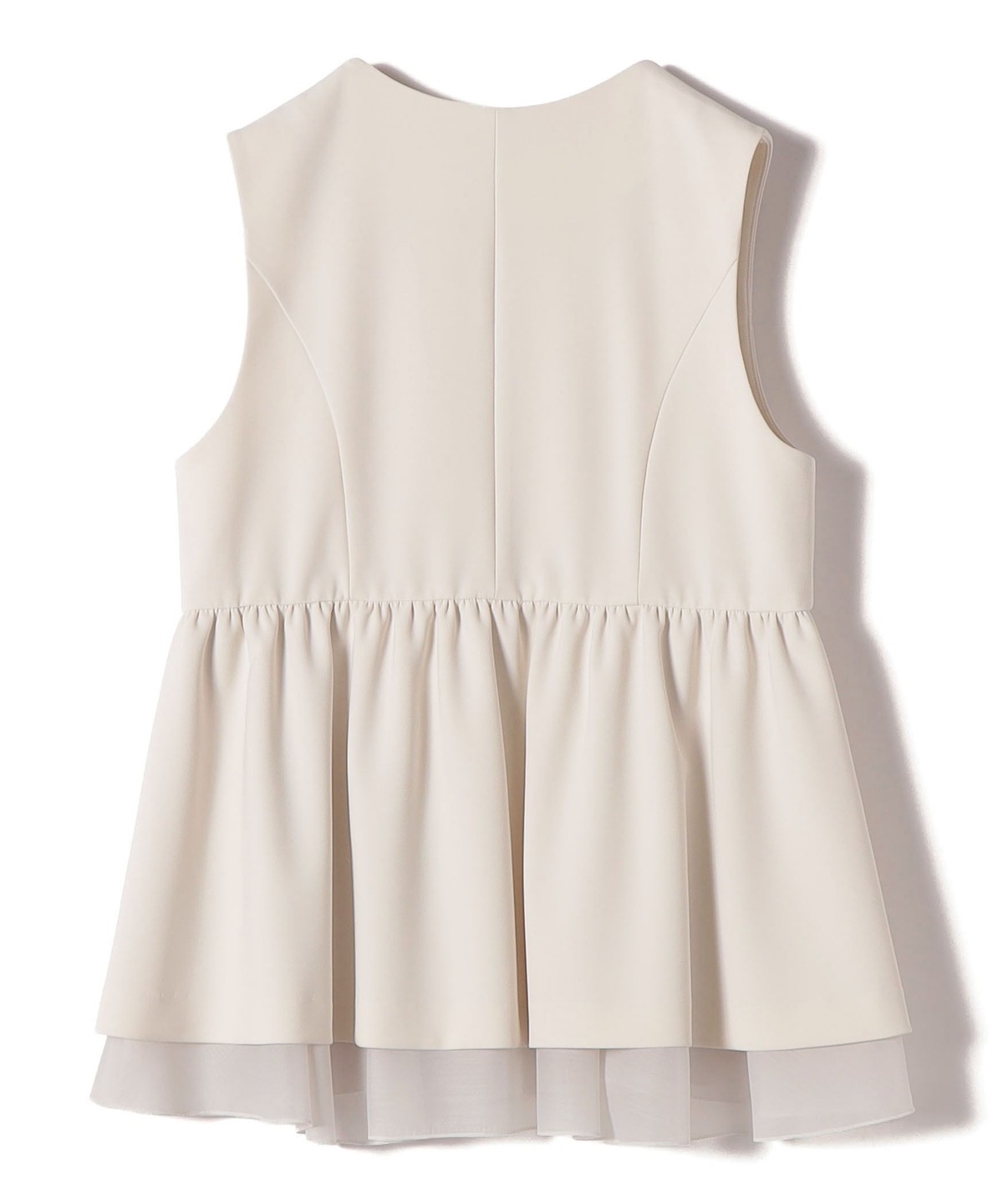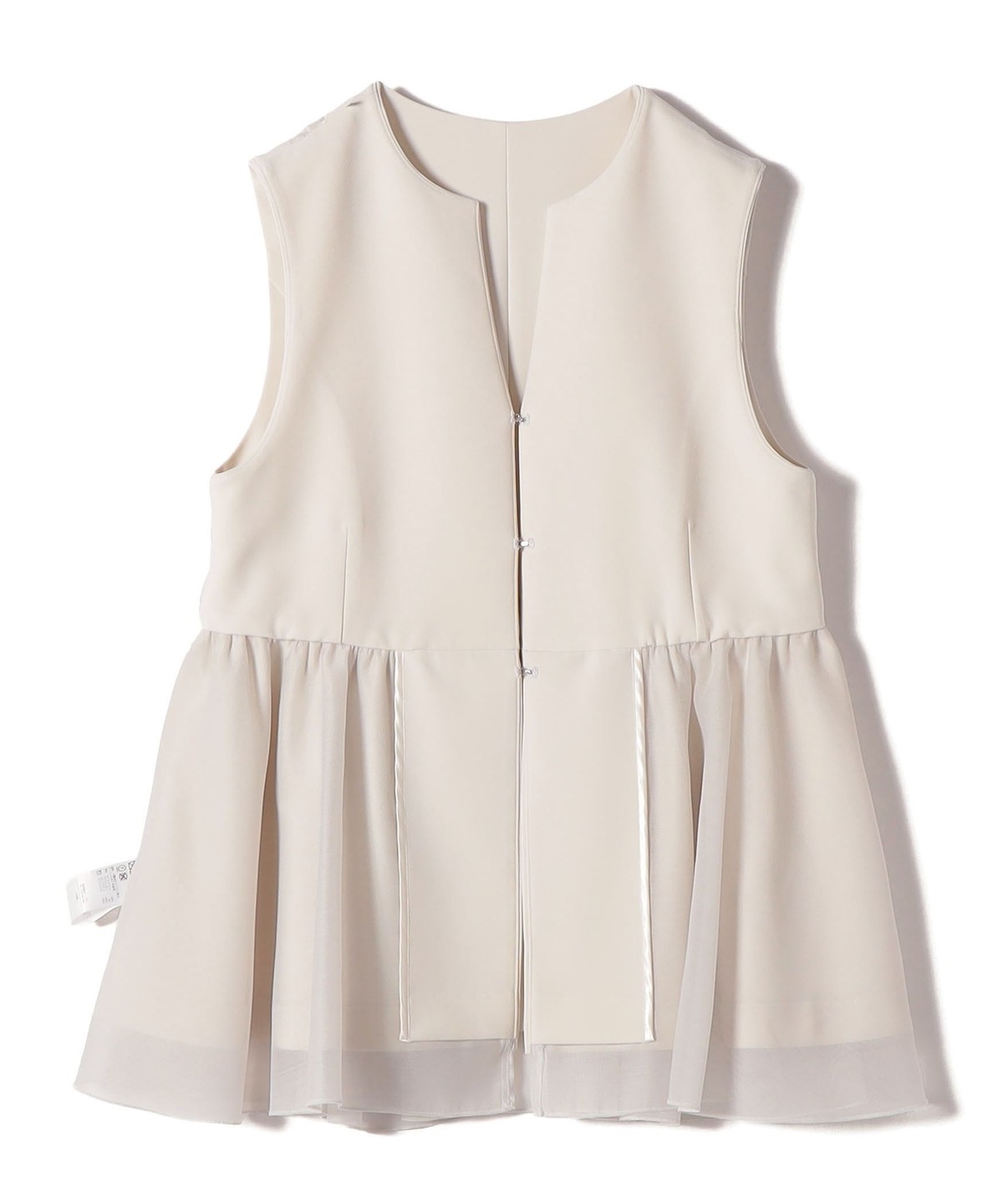 裾から重ねたオーガンジーが覗く、一枚で映えるデザインジレ。