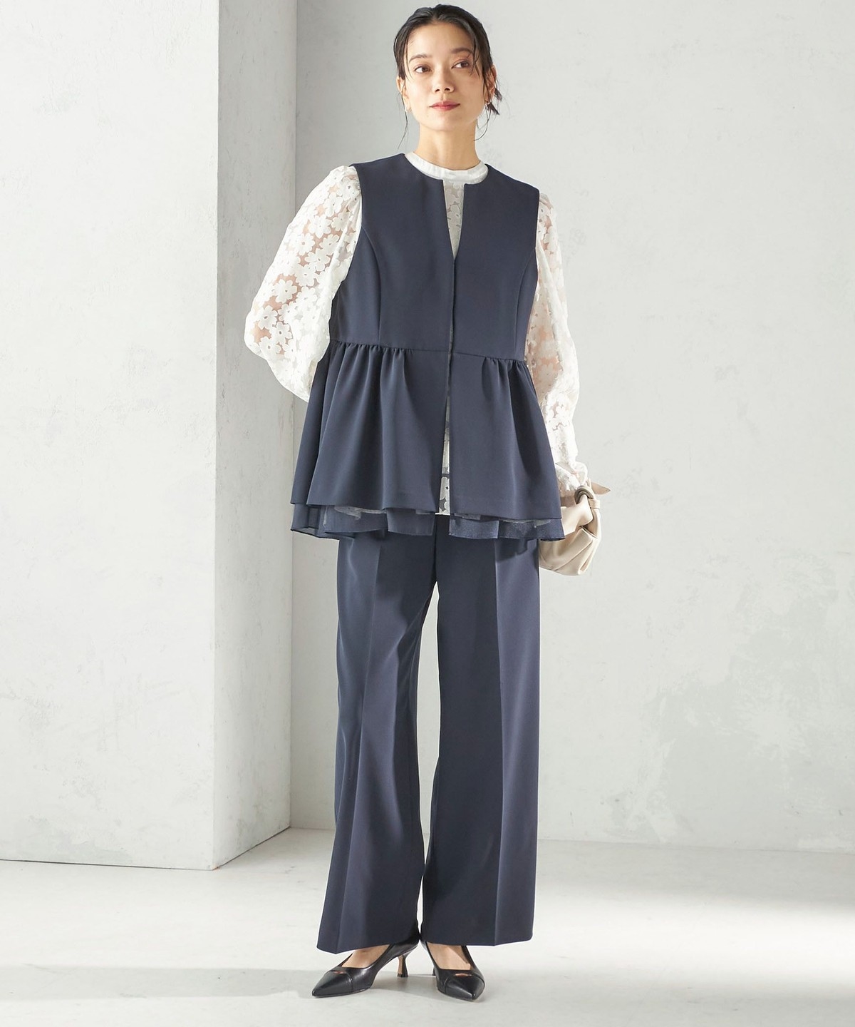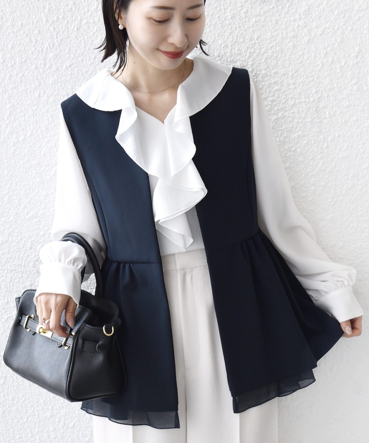 ダブル クロス レイヤード ペプラム ジレ(セレモニー対応可)