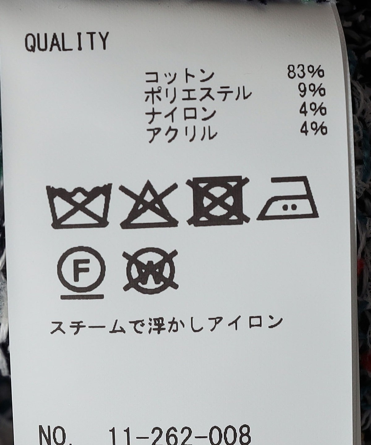 素材:コットン83%, ポリエステル9%, ナイロン4%, アクリル4%