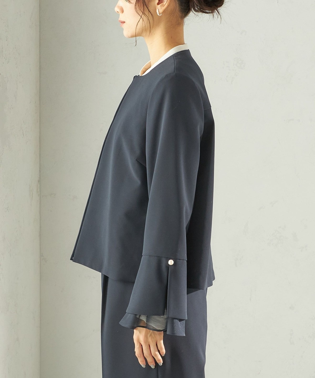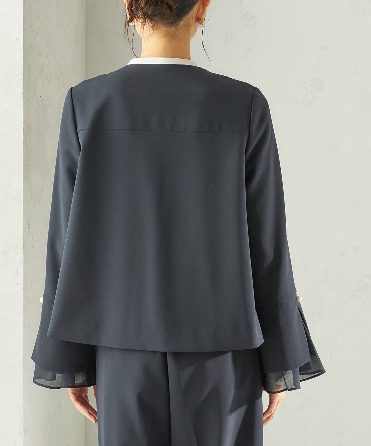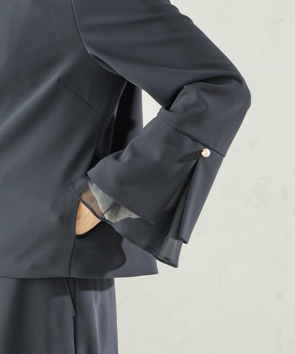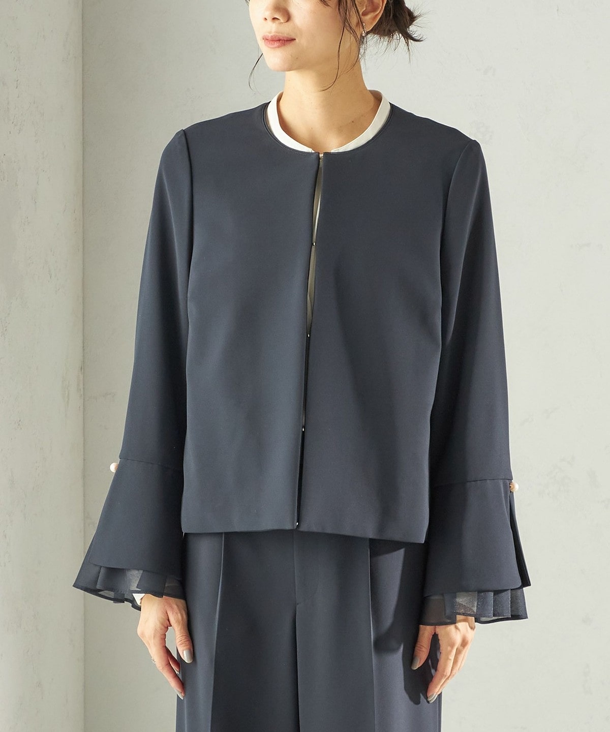 袖のオーガンジーが華やかさをプラスするデザインジャケット
