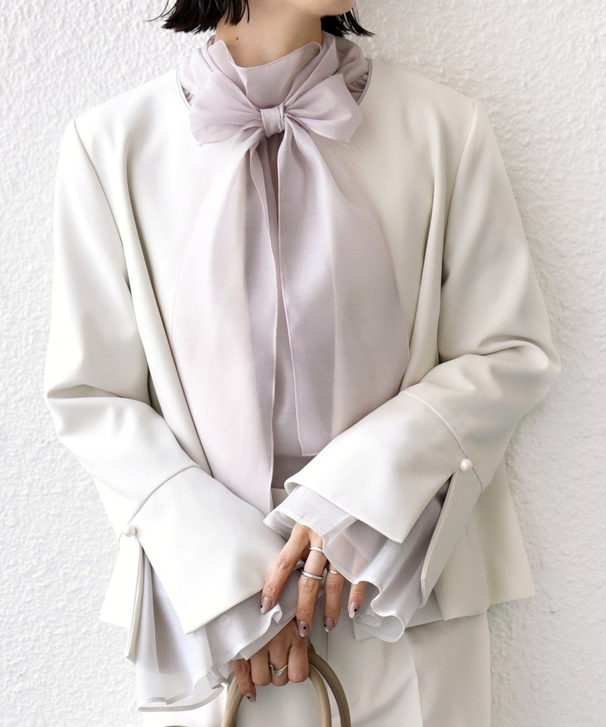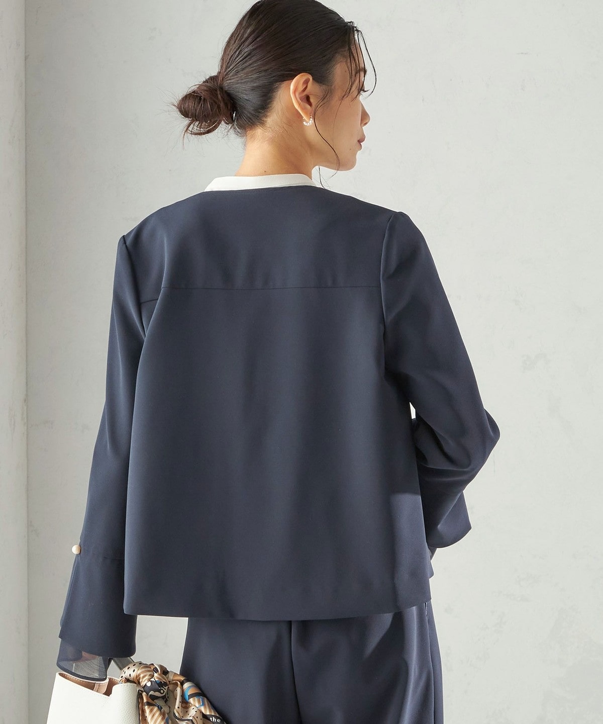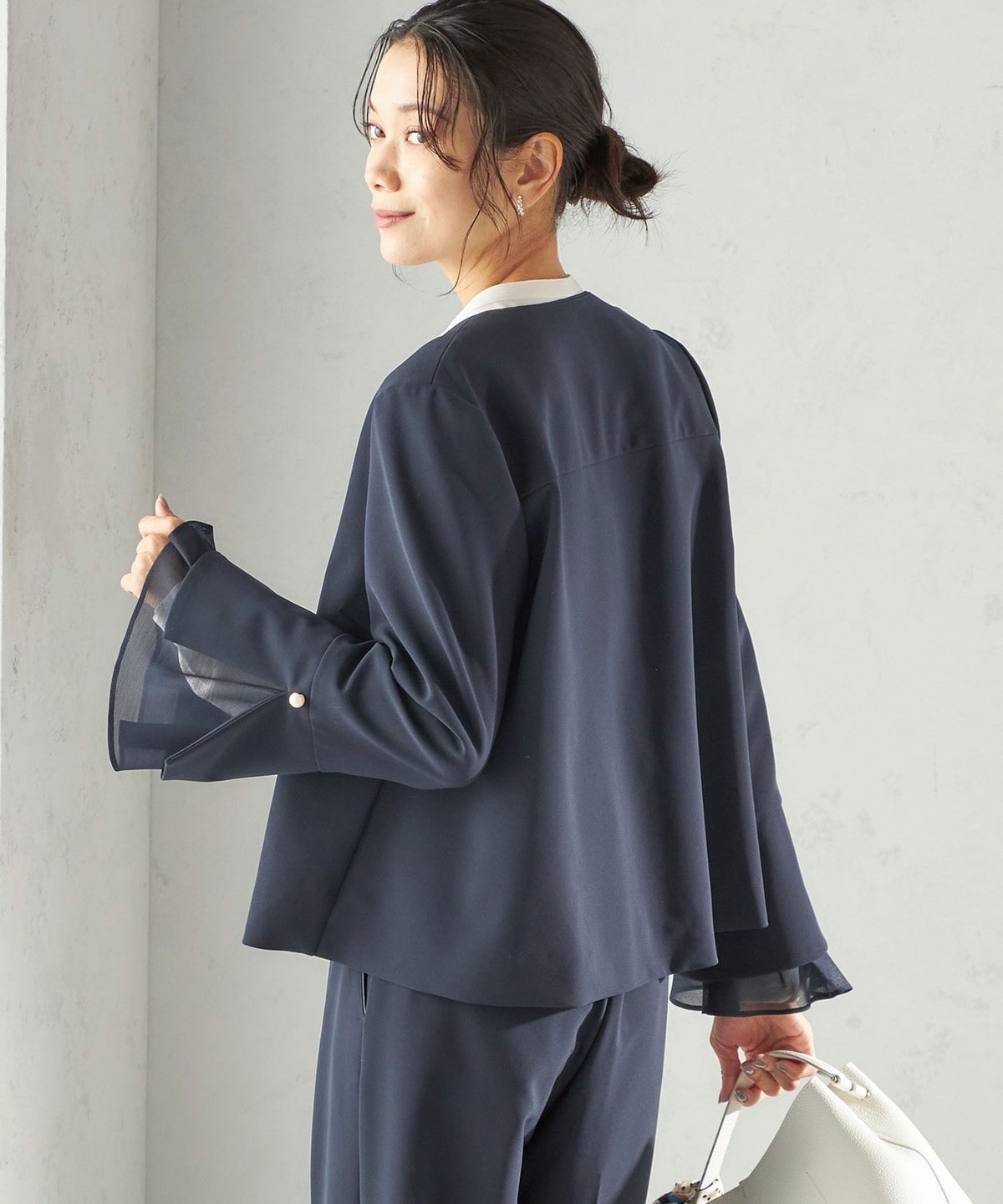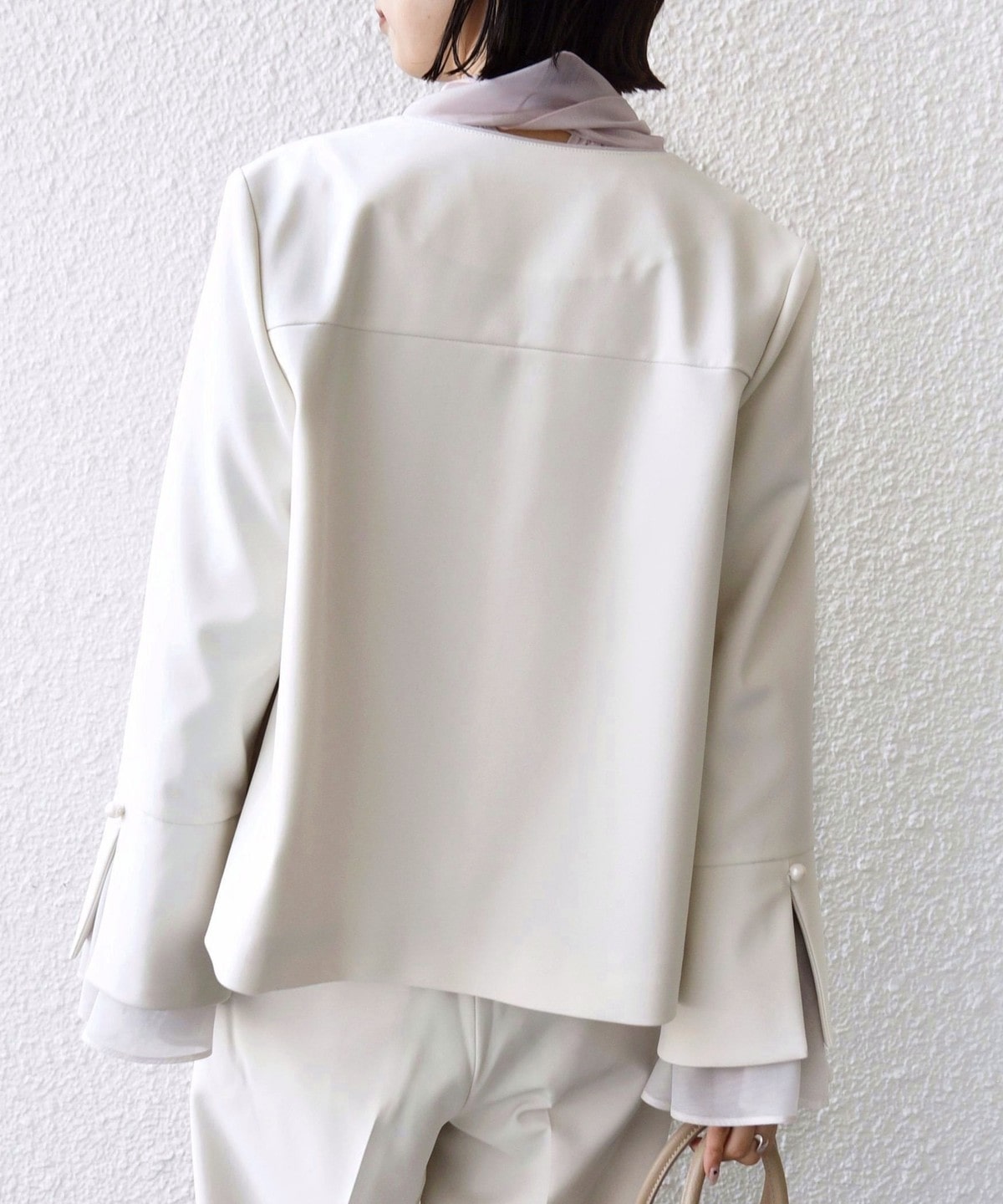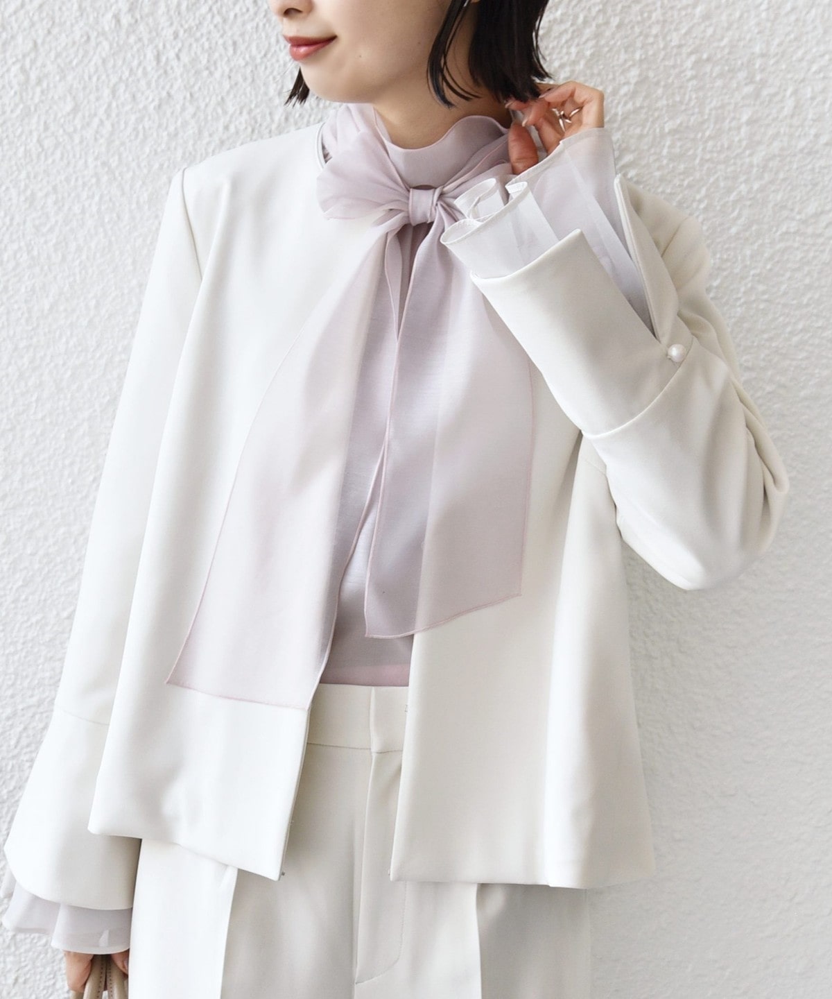 袖のオーガンジーが華やかさをプラスするデザインジャケット