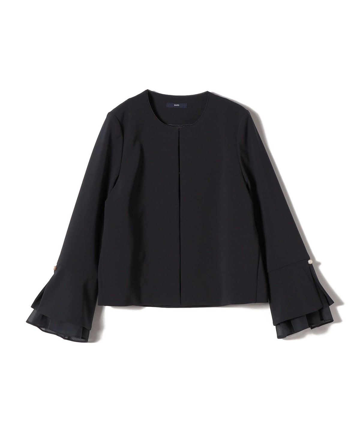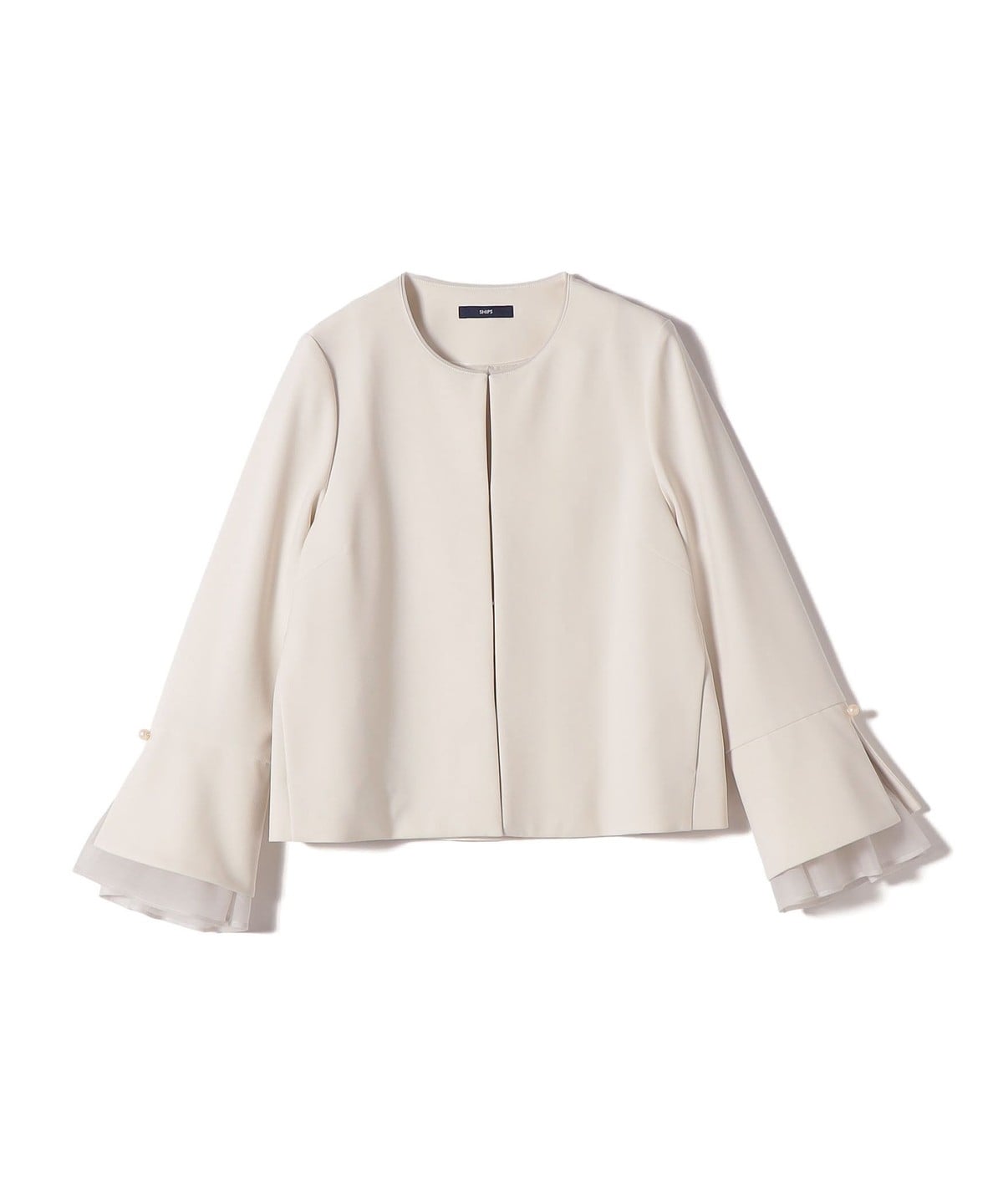 袖にオーガンジーを重ねたデザインジャケット。