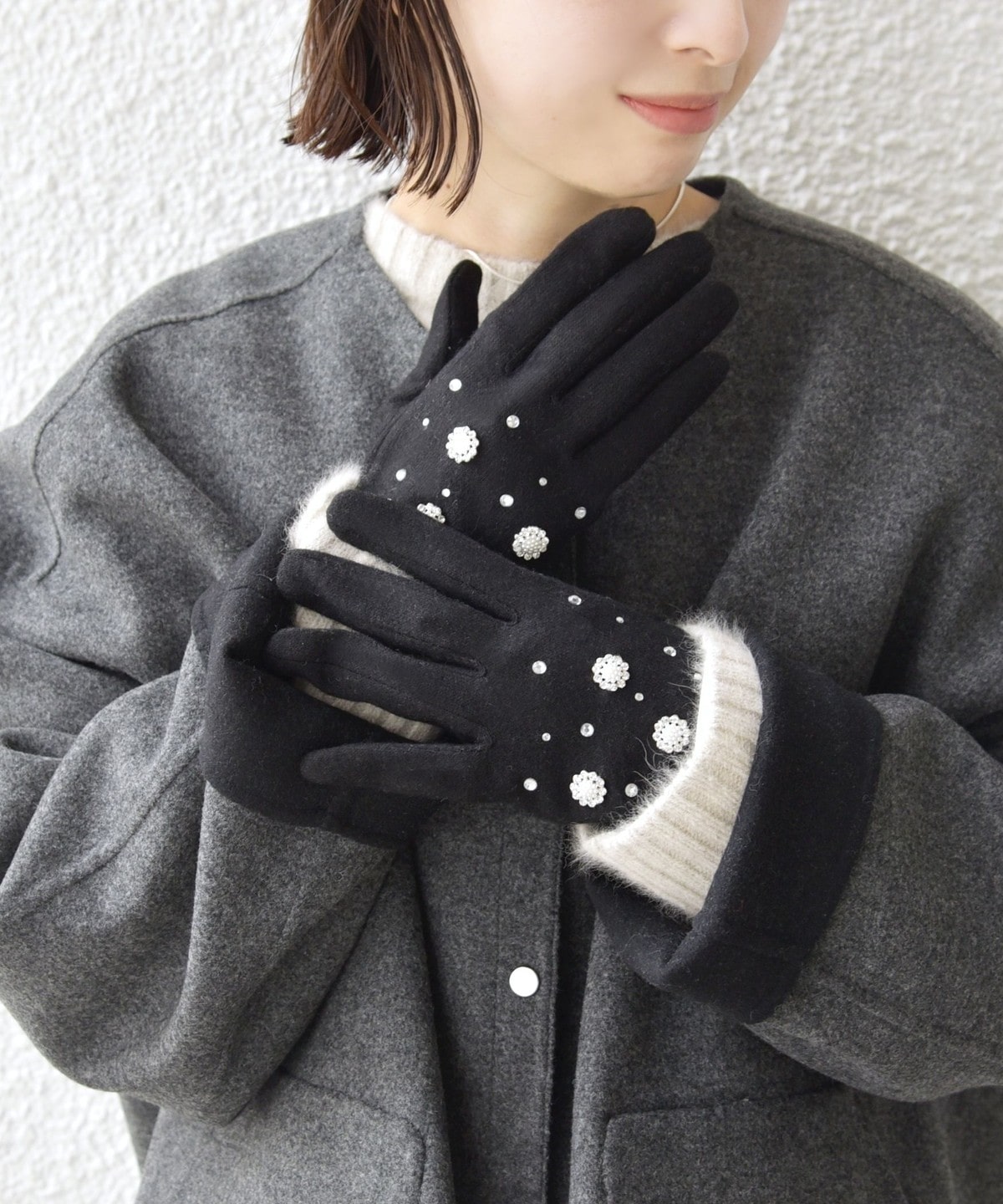 1. ビジュー グローブ グレー