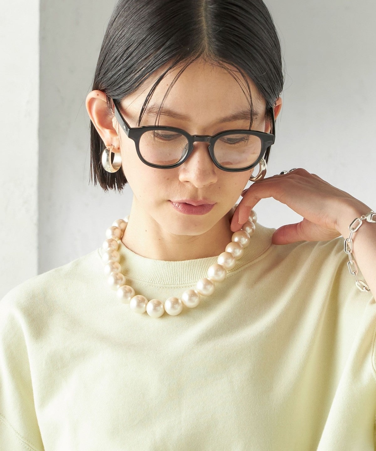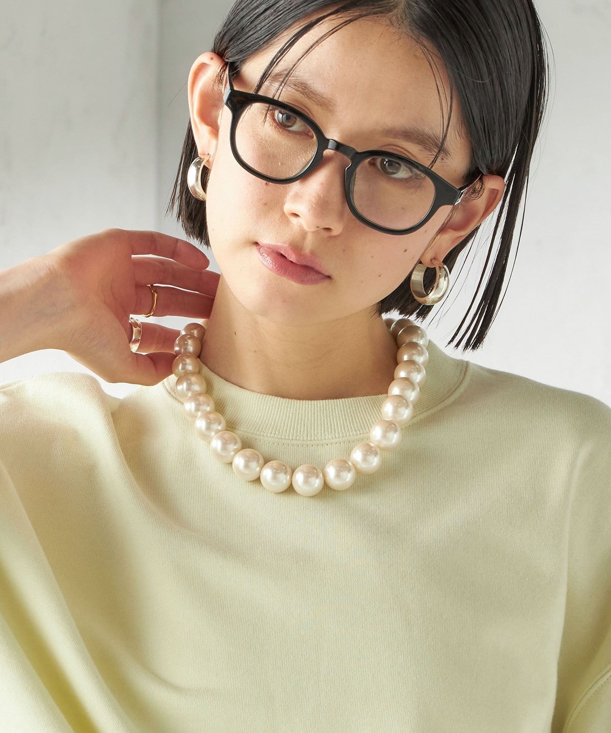 18mm玉のパールモチーフを使用した、大ぶりなショートネックレスです。