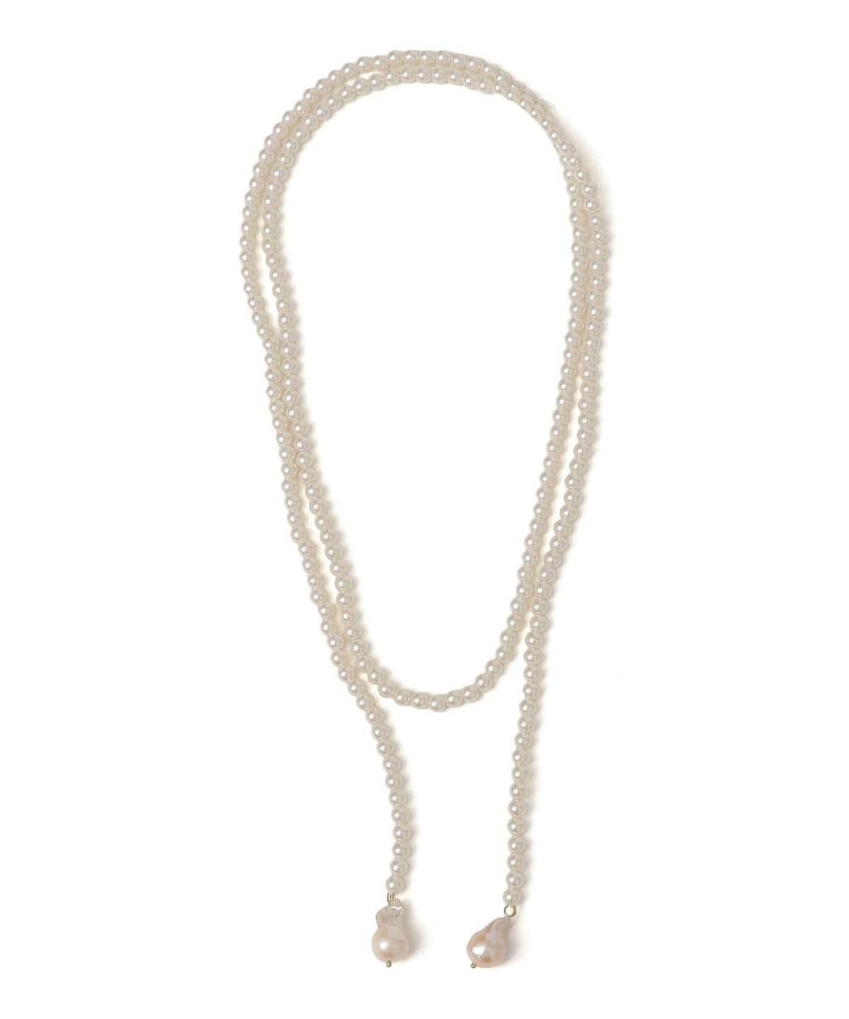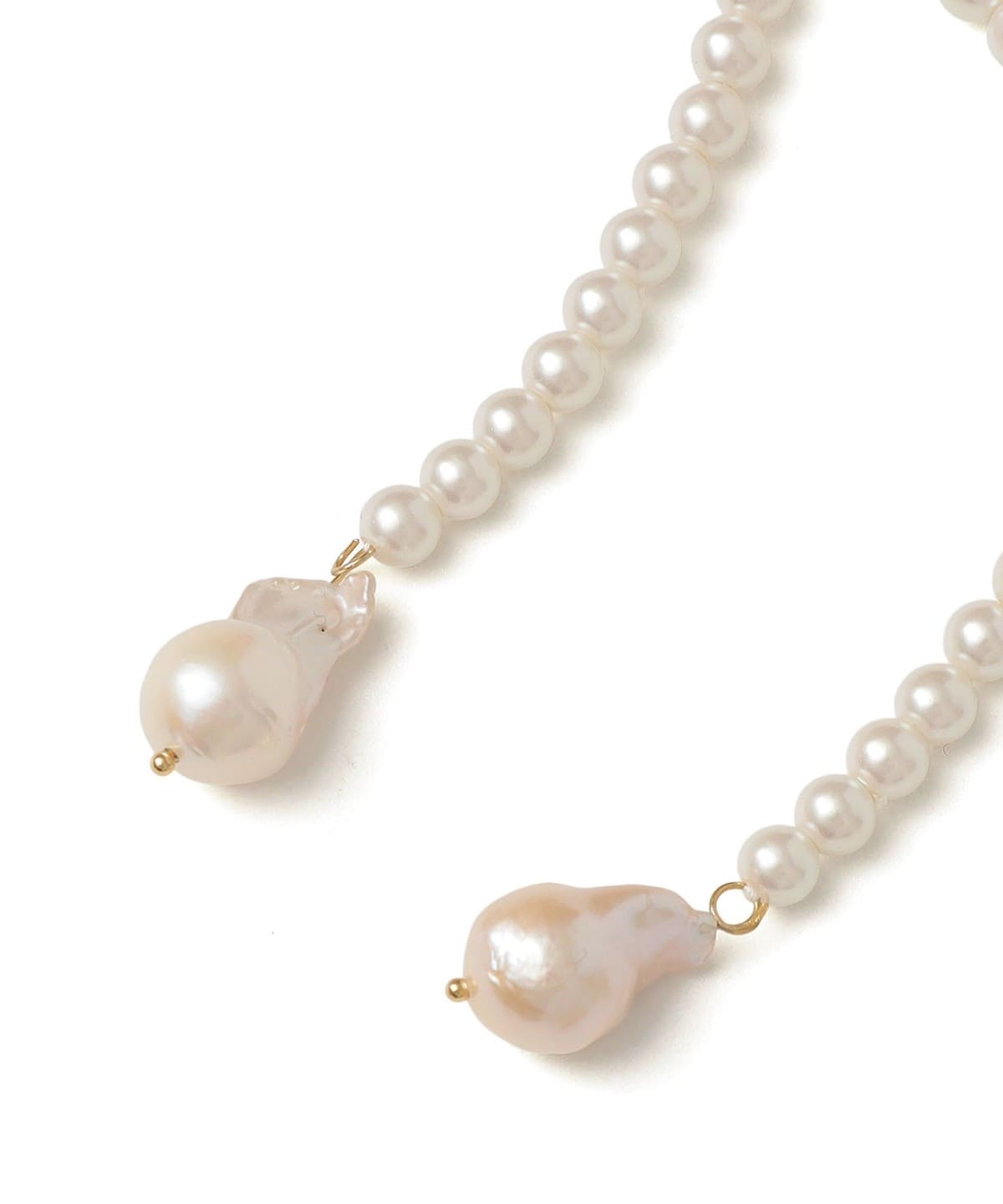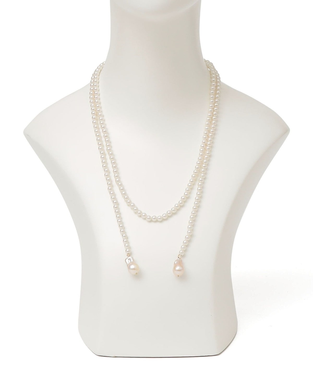 プラスチックパールと淡水バロックパールを使用した、シンプルながら存在感のあるラリエットネックレスです。