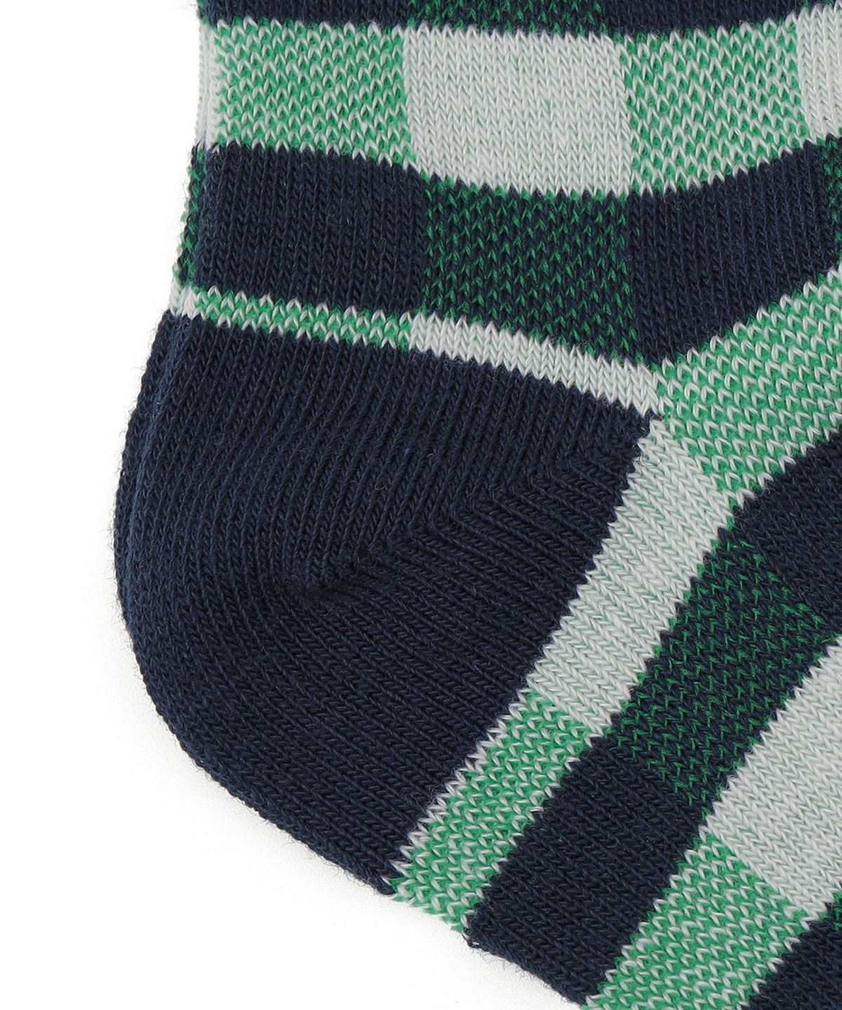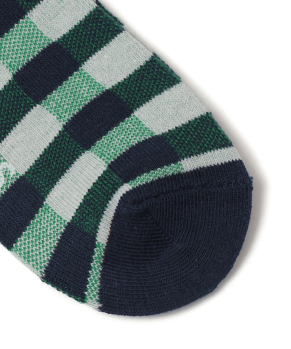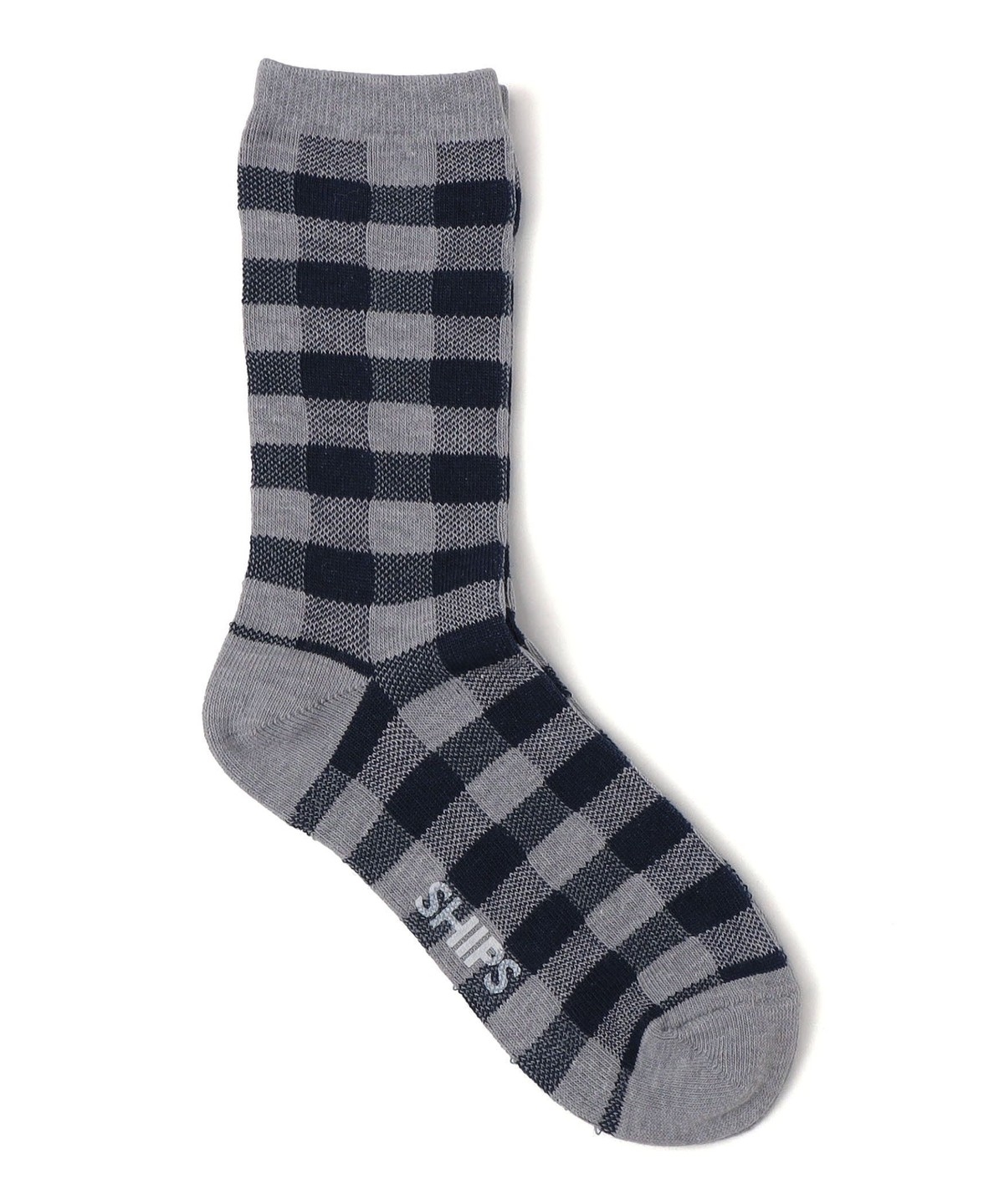 存在感のあるチェックがポイントのソックス【素材特性/デザイン】編み方に変化をつけて、チェック柄の表現にこだわったソックスです。