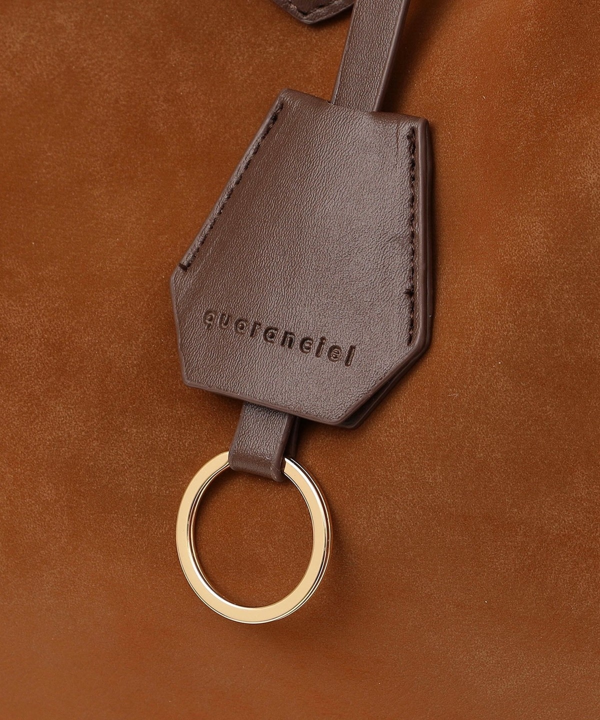 持ち手に付くクロシェットは、quarancielのロゴ刻印入りでさりげないアクセントに。