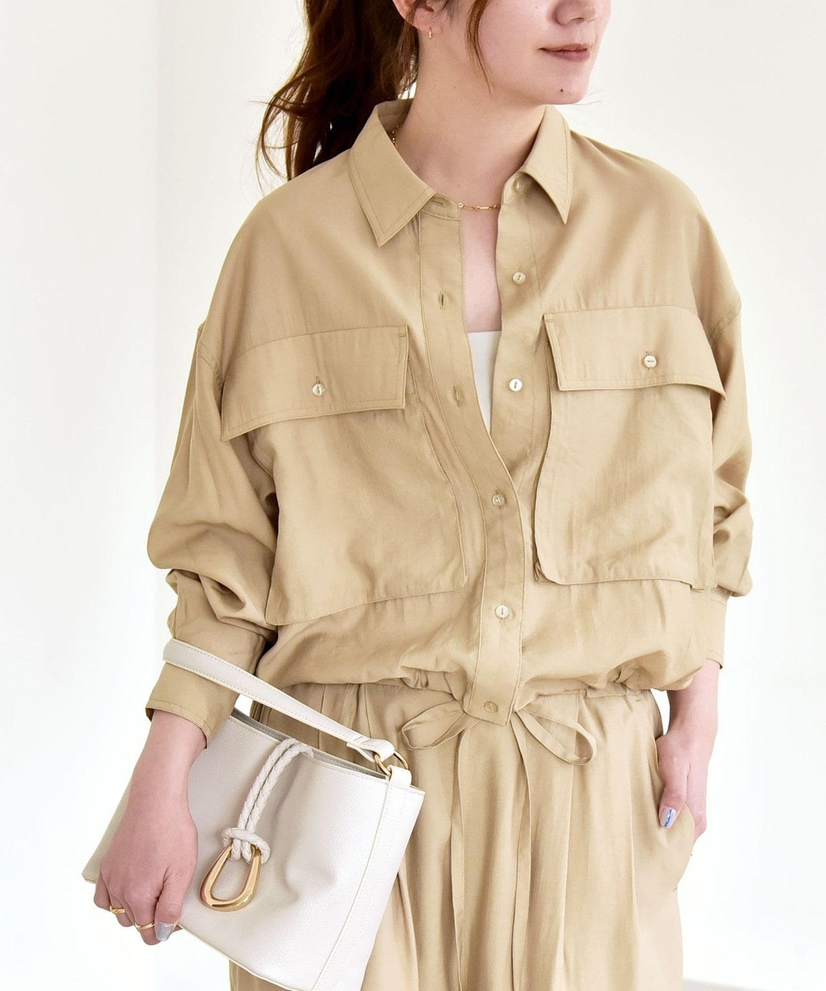 quaranciel:〈洗濯機可能〉ドロスト コンパクト ポケット レギュラー シャツ