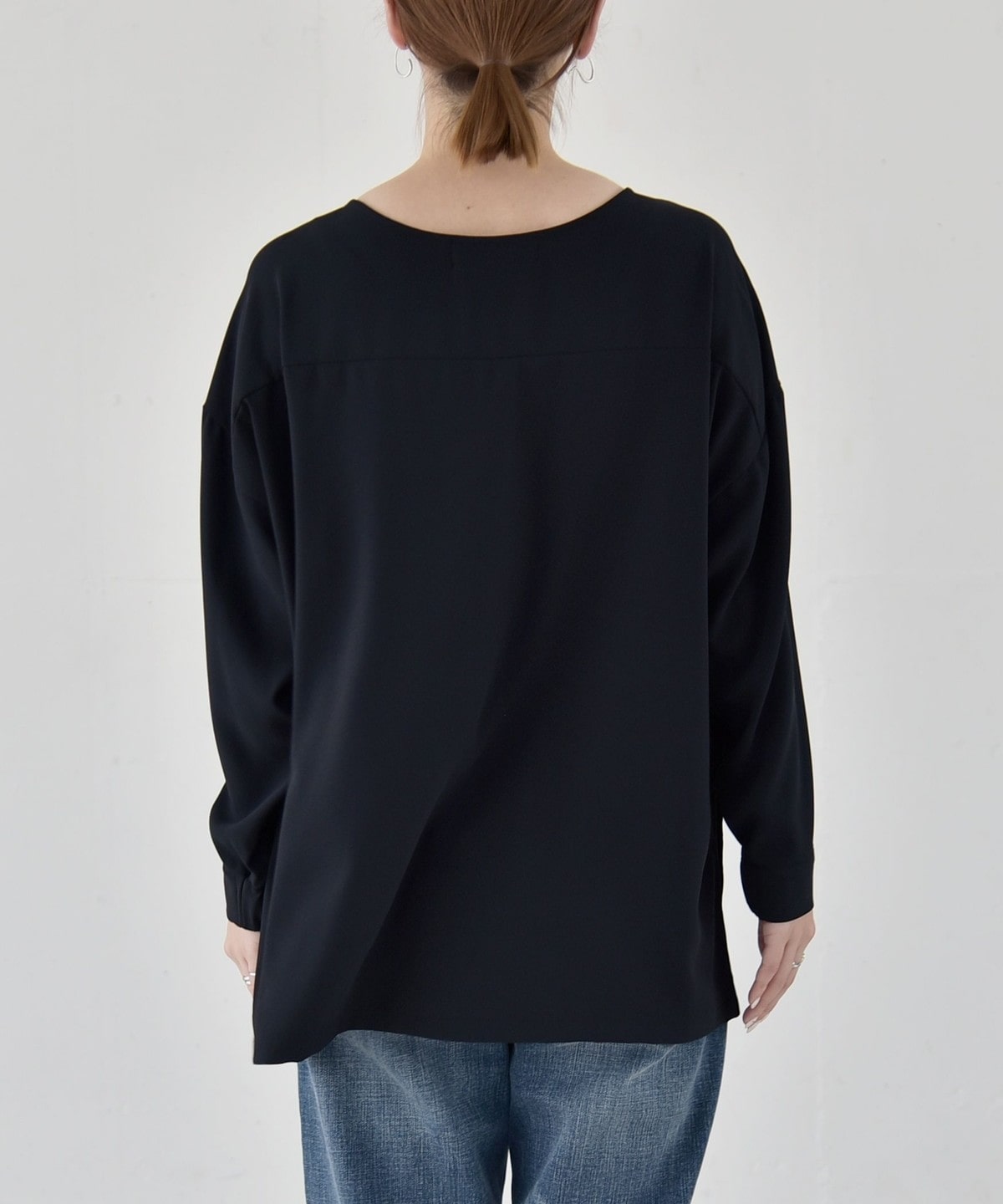 首元はややゆるく開いているため、アクセサリー合わせがおすすめ。